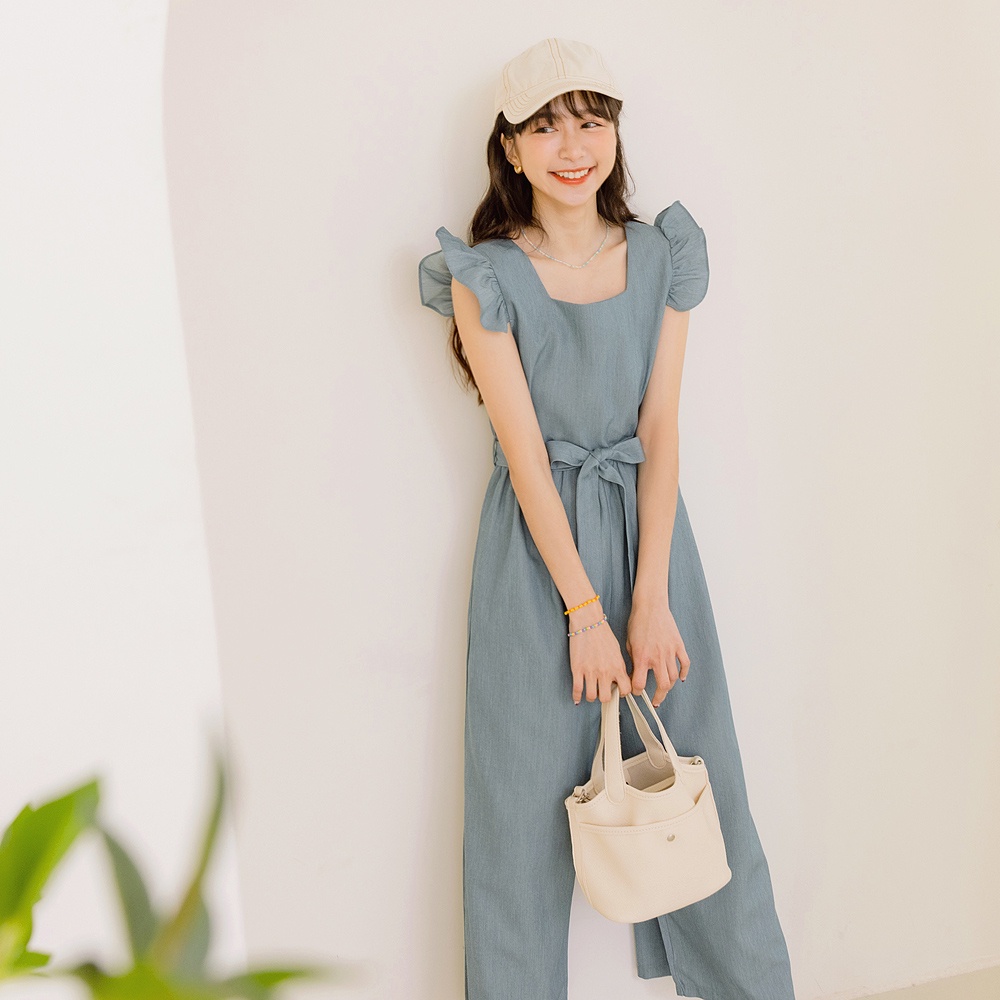 OB嚴選 小V臉.方領荷葉袖連身寬褲(附綁帶) 《BA7067》大尺碼/現貨/女裝丹寧藍,S|丹寧藍,M|丹寧藍,L|丹寧藍,XL|黑,S|黑,L|黑,2L|黑,3L|丹寧藍,2L|丹寧藍,3L|黑,M|黑,XLJumpsuitsOB嚴選官方旗艦店