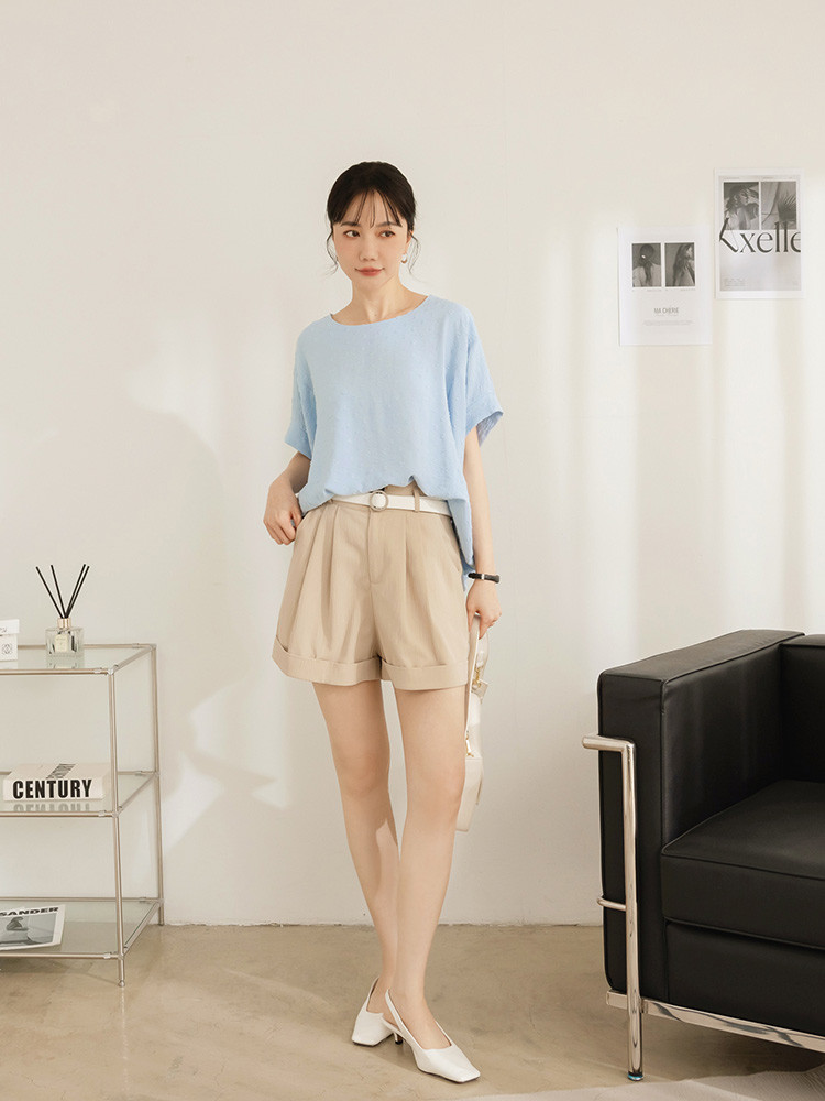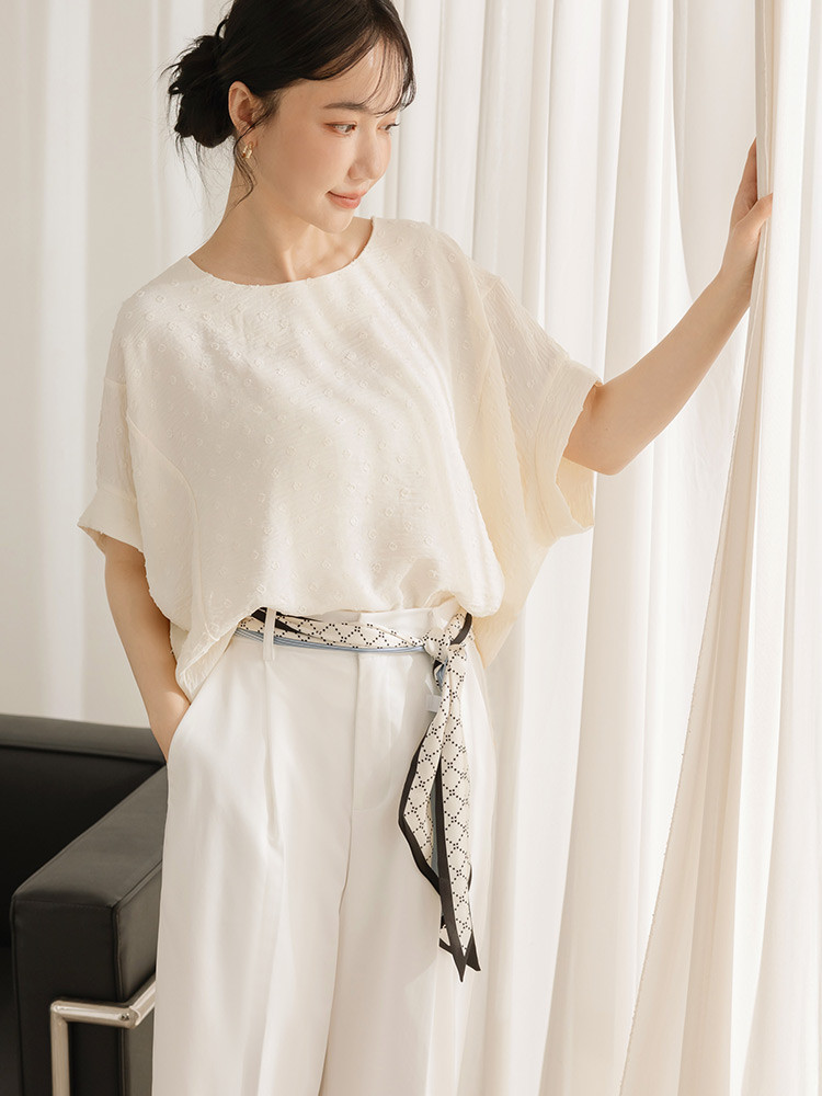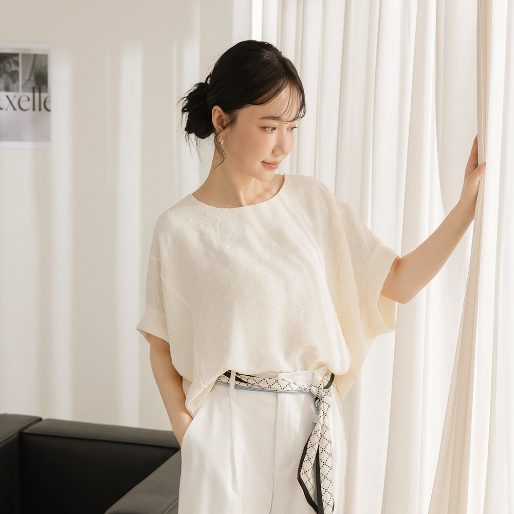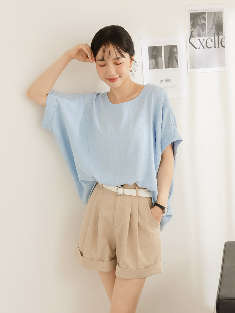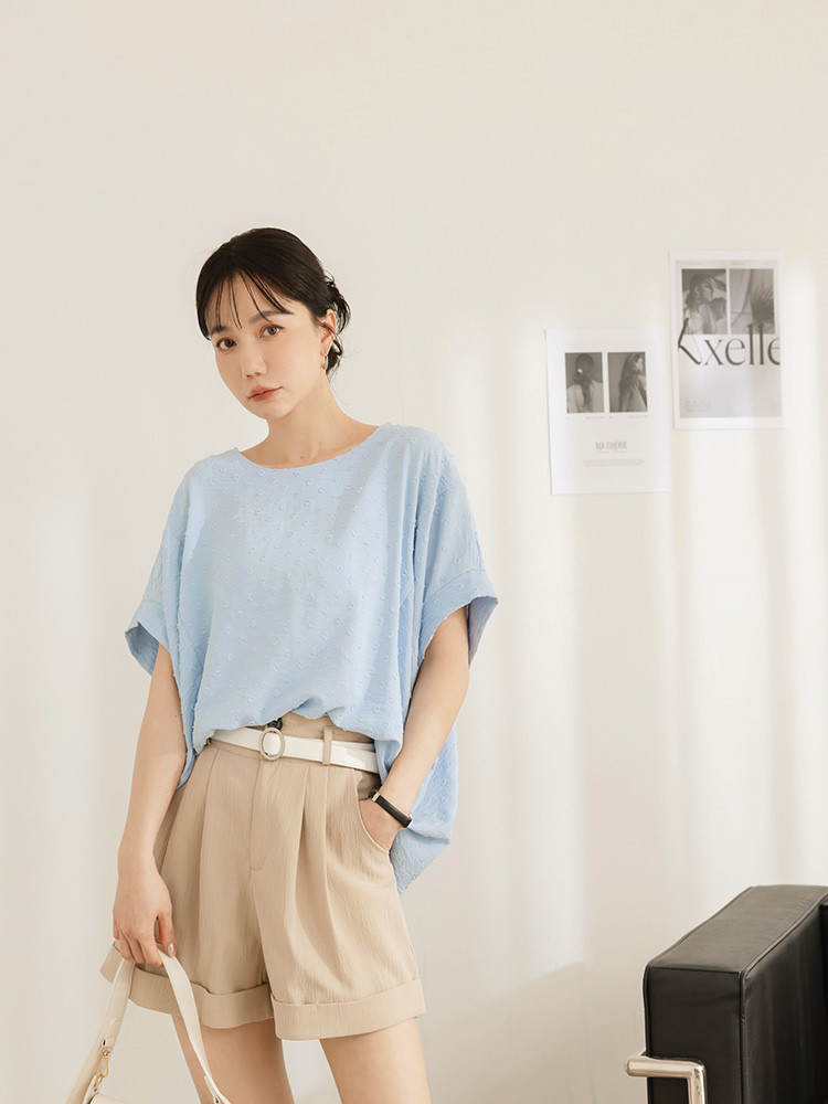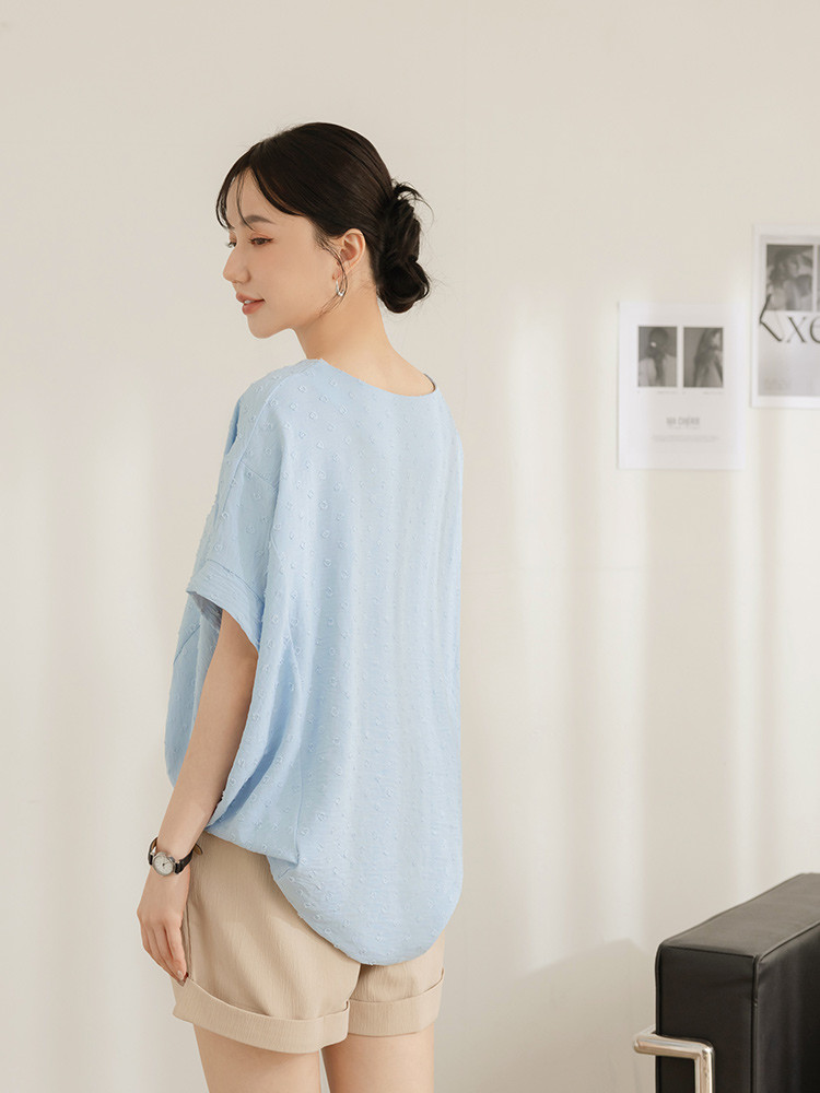 OB嚴選 細緻立體燒花前短後長寬版上衣 《AB20487》杏,F|杏,XL|杏,2L|杏,3L|淺水藍,F|淺水藍,XL|淺水藍,2L|淺水藍,3LT-shirtsOB嚴選官方旗艦店