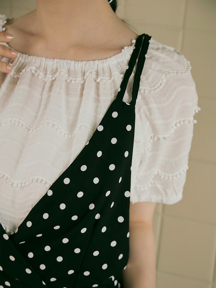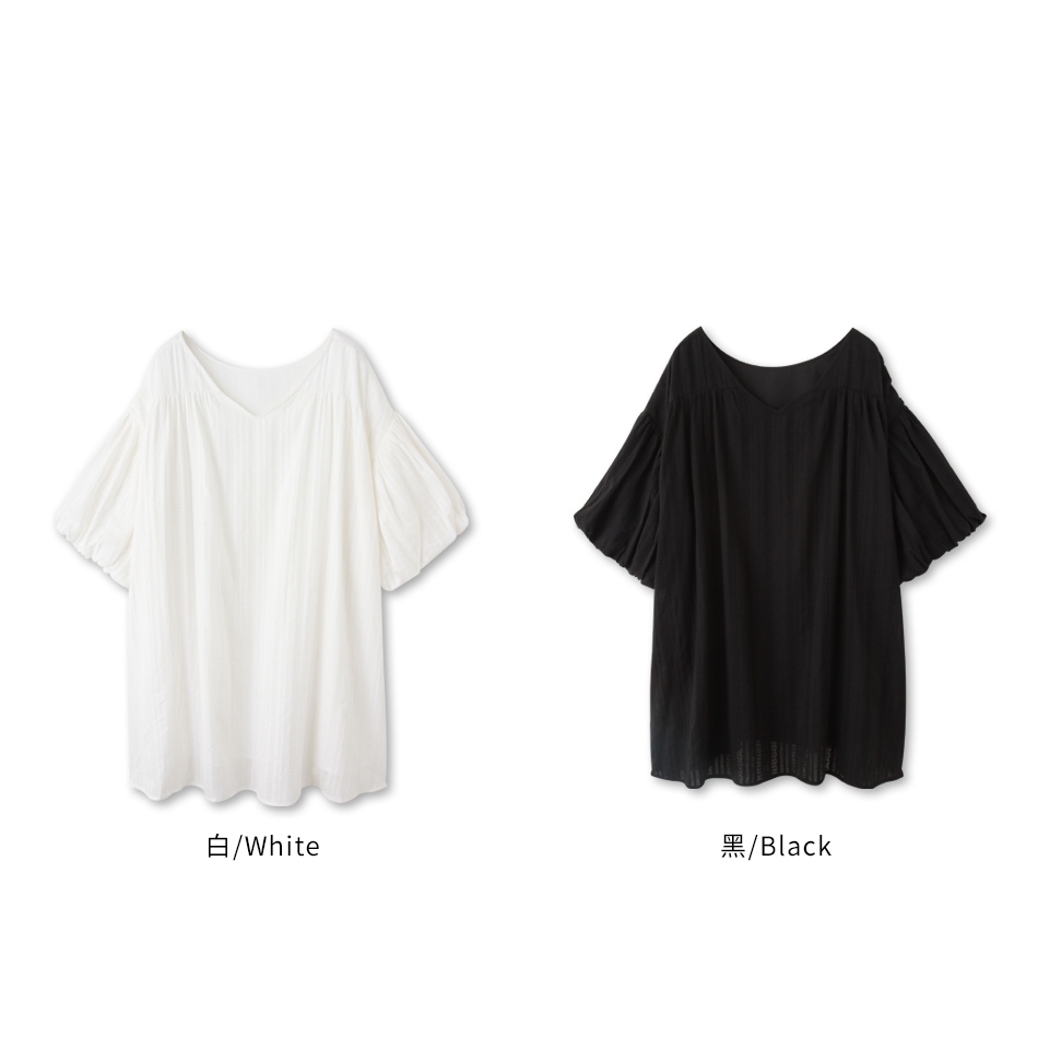 OB嚴選 緹花V領落肩寬鬆短澎袖短洋裝 《DA9726》現貨/女裝/時髦白,2L|黑,F|黑,2L|白,FOB嚴選官方旗艦店