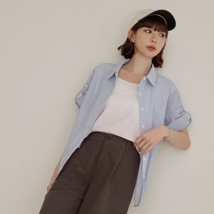 OB嚴選 棉感假兩件直條紋襯衫短袖上衣 《AB7570》大尺碼/女裝/現貨深藍白條,3L|深藍白條,2L|粉白條,S|粉白條,L|粉白條,2L|深藍白條,L|粉白條,3L|粉白條,XL|深藍白條,XL|深藍白條,M|深藍白條,S|粉白條,MShirts & BlousesOB嚴選官方旗艦店
