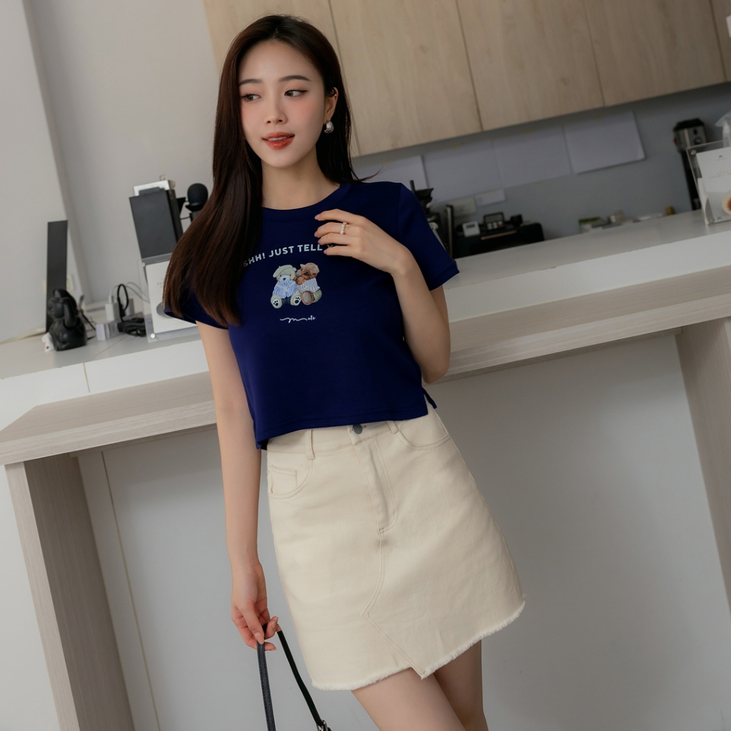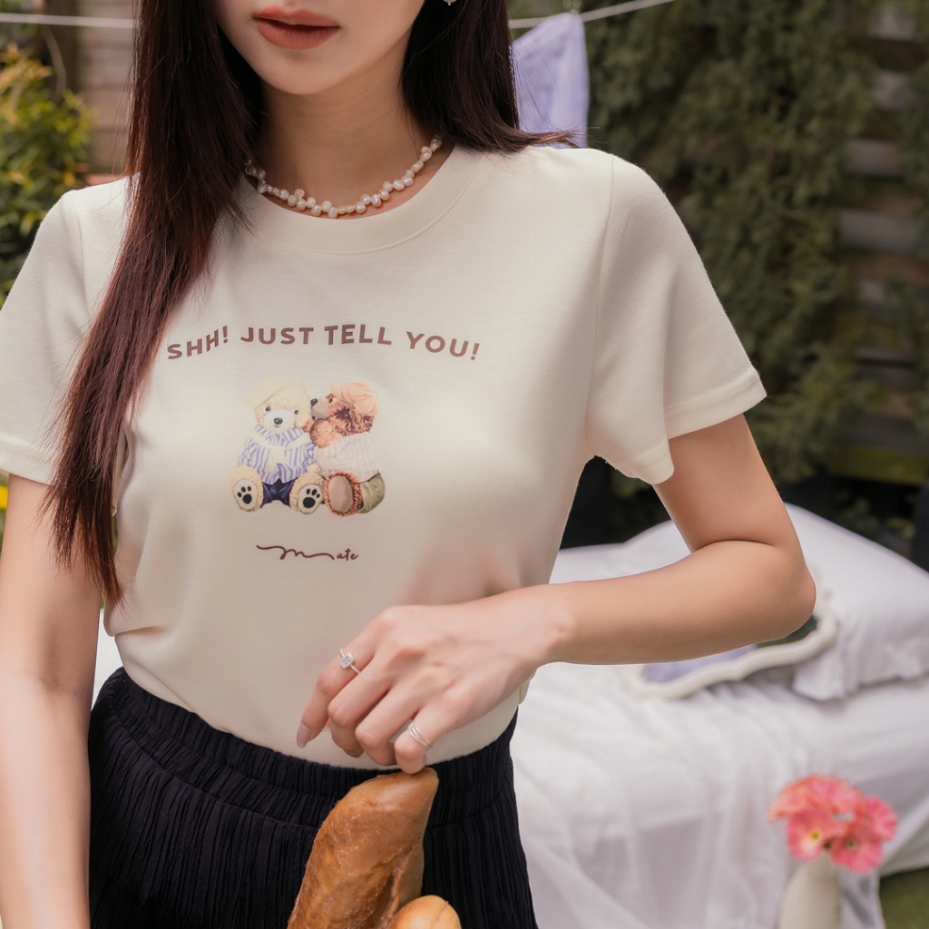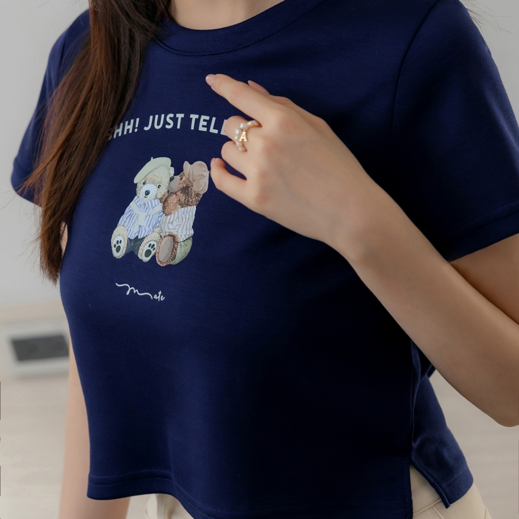 首爾妹 舒芙蕾系列-熊熊好朋友悄悄話上衣 ( 2503131 ) 現貨 女裝杏,S|杏,M|杏,L|深藍,S|深藍,M|深藍,LT-shirtsSEOUL MATE 首爾妹