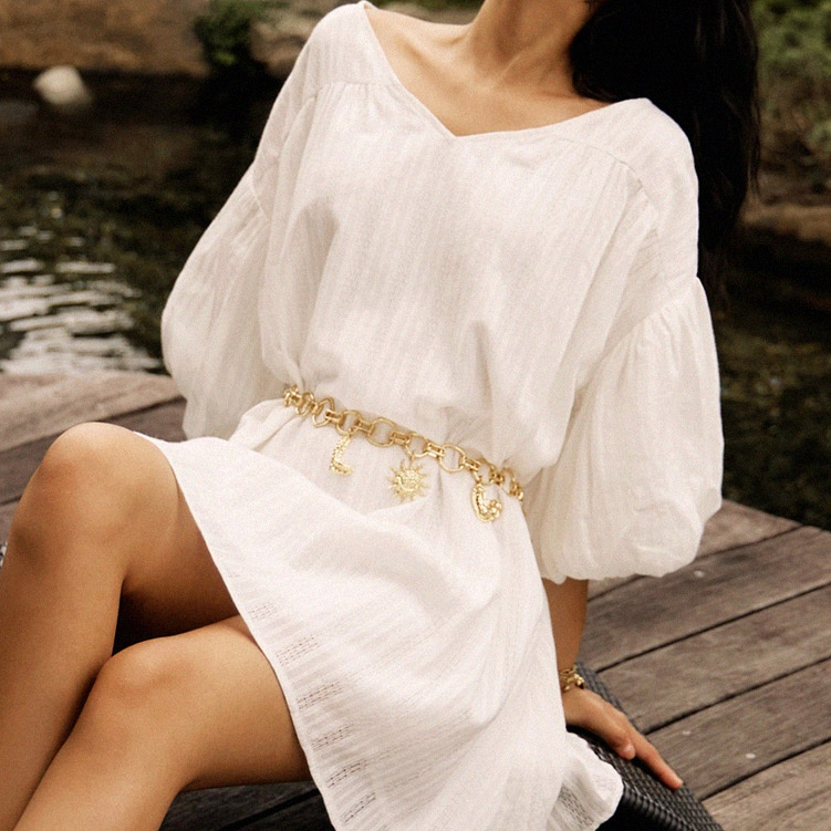 OB嚴選 緹花V領落肩寬鬆短澎袖短洋裝 《DA9726》現貨/女裝/時髦