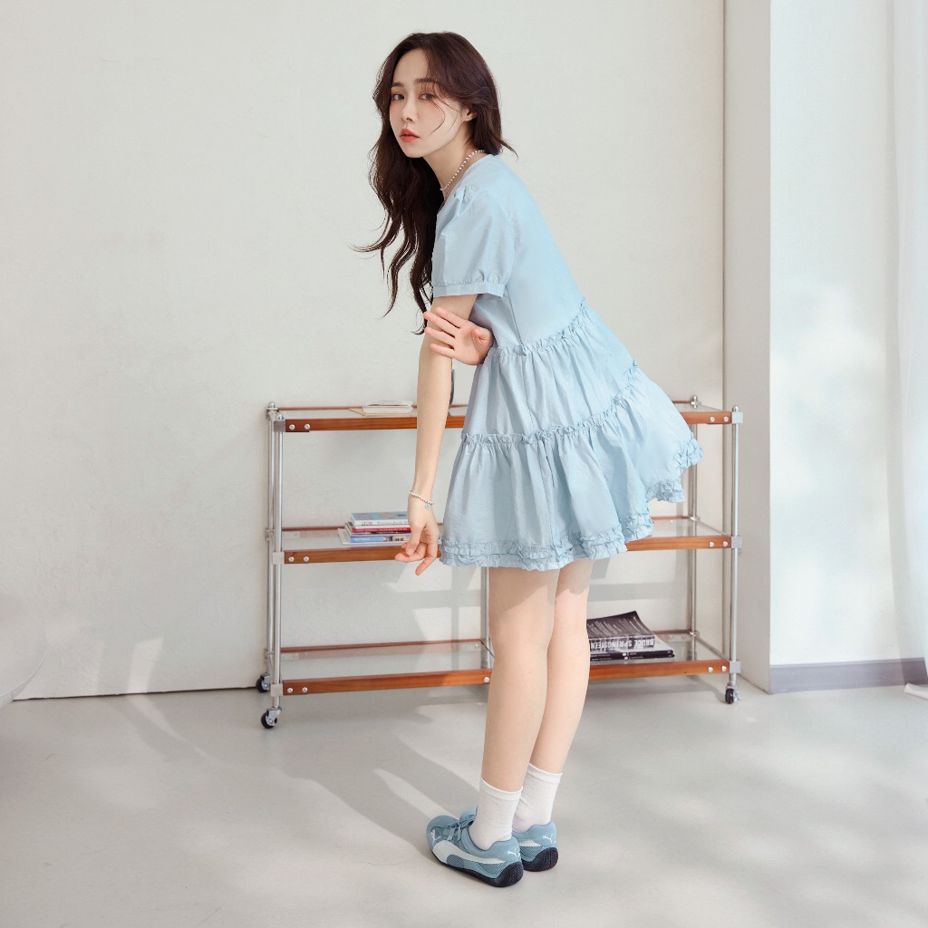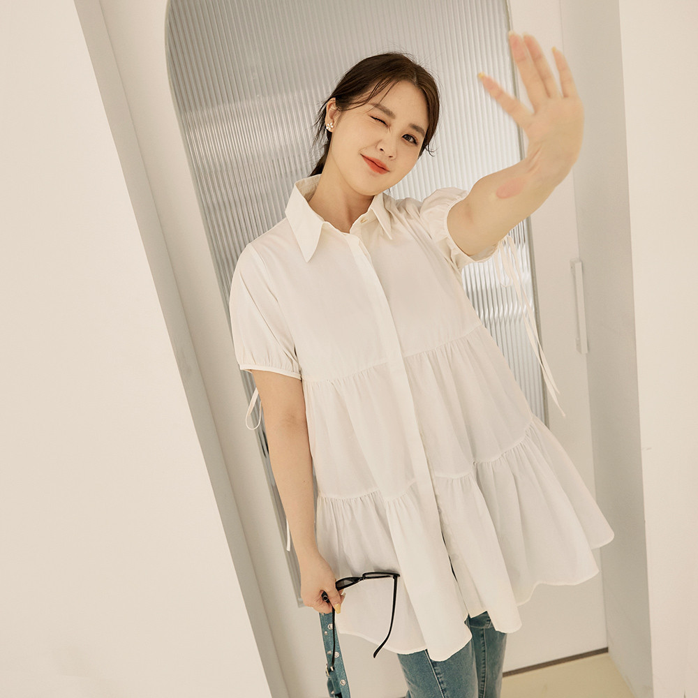 OB嚴選 雲朵自訂款-純棉襯衫領泡泡袖蛋糕短洋裝 《DA10089》大尺碼/現貨/女裝