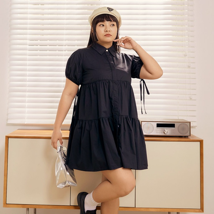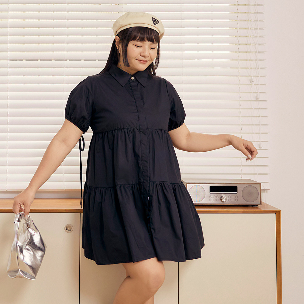 OB嚴選 雲朵自訂款-純棉襯衫領泡泡袖蛋糕短洋裝 《DA10089》大尺碼/現貨/女裝寶藍,XL|寶藍,2L|寶藍,3L|寶藍,4L|黑,XL|黑,2L|黑,3L|黑,4L|白,XL|白,2L|白,3L|白,4LOB嚴選官方旗艦店