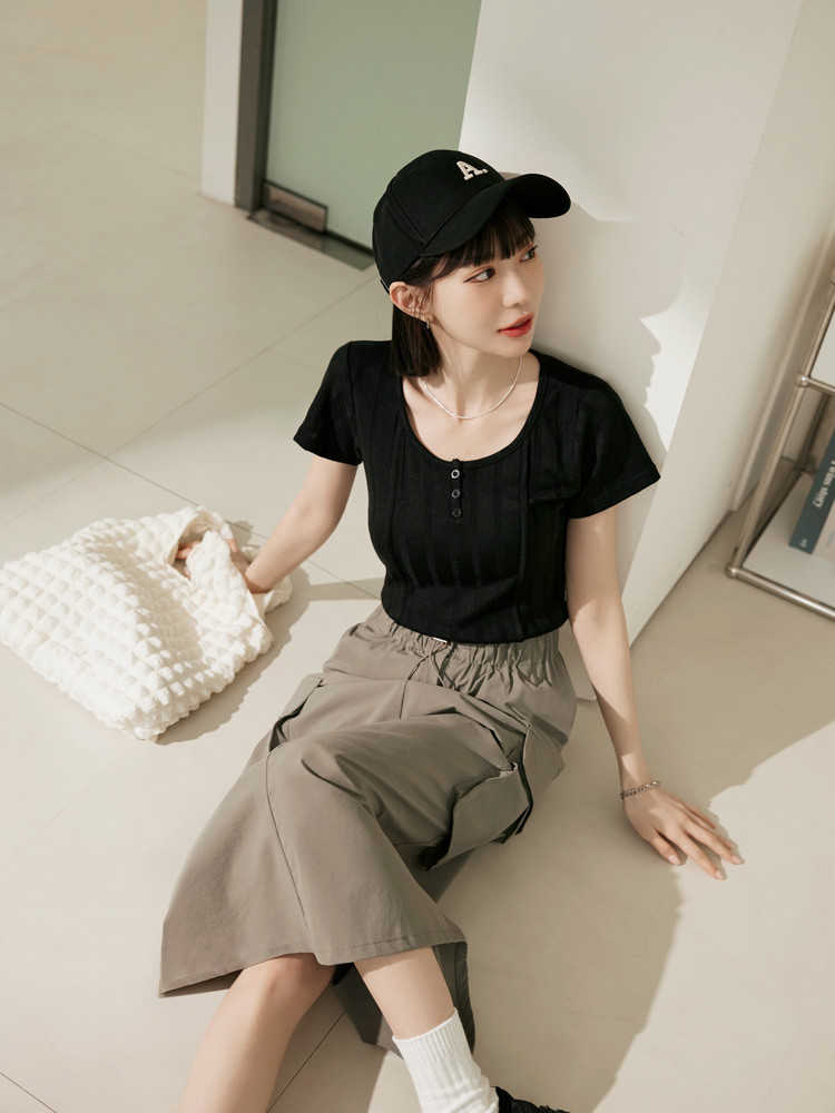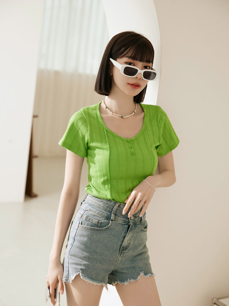 OB嚴選 親膚立體針織排釦合身上衣 《AB19537》大尺碼/女裝/現貨黑,S|黑,M|黑,L|黑,XL|黑,2L|黑,3L|草綠,S|草綠,M|草綠,L|草綠,XL|草綠,2L|草綠,3LT-shirtsOB嚴選官方旗艦店