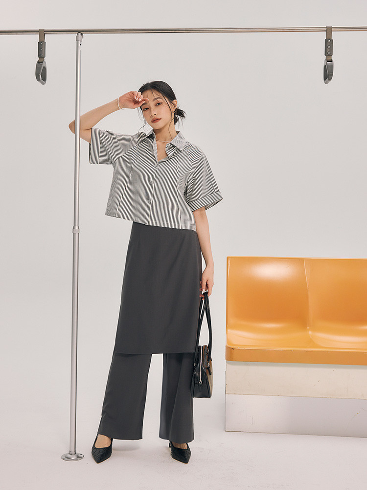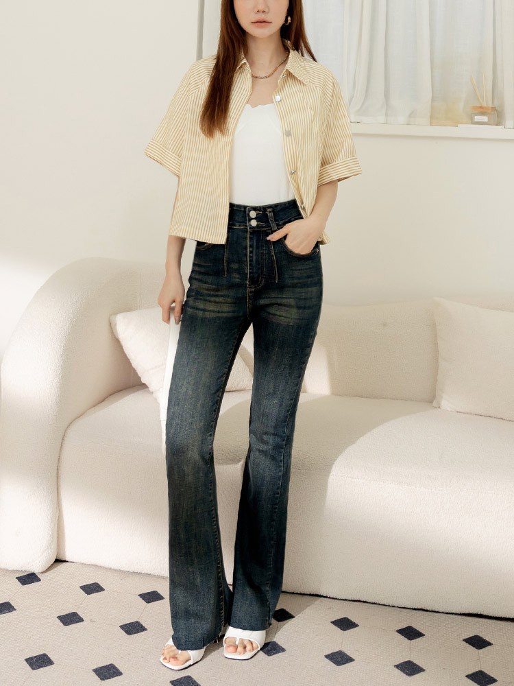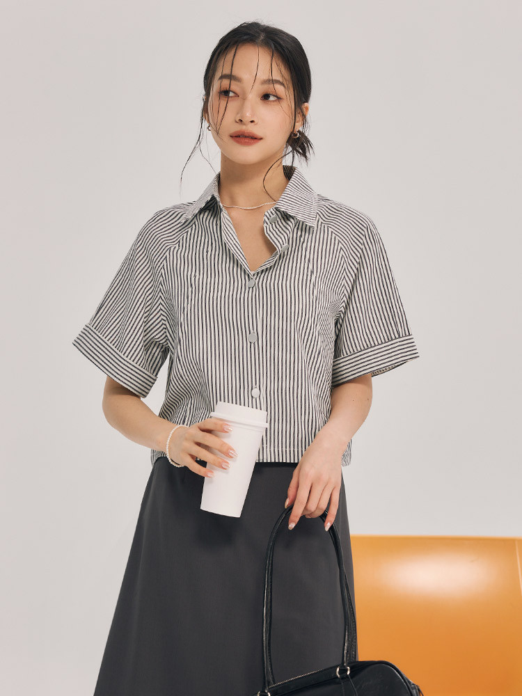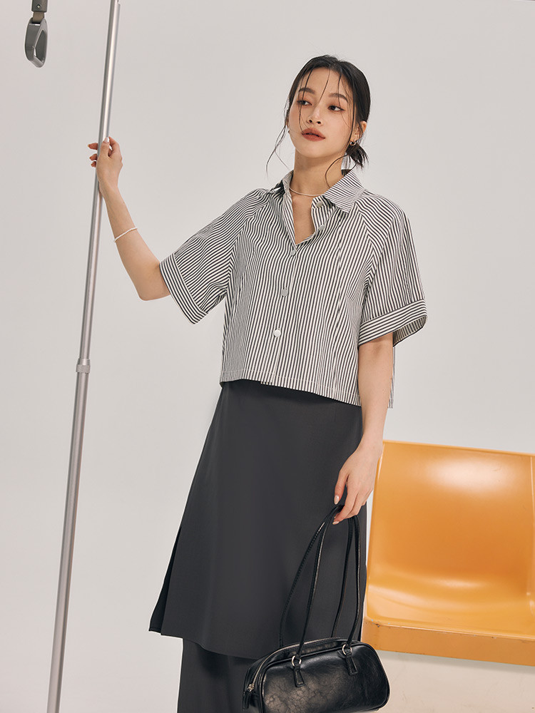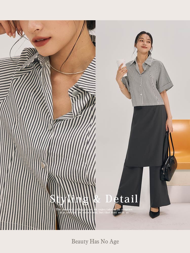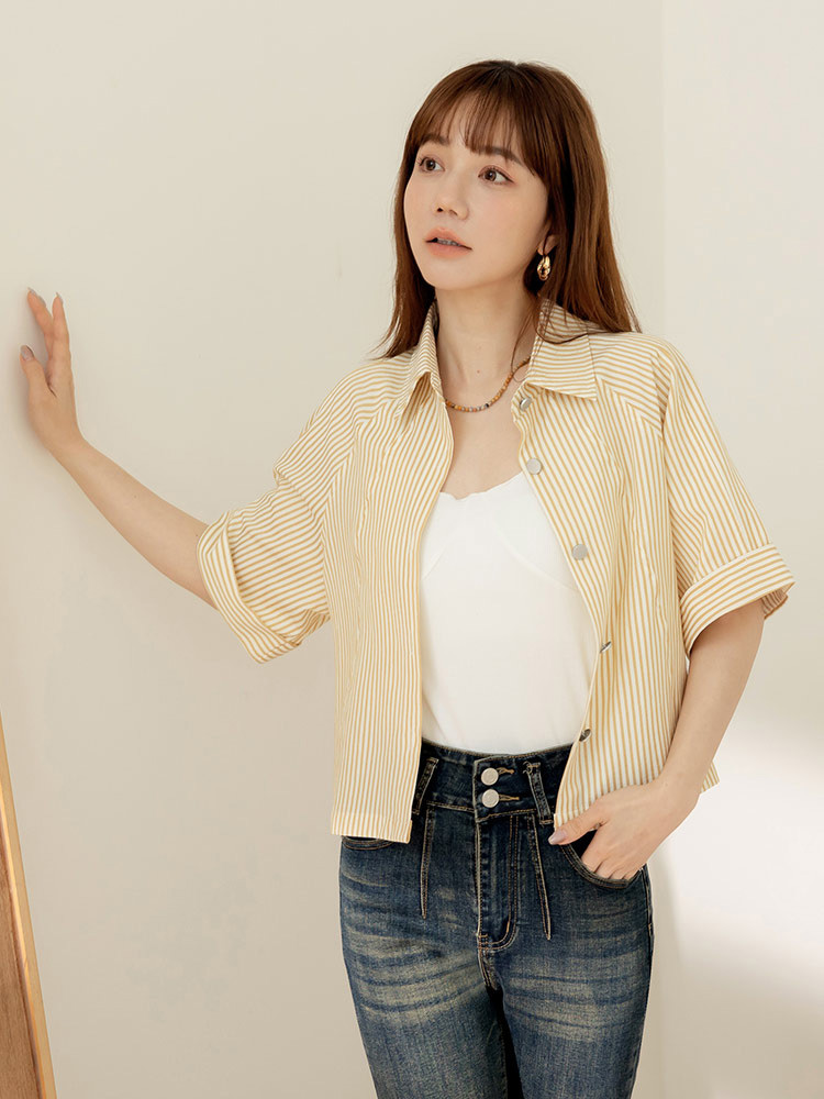 OB嚴選 條紋廓型五分寬袖襯衫 《AB20113》深藍,M|深藍,L|深藍,XL|深藍,2L|深藍,3L|芥黃,M|芥黃,L|芥黃,XL|芥黃,2L|芥黃,3LT-shirtsOB嚴選官方旗艦店