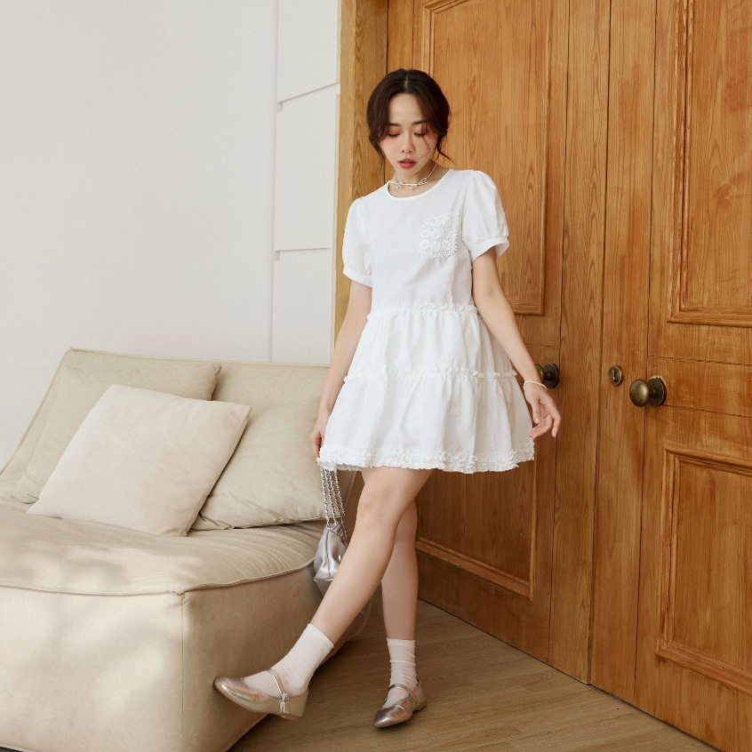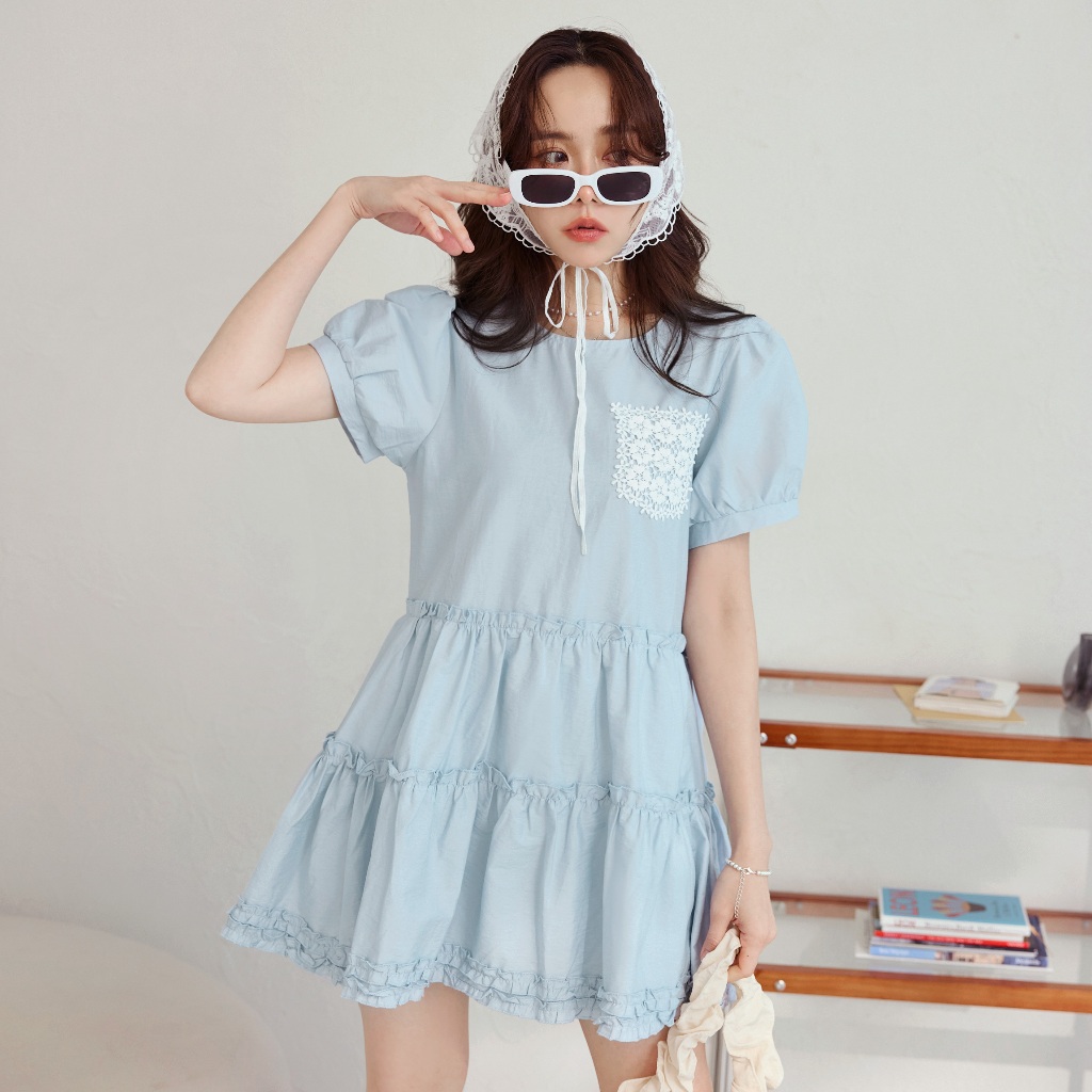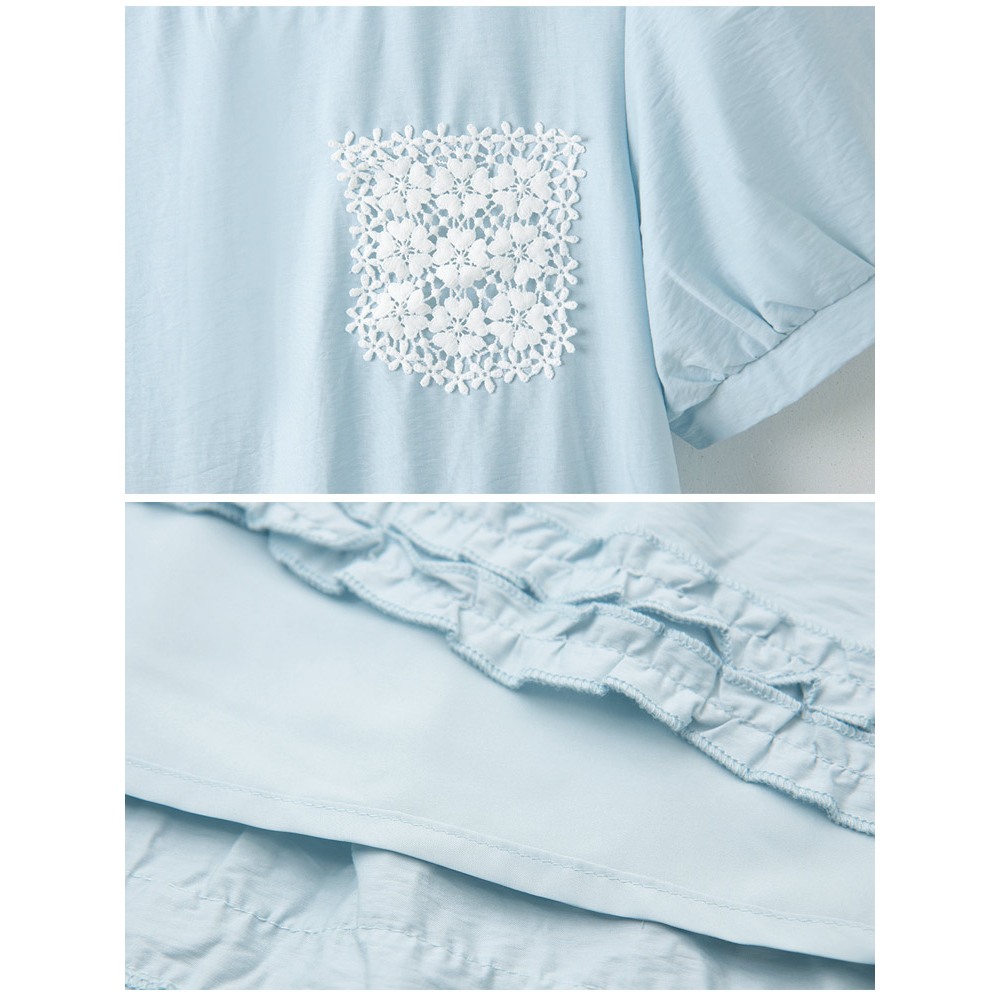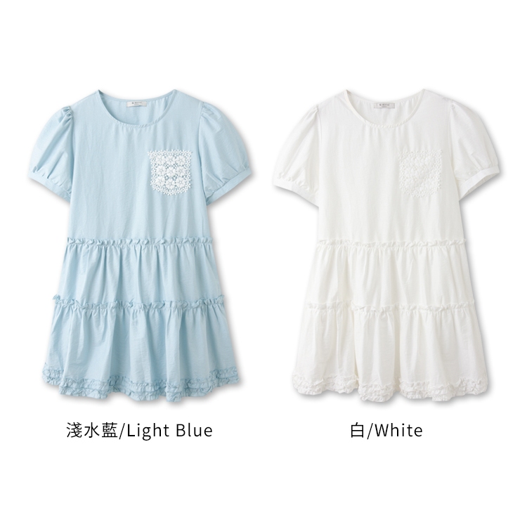 OB嚴選 圓領蕾絲口袋木耳邊層次短洋裝長版上衣 《DA10497》 大尺碼女裝/現貨淺水藍,3L|白,M|白,L|白,XL|白,2L|白,3L|淺水藍,M|淺水藍,L|淺水藍,XL|淺水藍,2LOB嚴選官方旗艦店