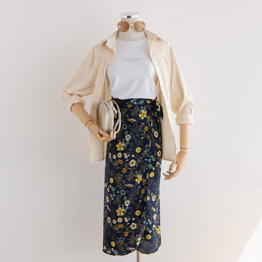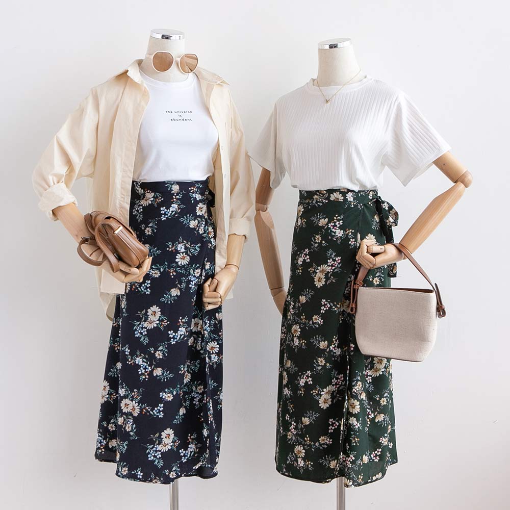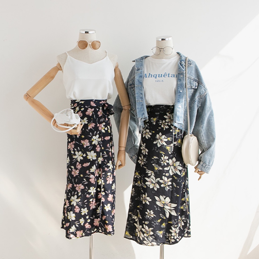 MUMU【P95860】★特賣★ 防曬雪紡碎花一片裙 長裙 遮陽裙 碎花裙 半身裙 防曬裙藏青雛菊,F|雞蛋花,F|四葉草,F|墨綠雛菊,F|槴子花,FMUMUSHOP 韓系女裝批發價 全站實拍