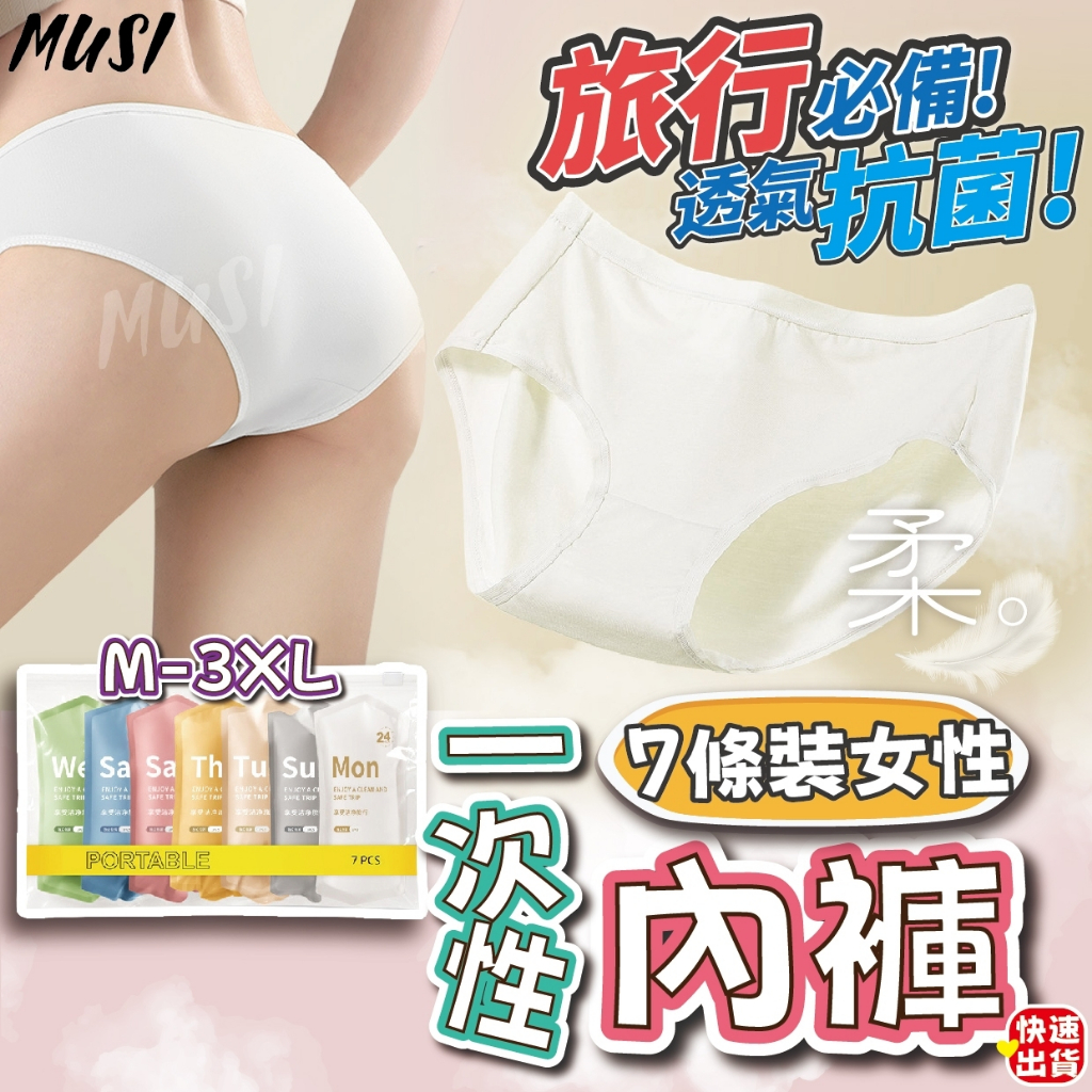 [隔日到貨]免洗褲 免洗內褲 一次性內褲 7條裝女性內褲 M-3XL 拋棄式內褲 紙內褲 出國必備 旅行7條裝女性一次性內褲-M|7條裝女性一次性內褲-L|7條裝女性一次性內褲-XL|7條裝女性一次性內褲-2XL|7條裝女性一次性內褲-3XLPantiesMUSI 口罩&包包帽子 專賣