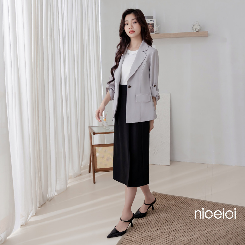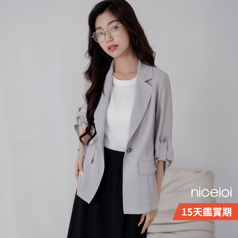 niceioi 都會輕職感挺版挽袖西裝外套 (共2色) 女裝淺灰,L|淺灰,XL|淺灰,S|淺灰,M|黑,S|黑,M|黑,L|黑,XLBlazersniceioi 官方旗艦店