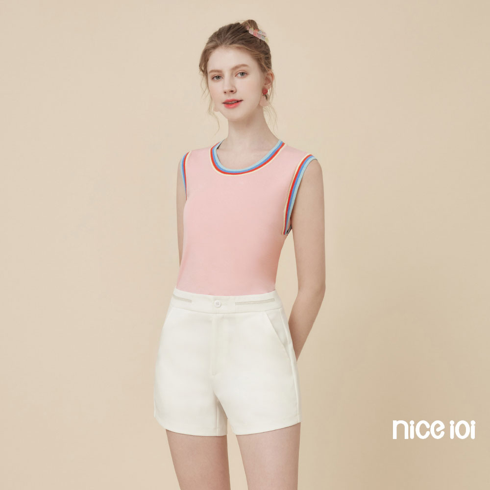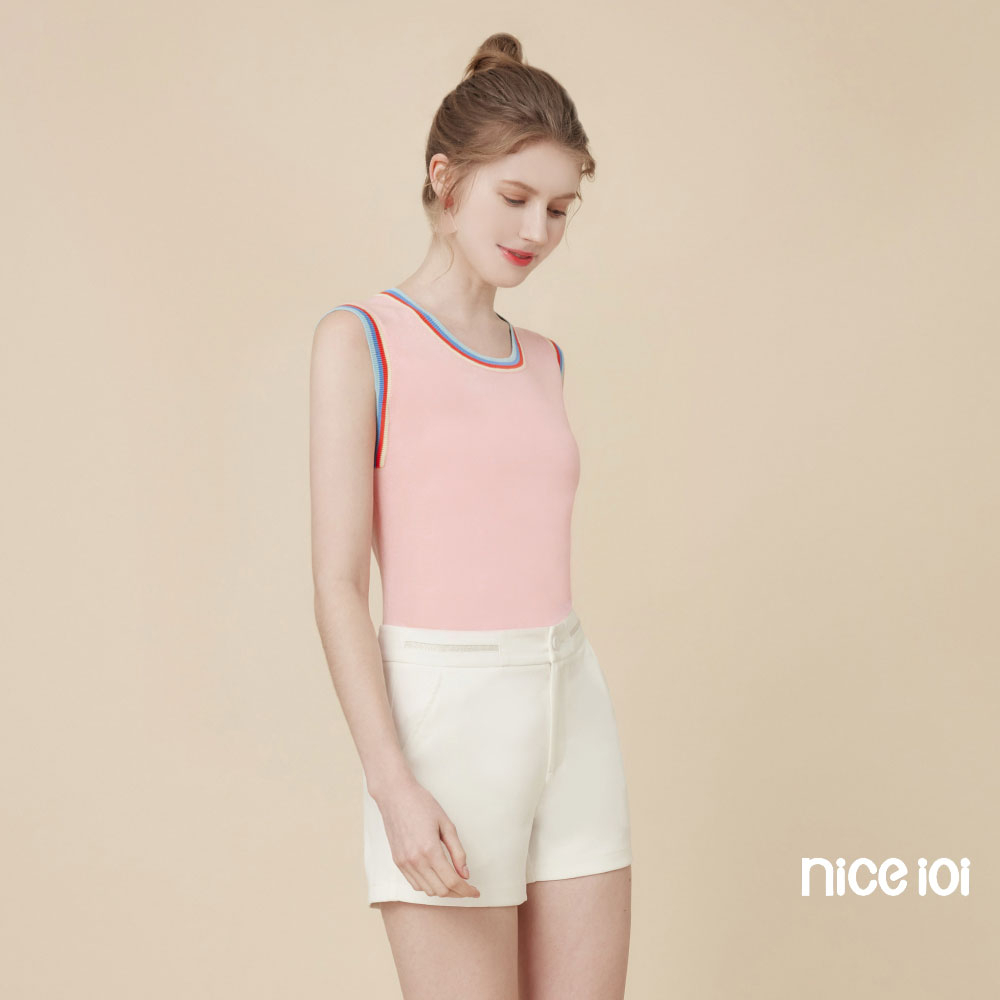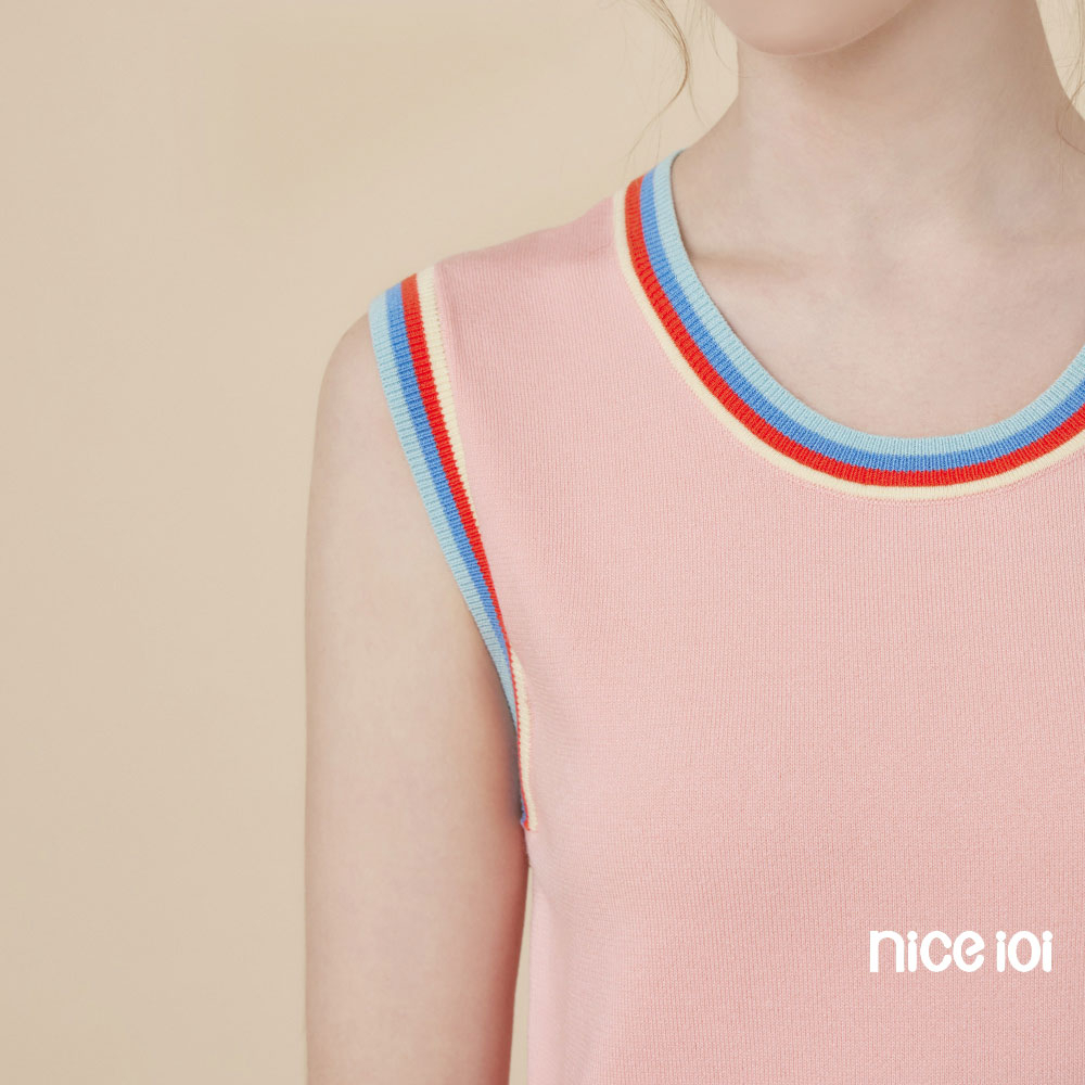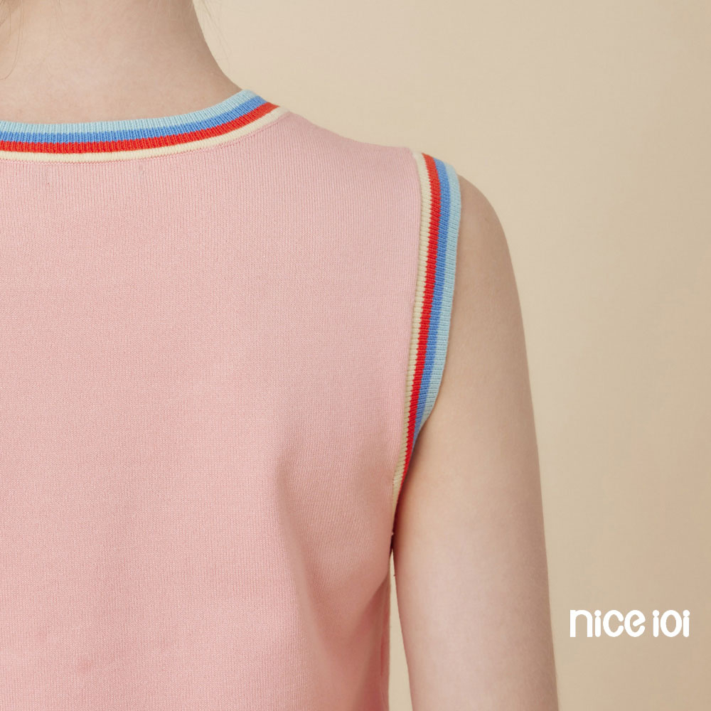 niceioi【特惠】休閒彩虹滾邊針織背心 (共2色) 女裝白,M|白,L|白,XL|粉,S|粉,M|粉,L|粉,XL|白,Sniceioi 官方旗艦店
