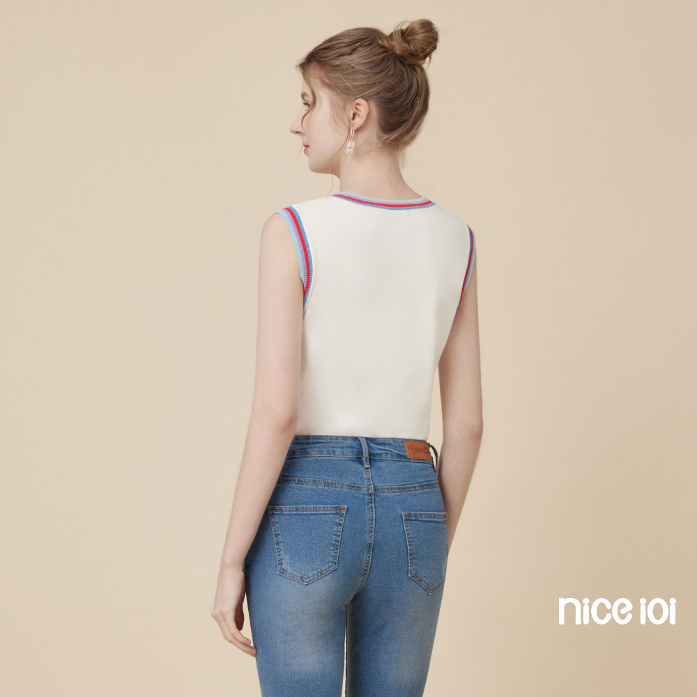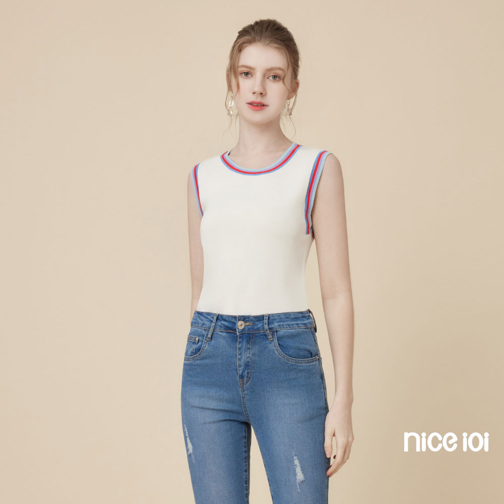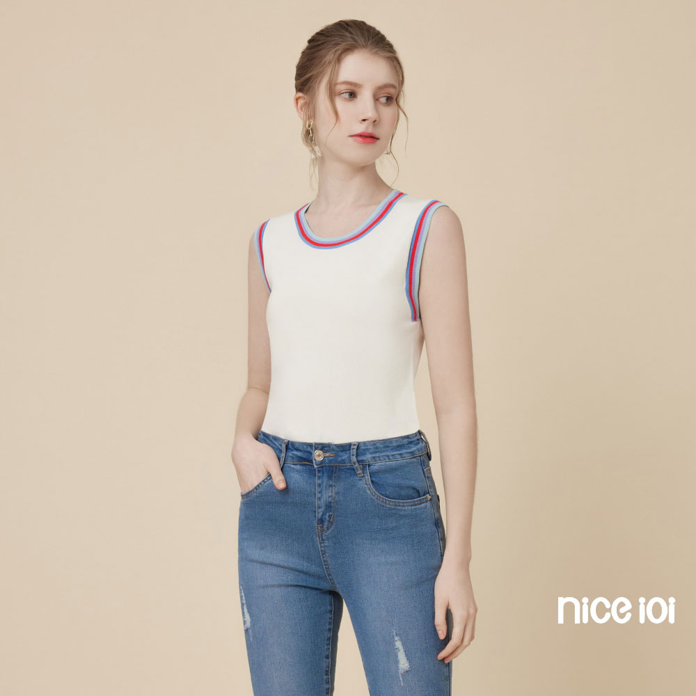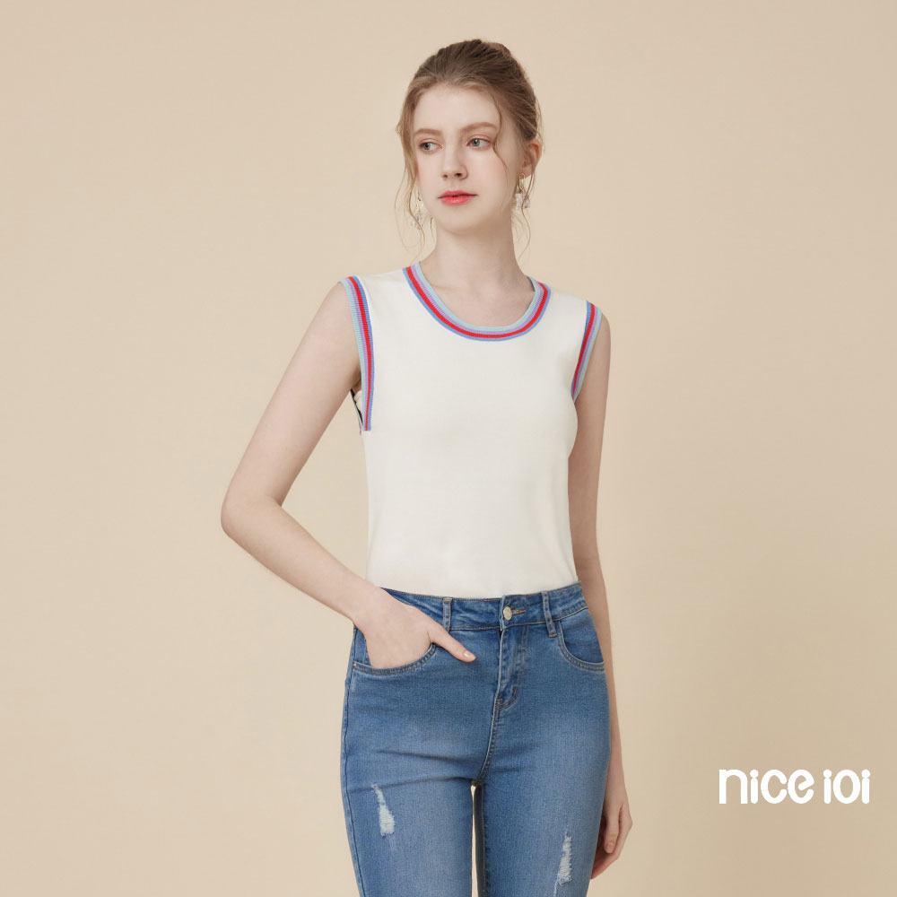 niceioi【特惠】休閒彩虹滾邊針織背心 (共2色) 女裝白,M|白,L|白,XL|粉,S|粉,M|粉,L|粉,XL|白,Sniceioi 官方旗艦店