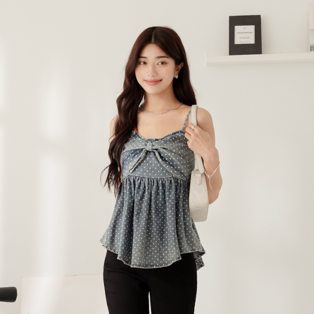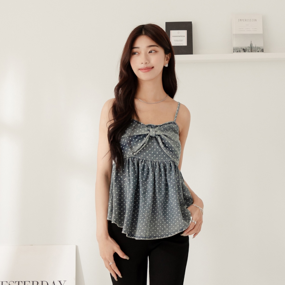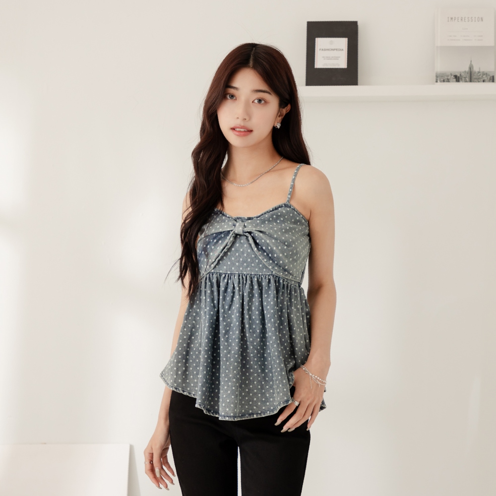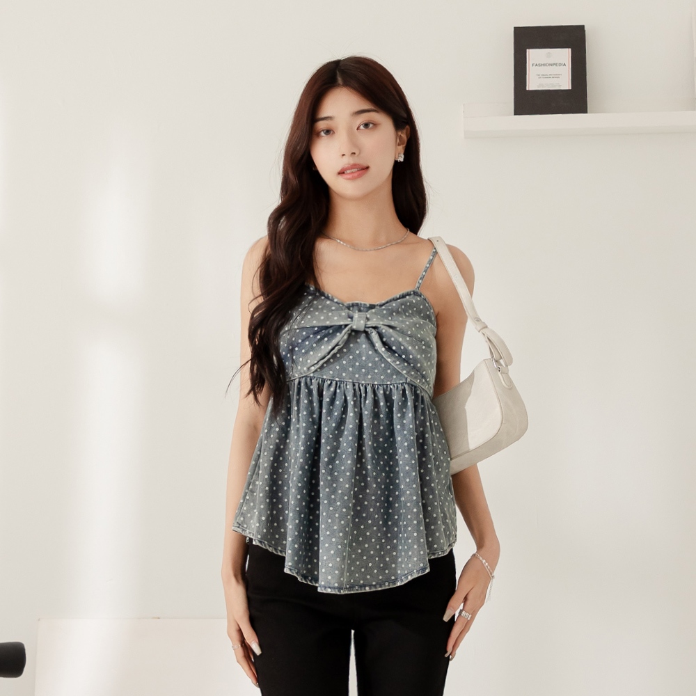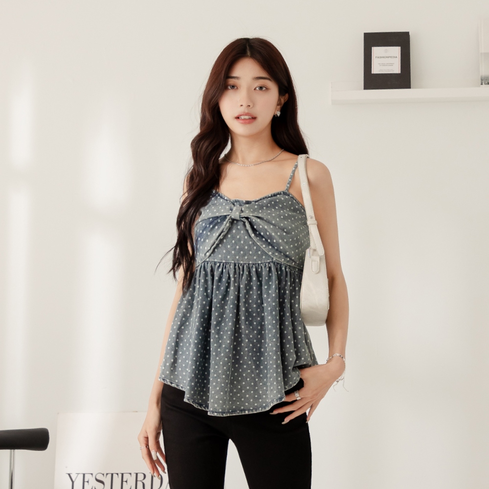 niceioi【特惠】復古大蝴蝶結點點牛仔背心 女裝藍,FTanks & Camisolesniceioi 官方旗艦店
