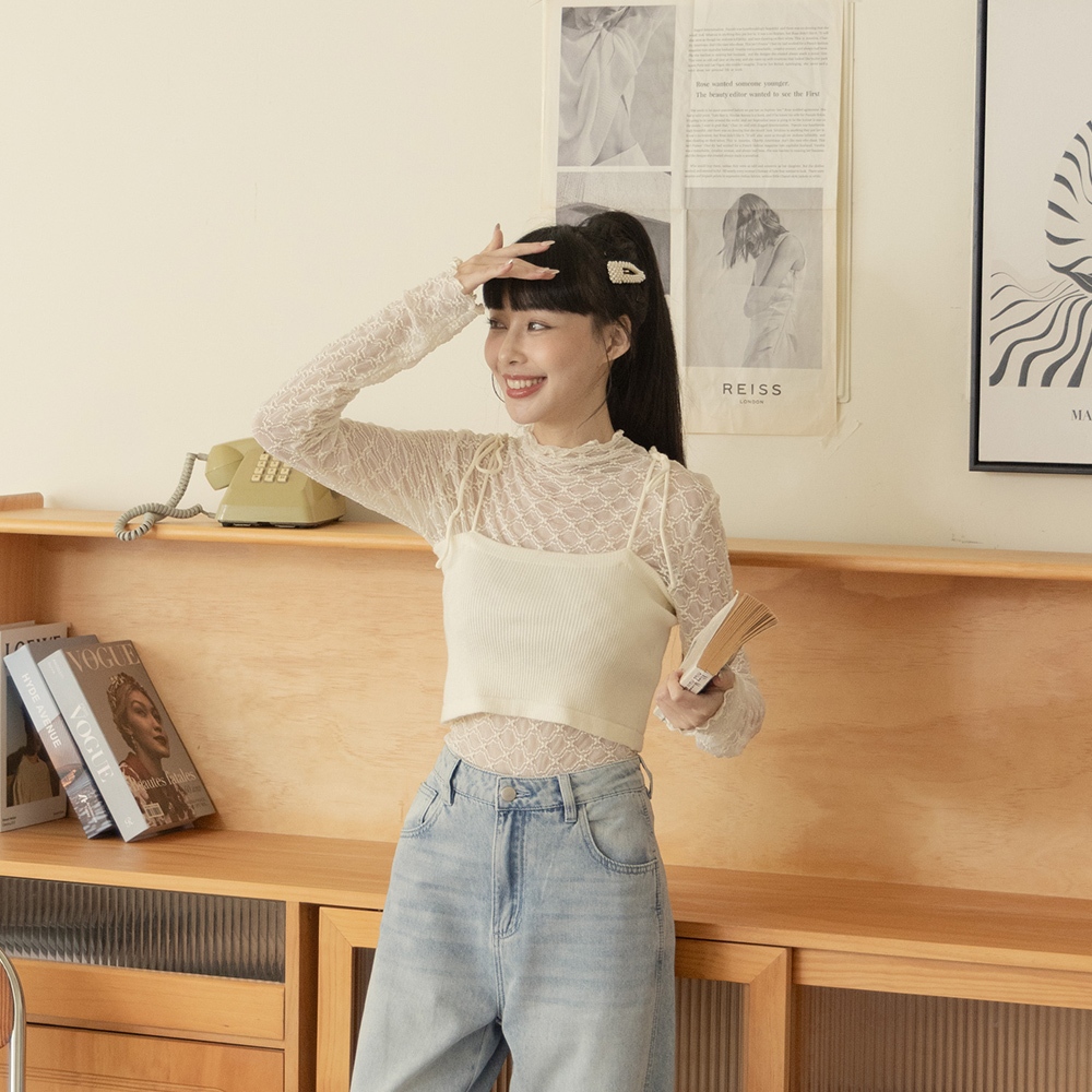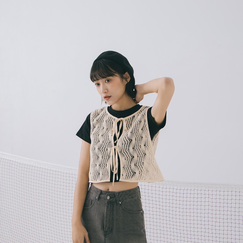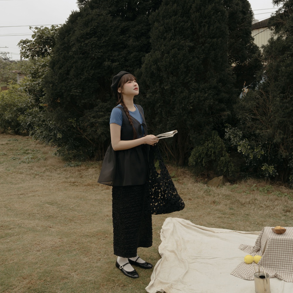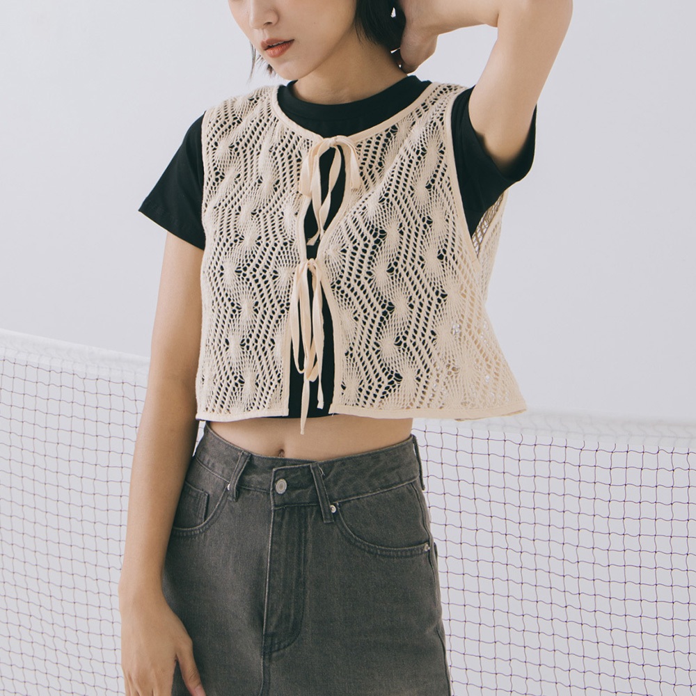 QUEENSHOP_ S 女裝 鏤空雙綁帶小花兩穿罩衫背心 兩色售 現+預 【01098788】黑|杏OthersQUEENSHOP