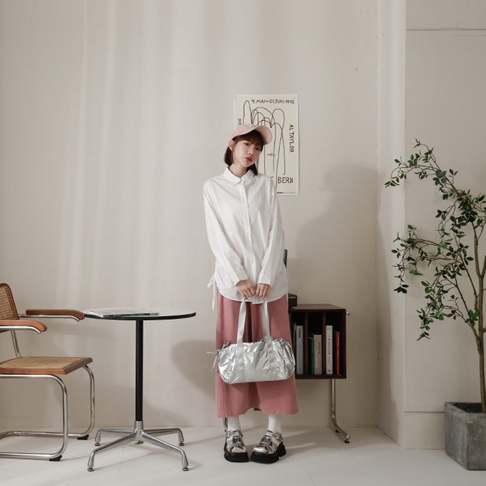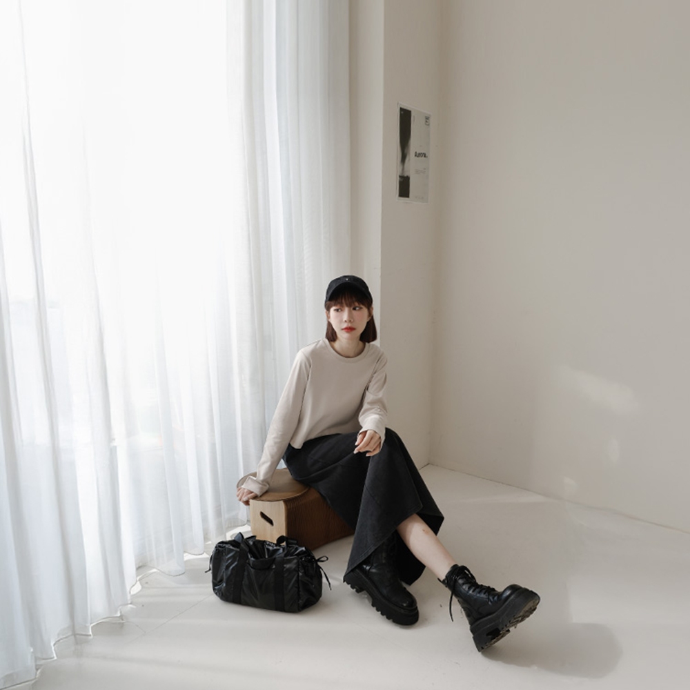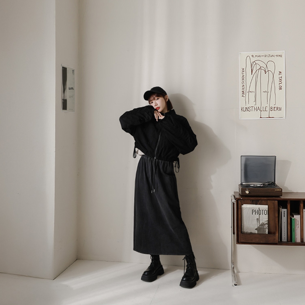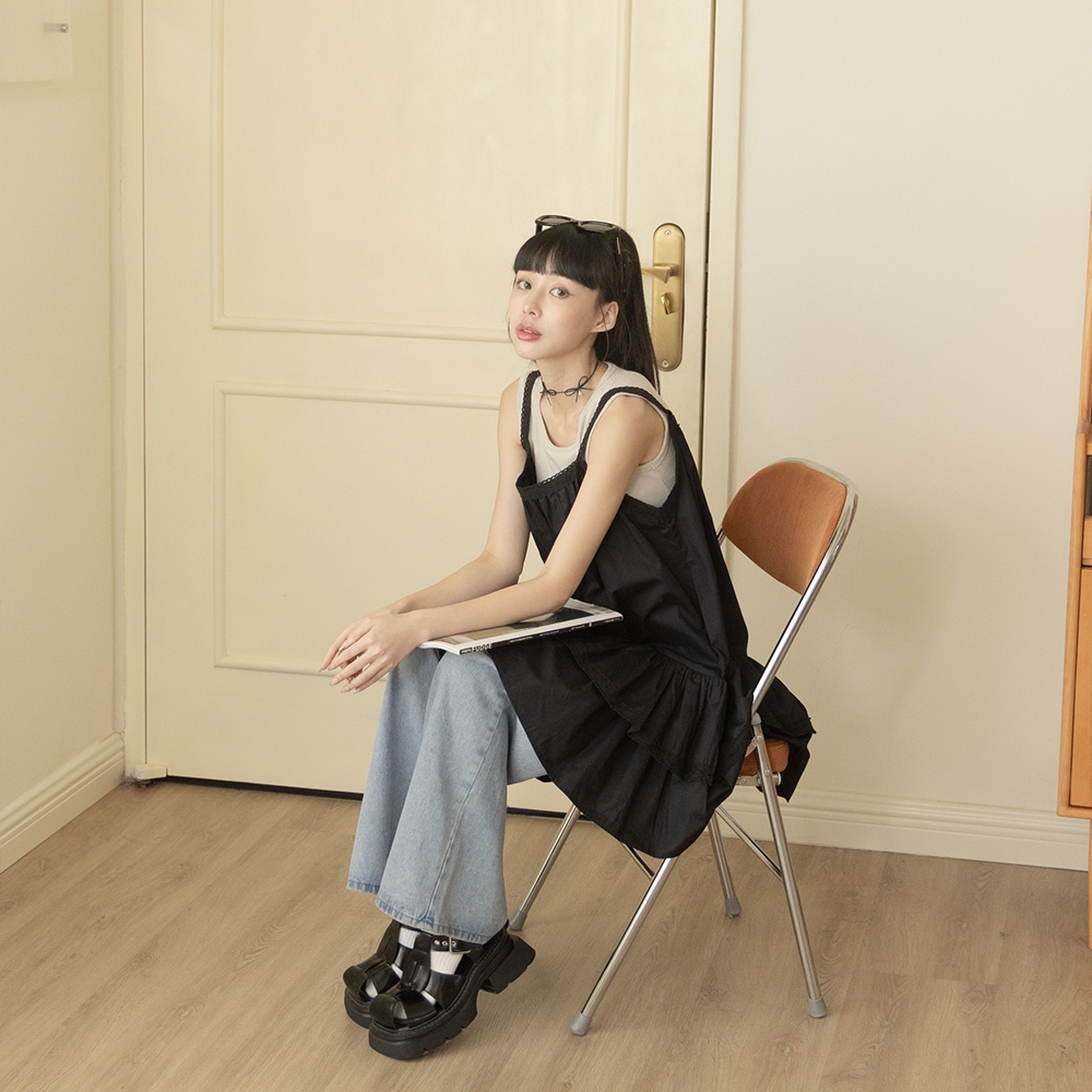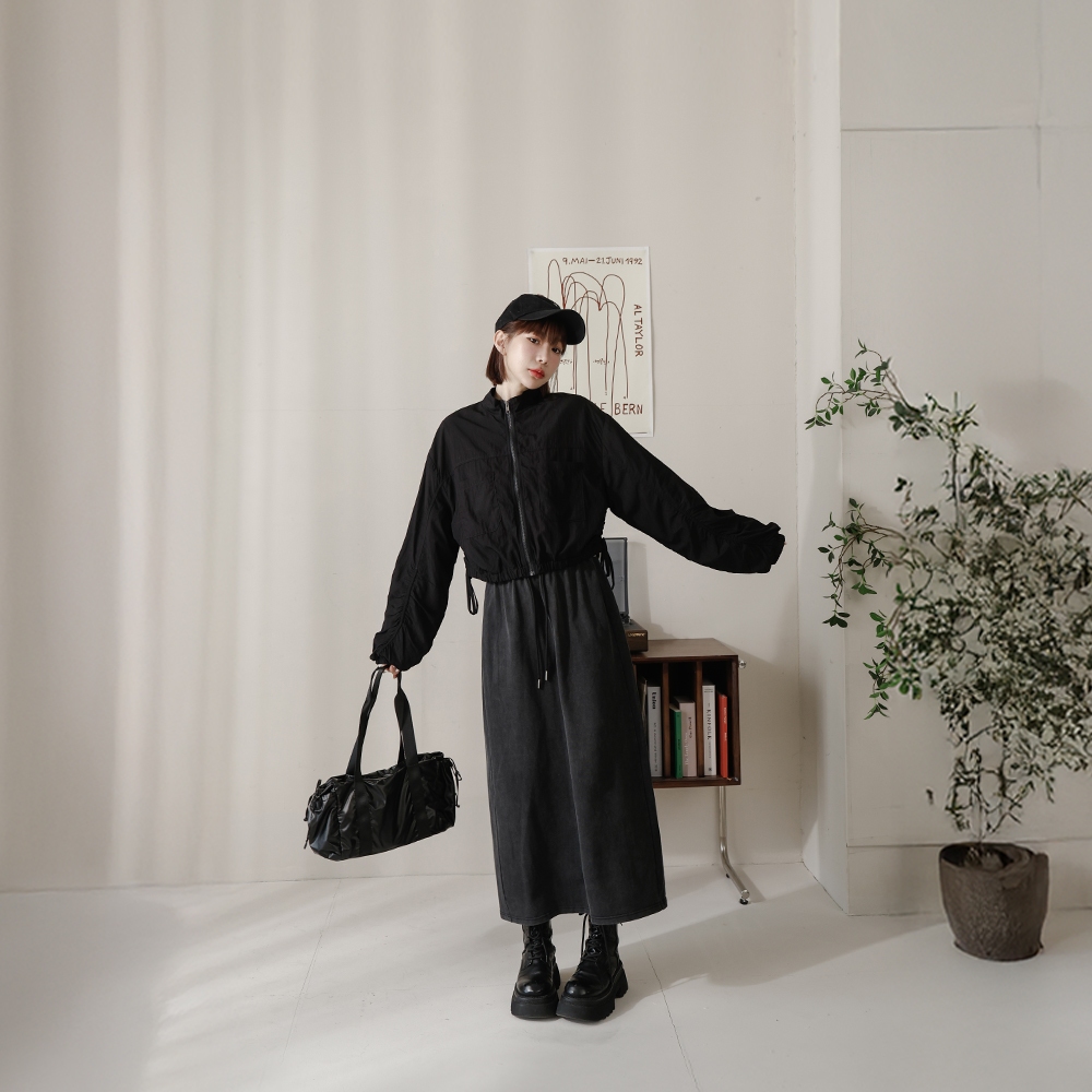 QUEENSHOP_ S 女裝 素面洗舊感設計綁帶棉裙 兩色售 現+預 【03021530】黑|粉QUEENSHOP