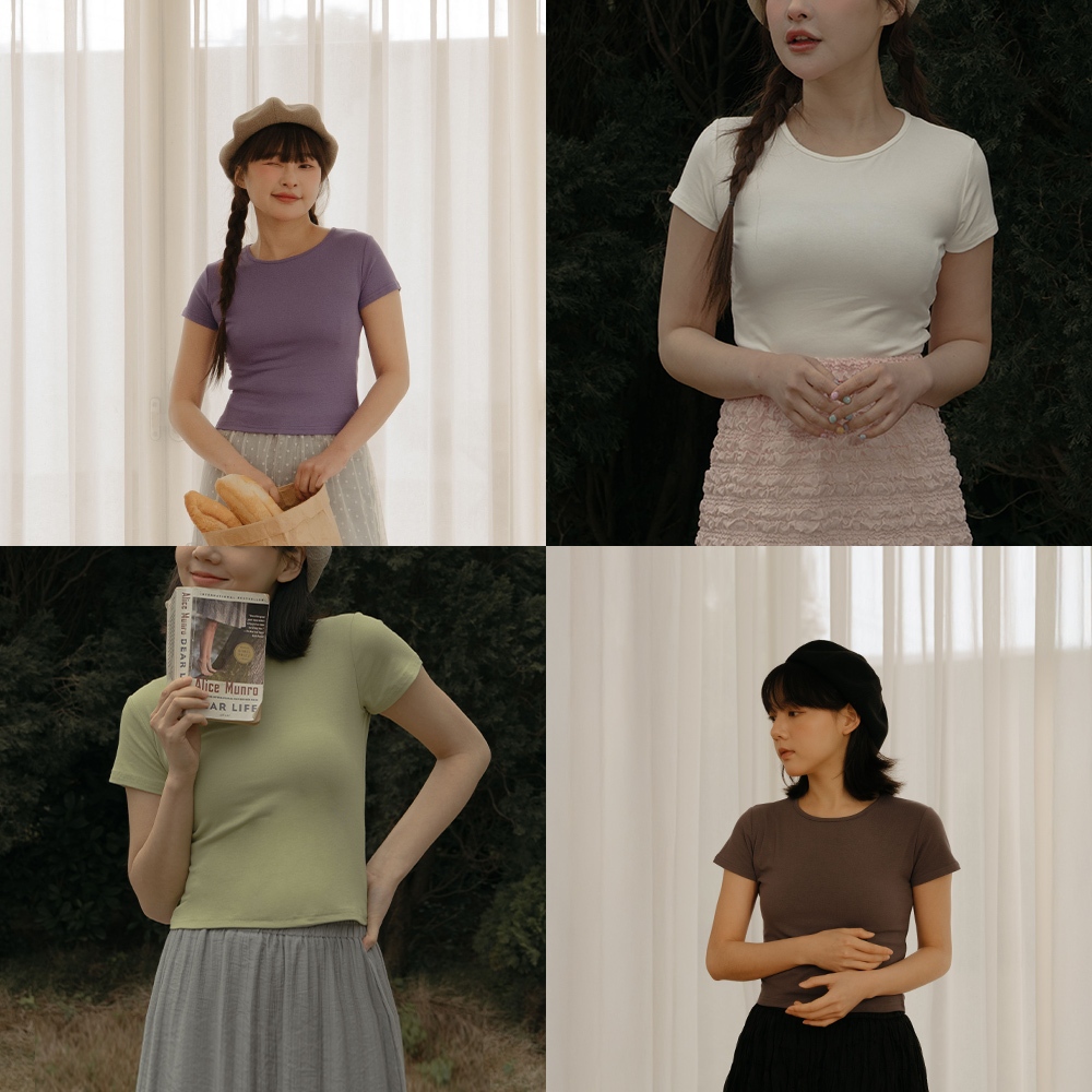 QUEENSHOP_ S 女裝 短袖 素面彈性設計圓領短袖上衣 六色售 現+預 【01190168】黑|白|藍|綠|紫|深灰T-shirtsQUEENSHOP