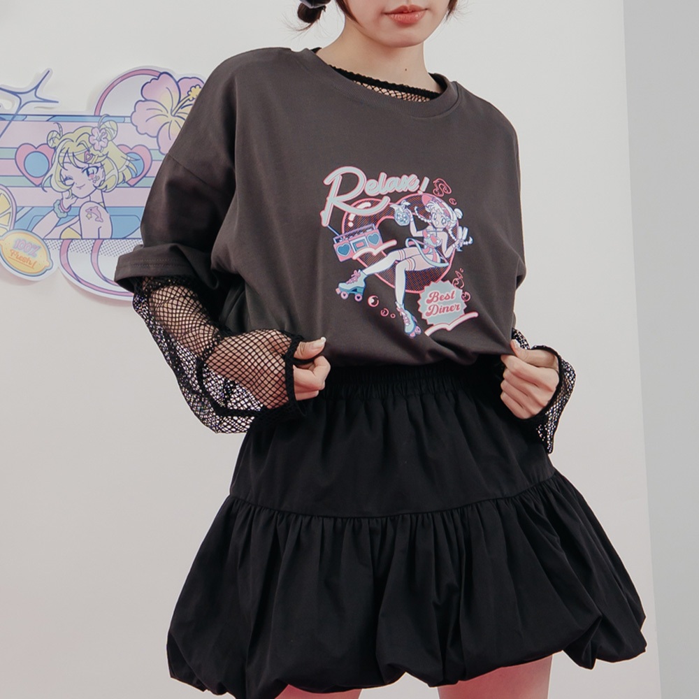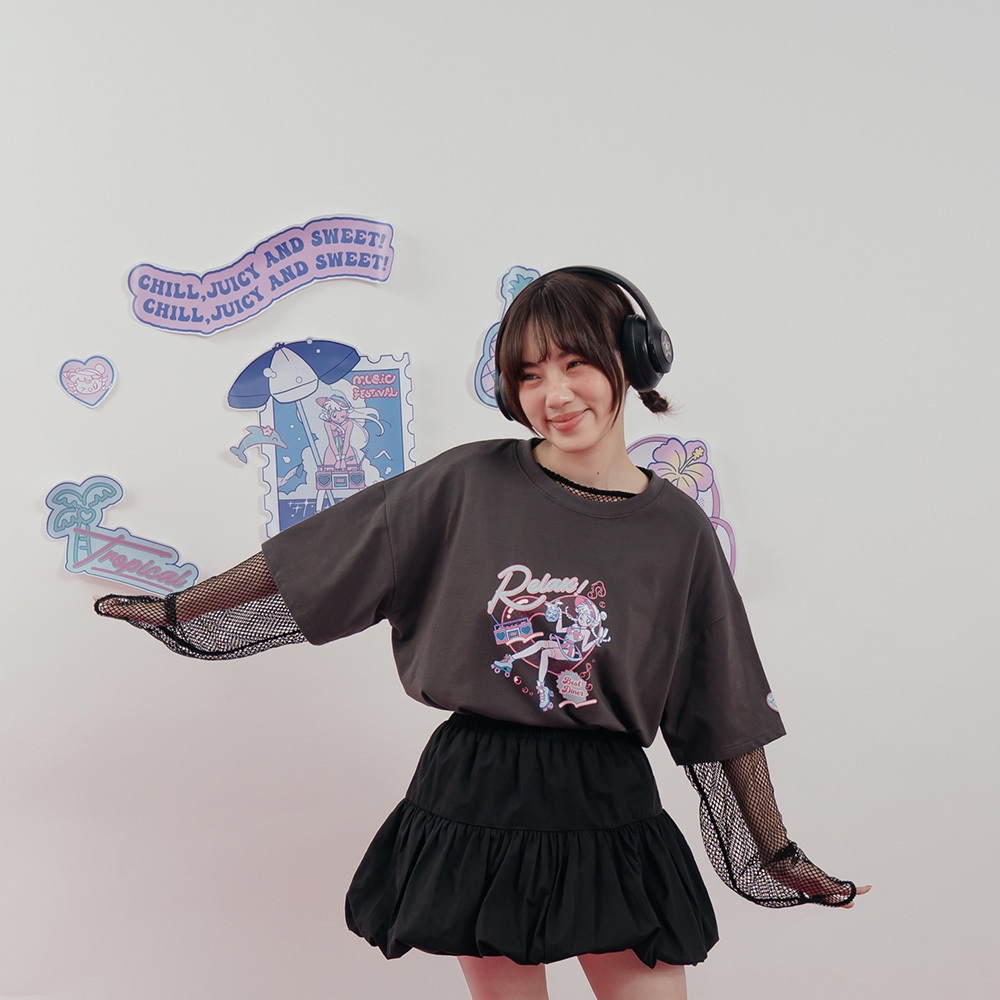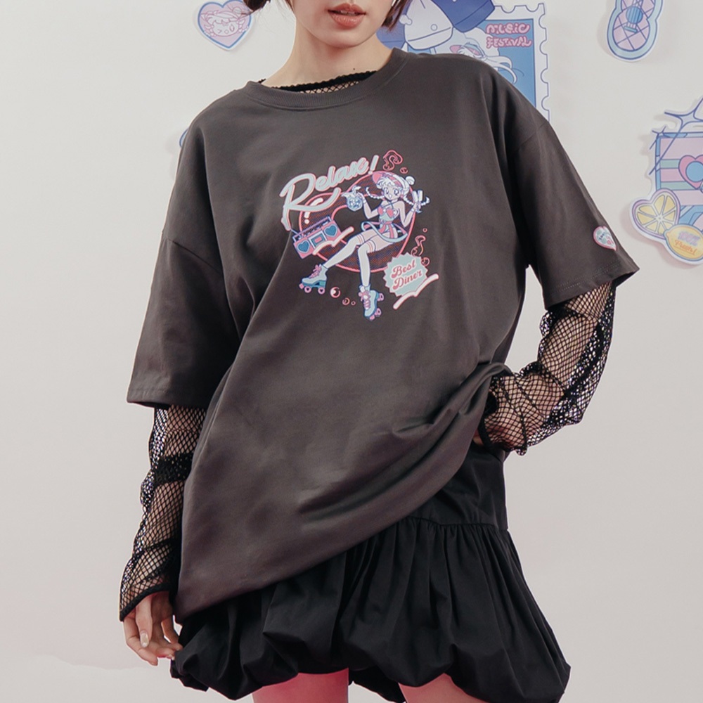 QUEENSHOP_ S 女裝 短袖 MIT 寬片片 RELAX音樂少女印圖寬版短袖上衣 現+預 【01190224】依賣場T-shirtsQUEENSHOP