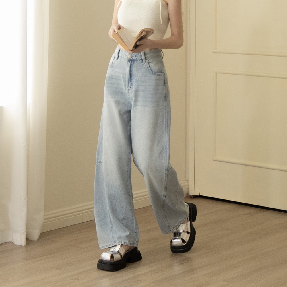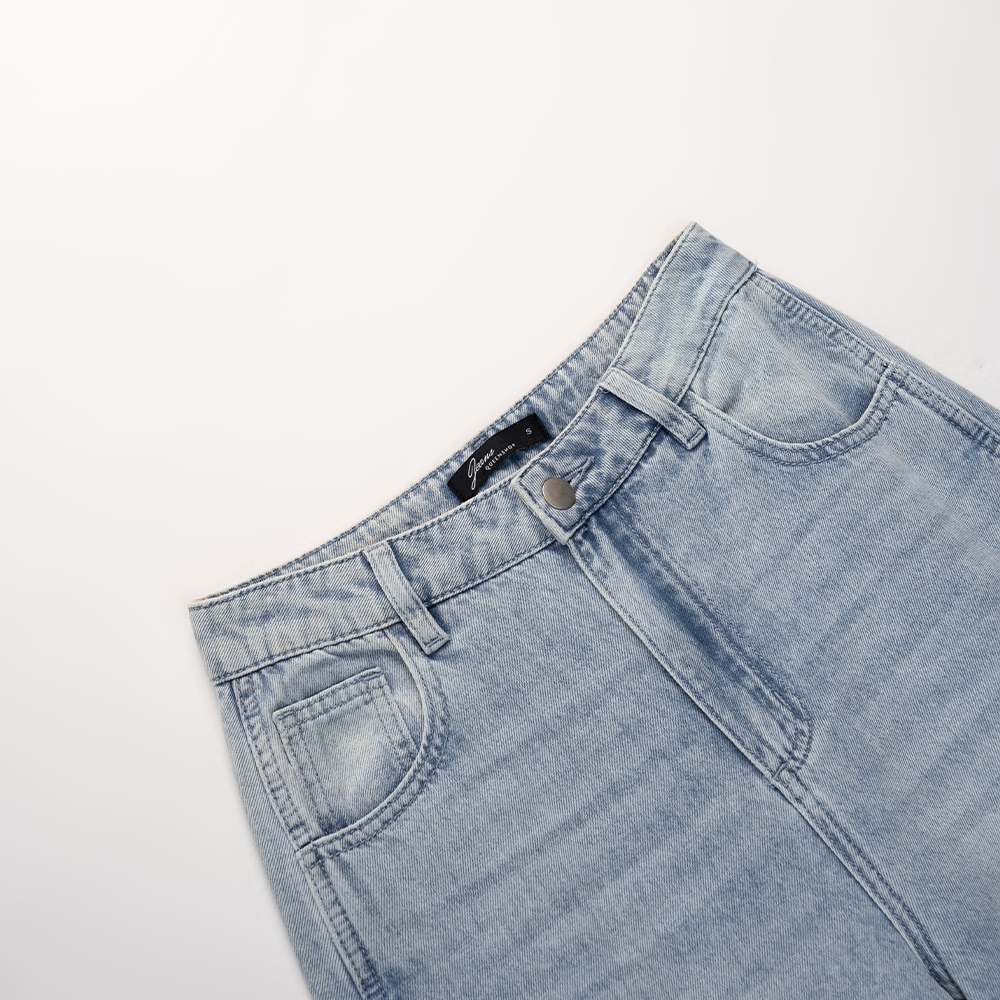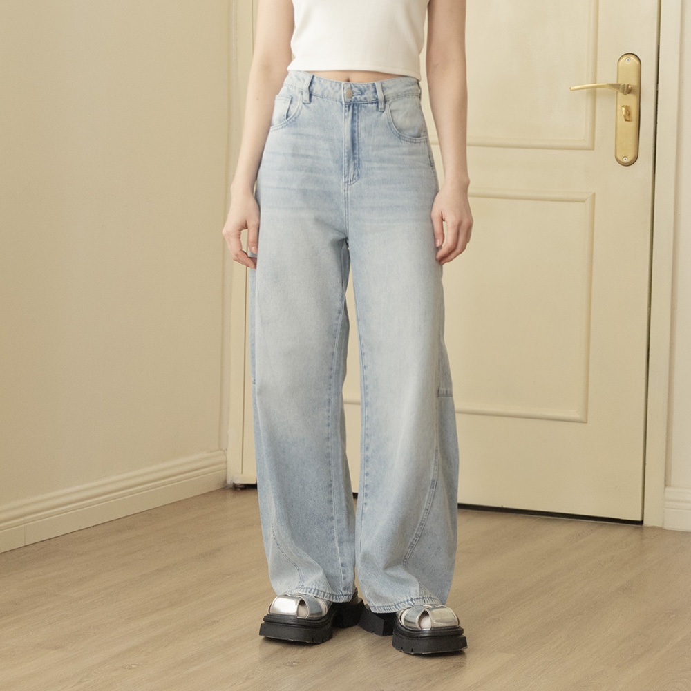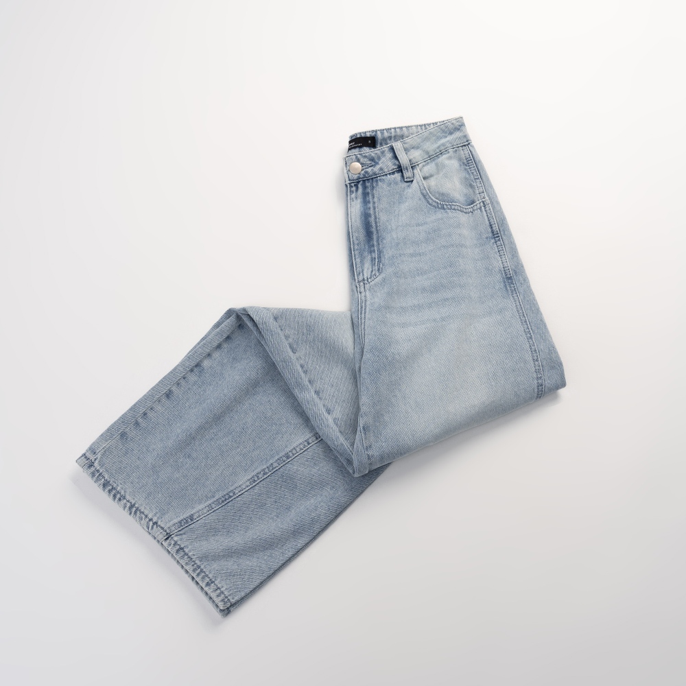 QUEENSHOP_ S 女裝 質感剪接設計錐型牛仔褲 S/M/L 現+預 【04011785】S|M|LQUEENSHOP
