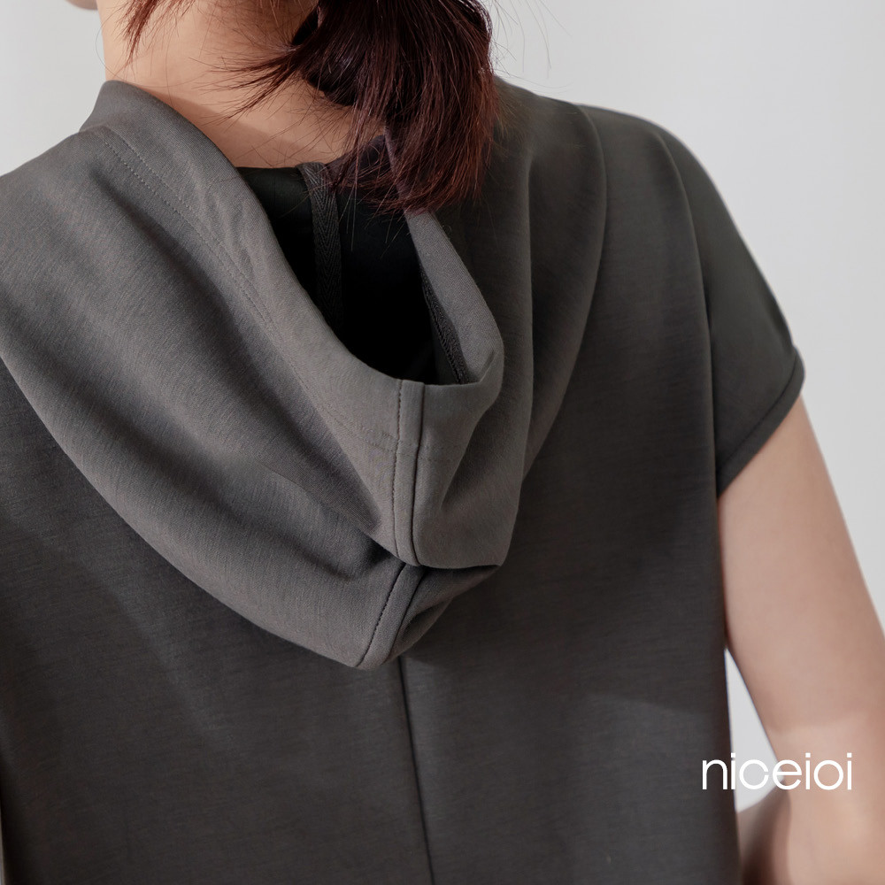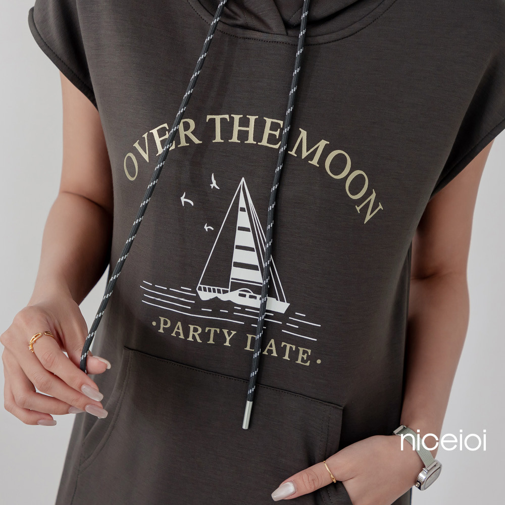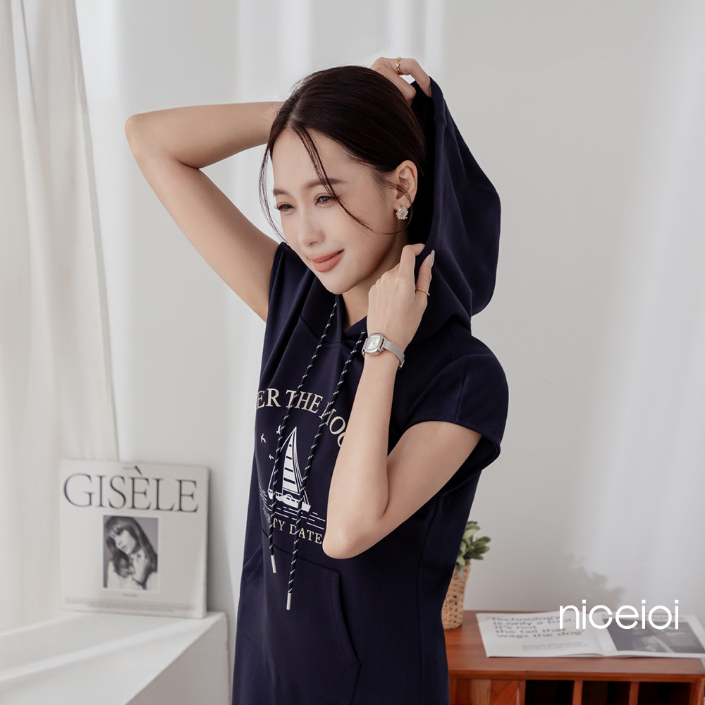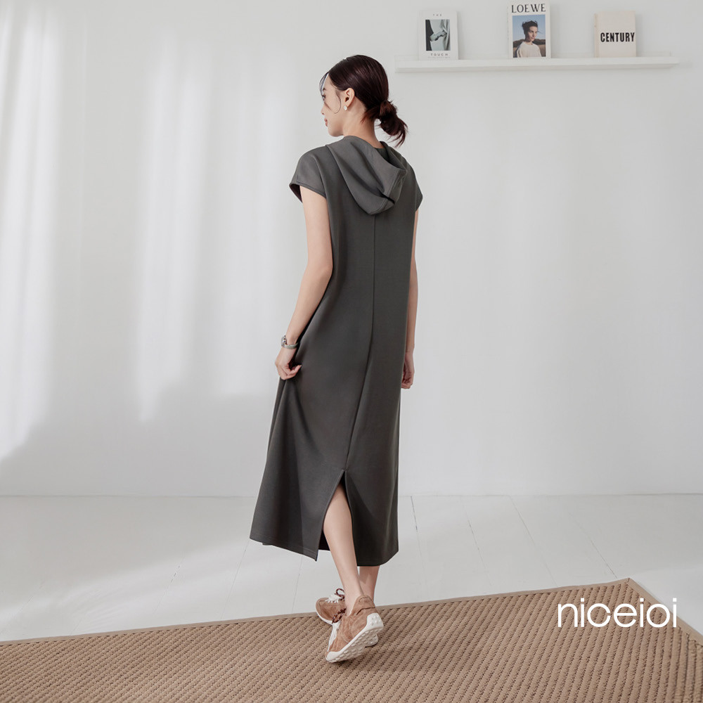 niceioi 空氣棉 洋裝 長版洋裝 深灰色 [夏夕帆船連帽抽繩空氣棉洋裝] S-XL 連帽洋裝 大尺碼洋裝 女裝
