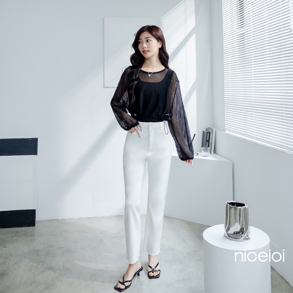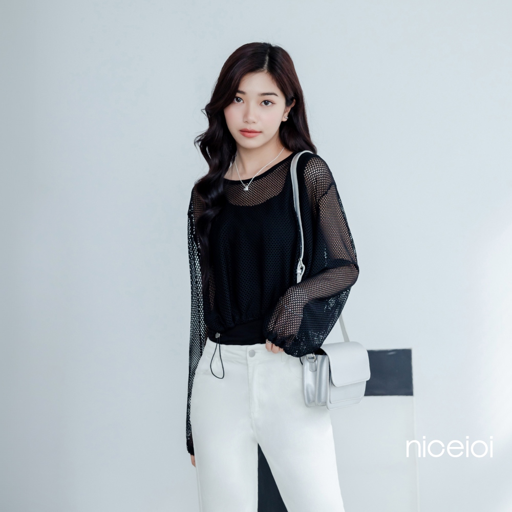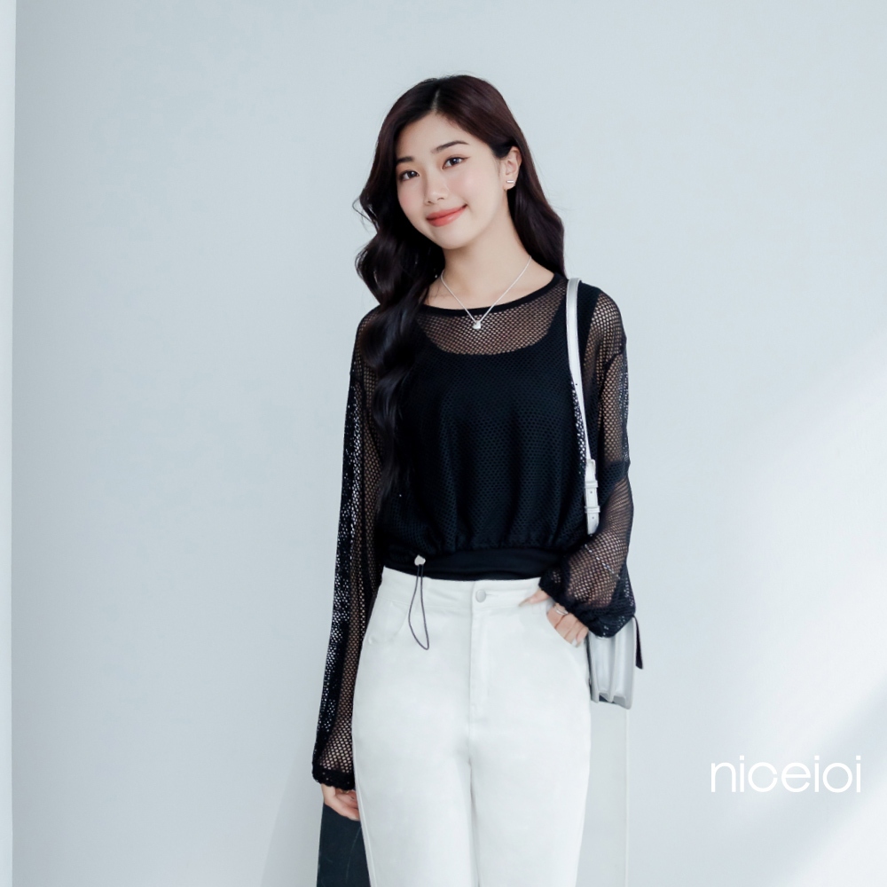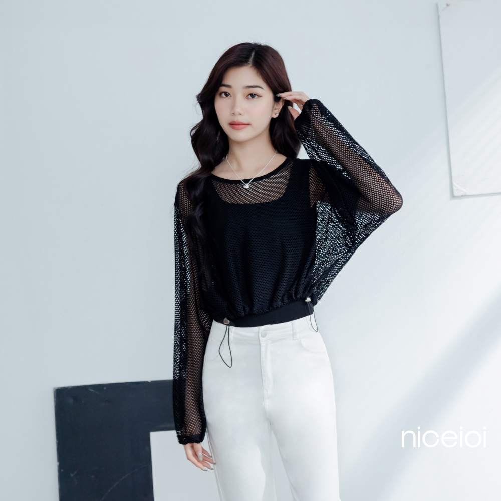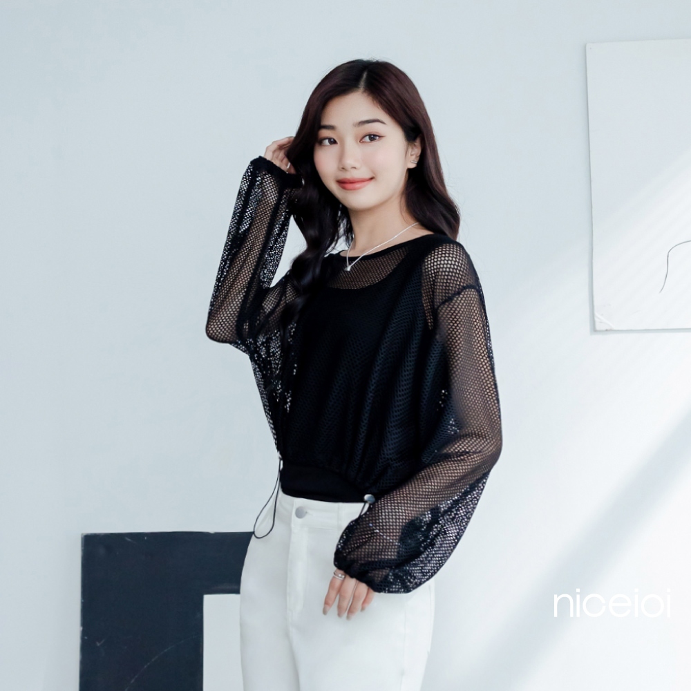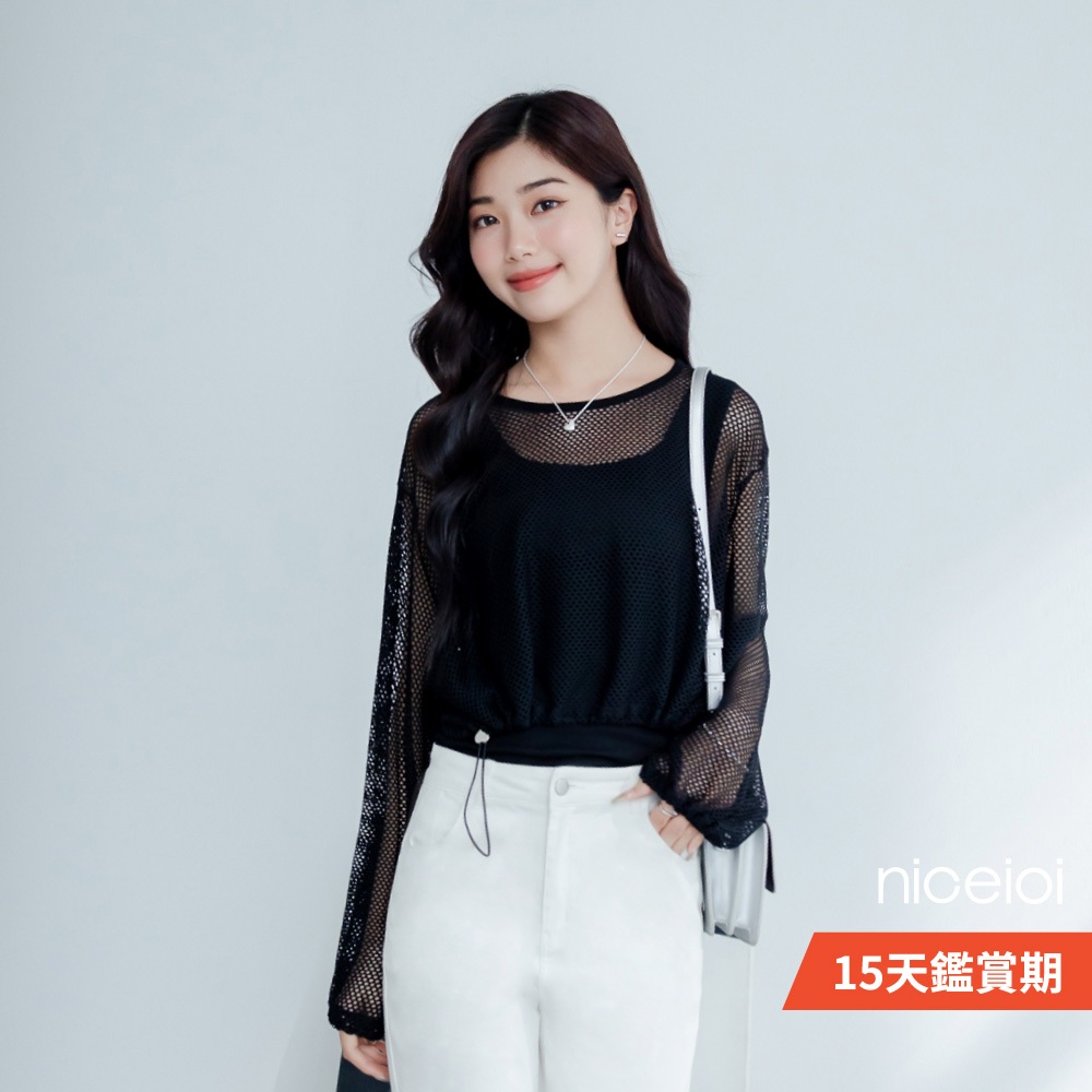 niceioi【特惠】個性網布愛心釦抽繩兩件式上衣 女裝黑,S|黑,M|黑,L|黑,XLOthersniceioi 官方旗艦店