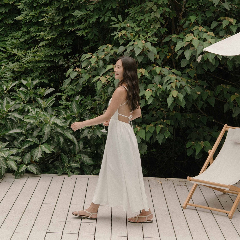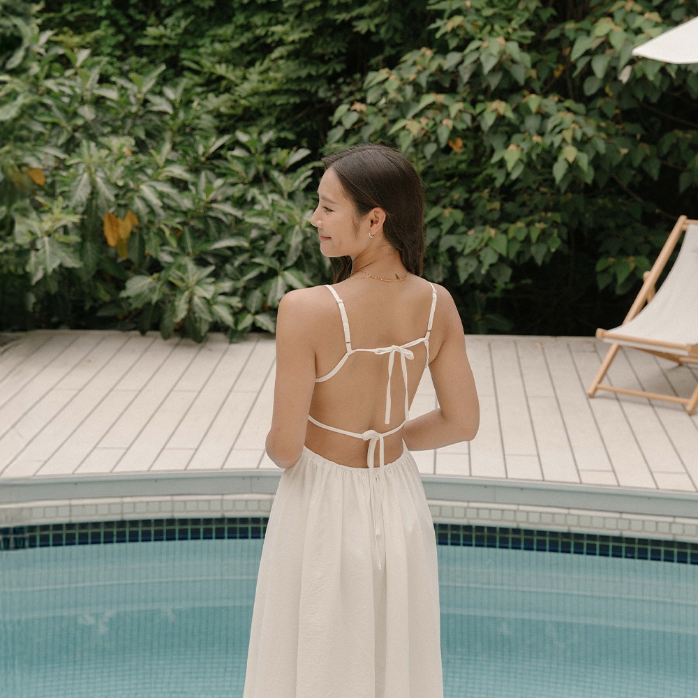 QUEENSHOP_ S 品子聯名 後鏤空綁帶設計洋裝-白 S/M/L 現+預 【01087128】白S|白M|白LQUEENSHOP