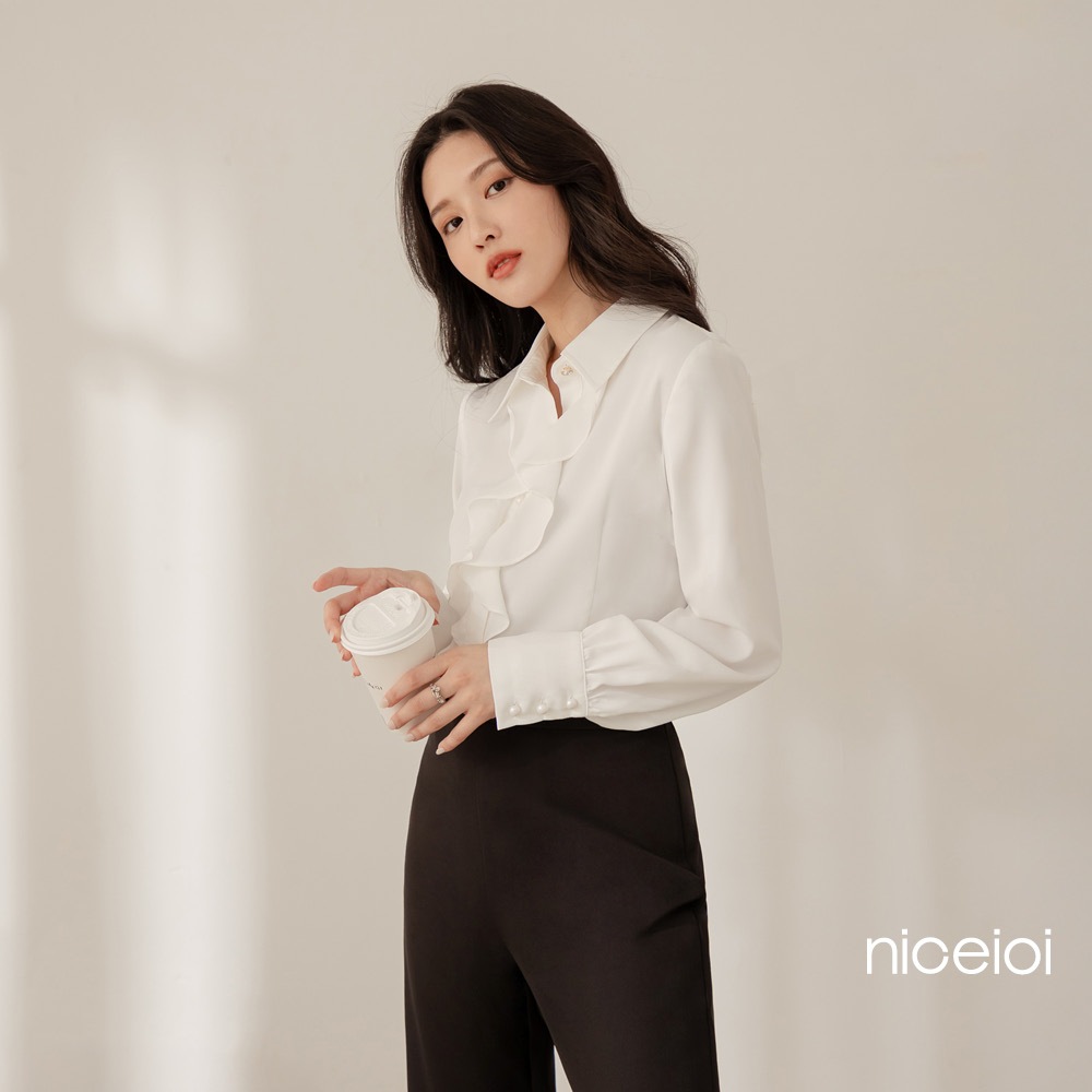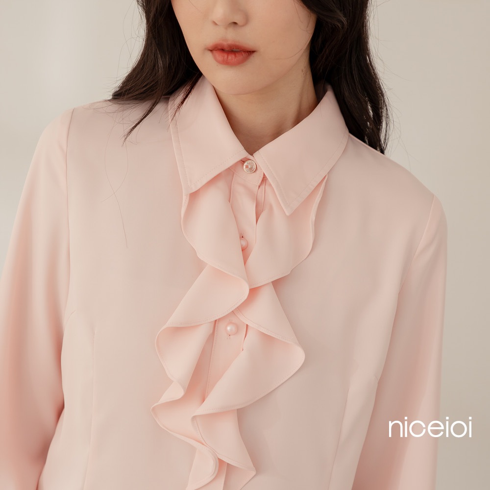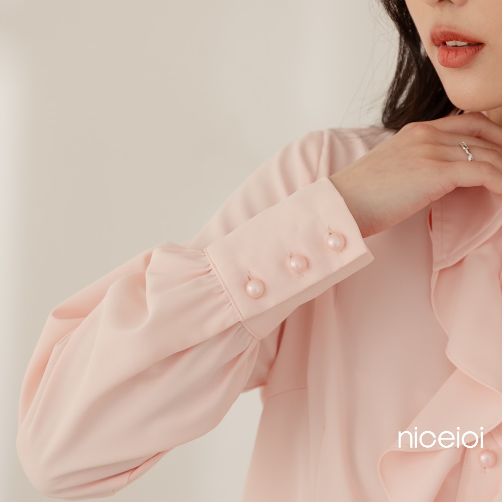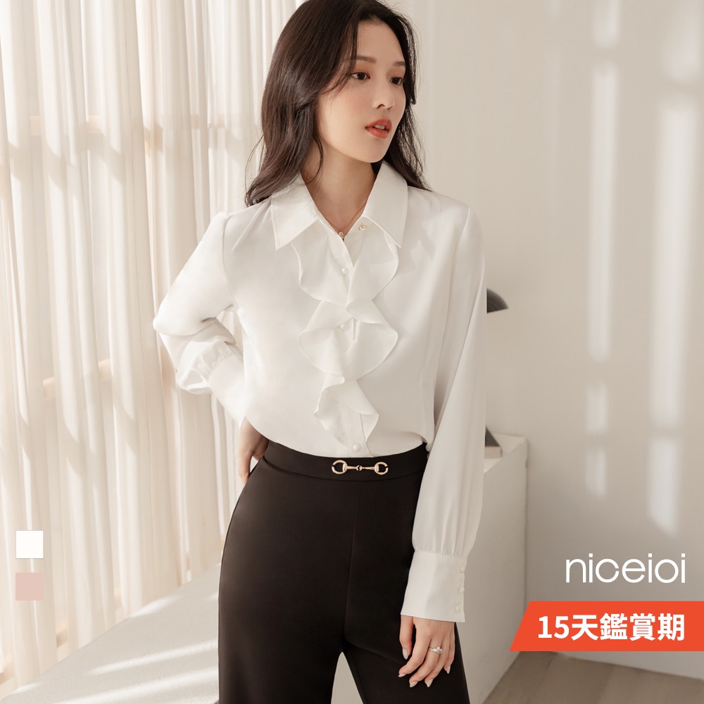 niceioi【特惠】長袖襯衫 襯衫 女生襯衫 白色 [伯爵波浪荷葉領巾珍珠襯衫上衣] 女裝粉,XL|白,S|白,M|白,L|白,XL|粉,S|粉,M|粉,LShirts & Blousesniceioi 官方旗艦店