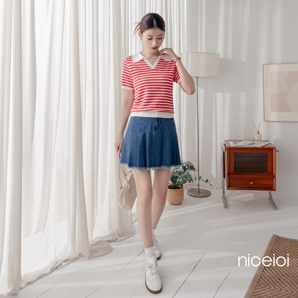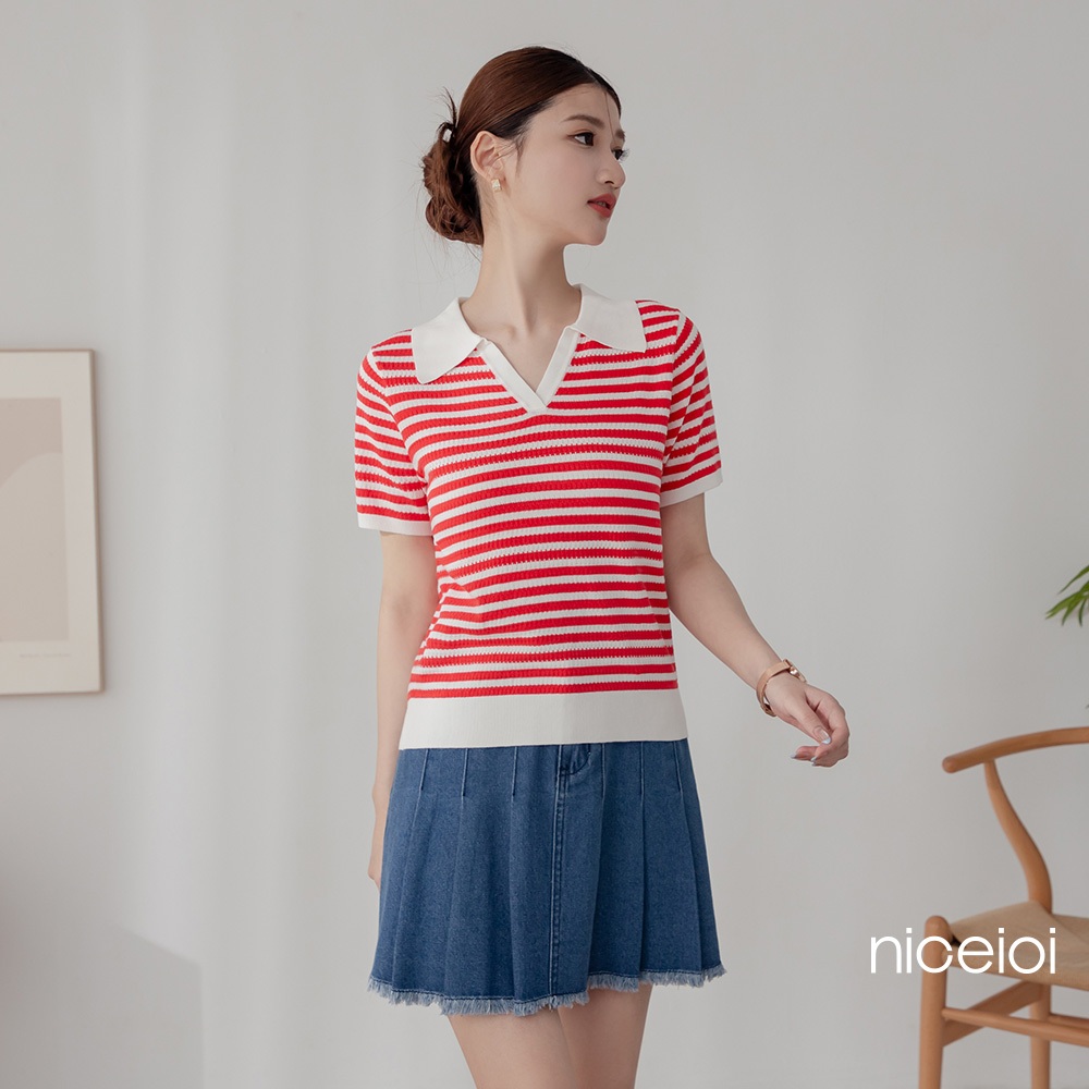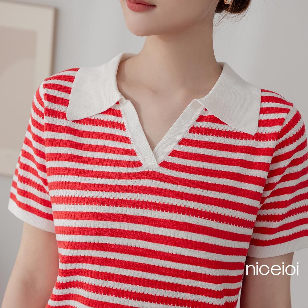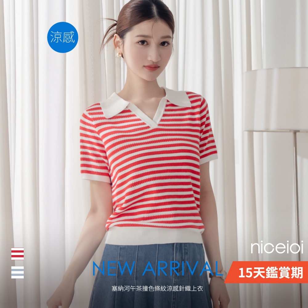 niceioi 涼感上衣 短袖 polo衫 紅色 [海灘長假LOOK撞色條紋涼感針織上衣] V領 翻領 冰爽絲 女裝涼感polo領上衣-紅,M|涼感polo領上衣-紅,L|涼感polo領上衣-紅,XL|涼感polo領上衣-藍,S|涼感polo領上衣-藍,M|涼感polo領上衣-藍,L|涼感polo領上衣-藍,XL|涼感polo領上衣-紅,Sniceioi 官方旗艦店