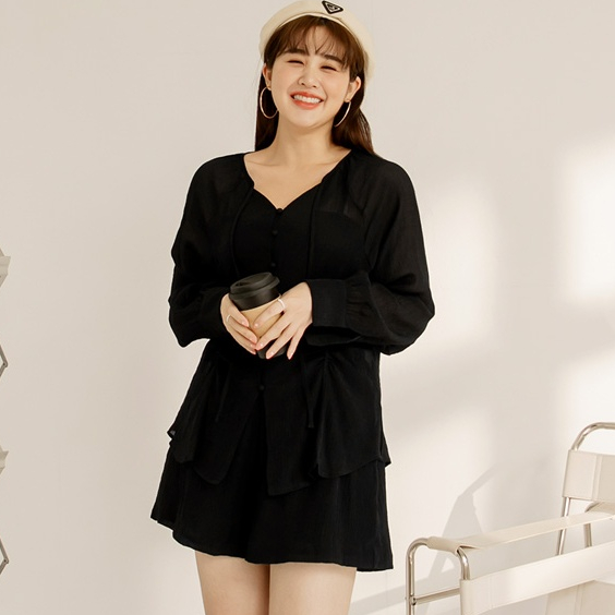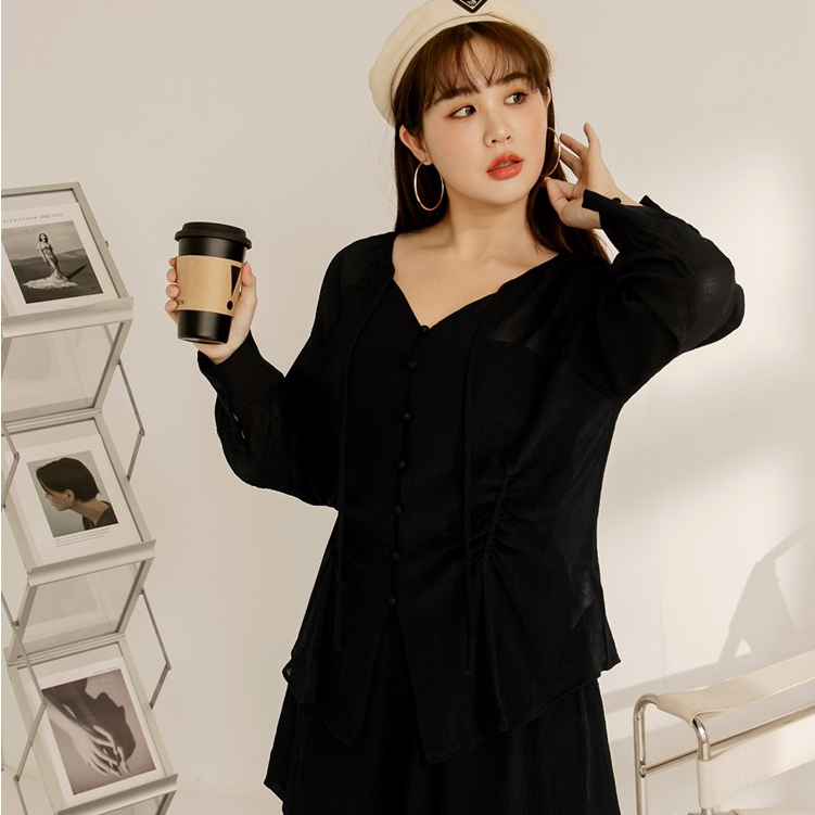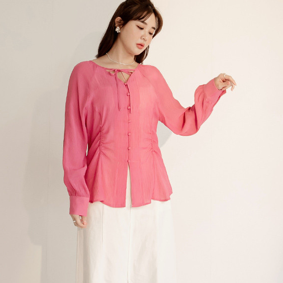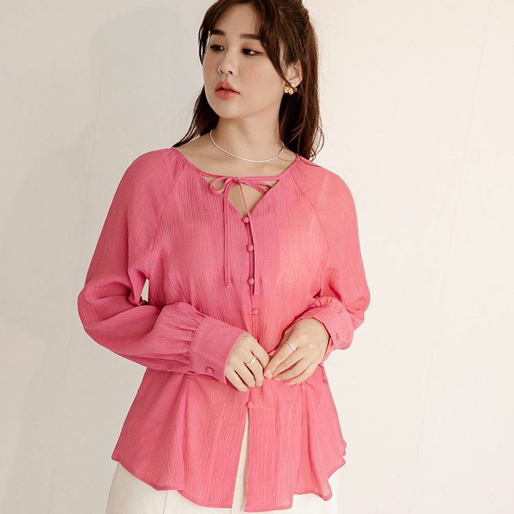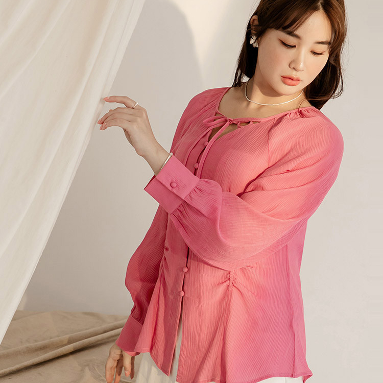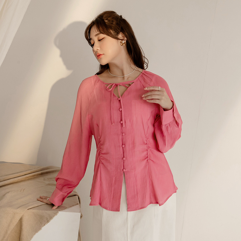 OB嚴選 雲朵自訂款-綁帶V領收腰排釦長袖上衣 《AB19619》大尺碼/女裝/現貨桃紅,XL|桃紅,2L|桃紅,3L|黑,XL|黑,2L|黑,3LT-shirtsOB嚴選官方旗艦店