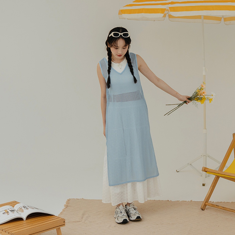 OB嚴選 涼感.抗UV假兩件腰綁帶冰河系防曬洋裝 《DA10029》大尺碼/現貨/女裝