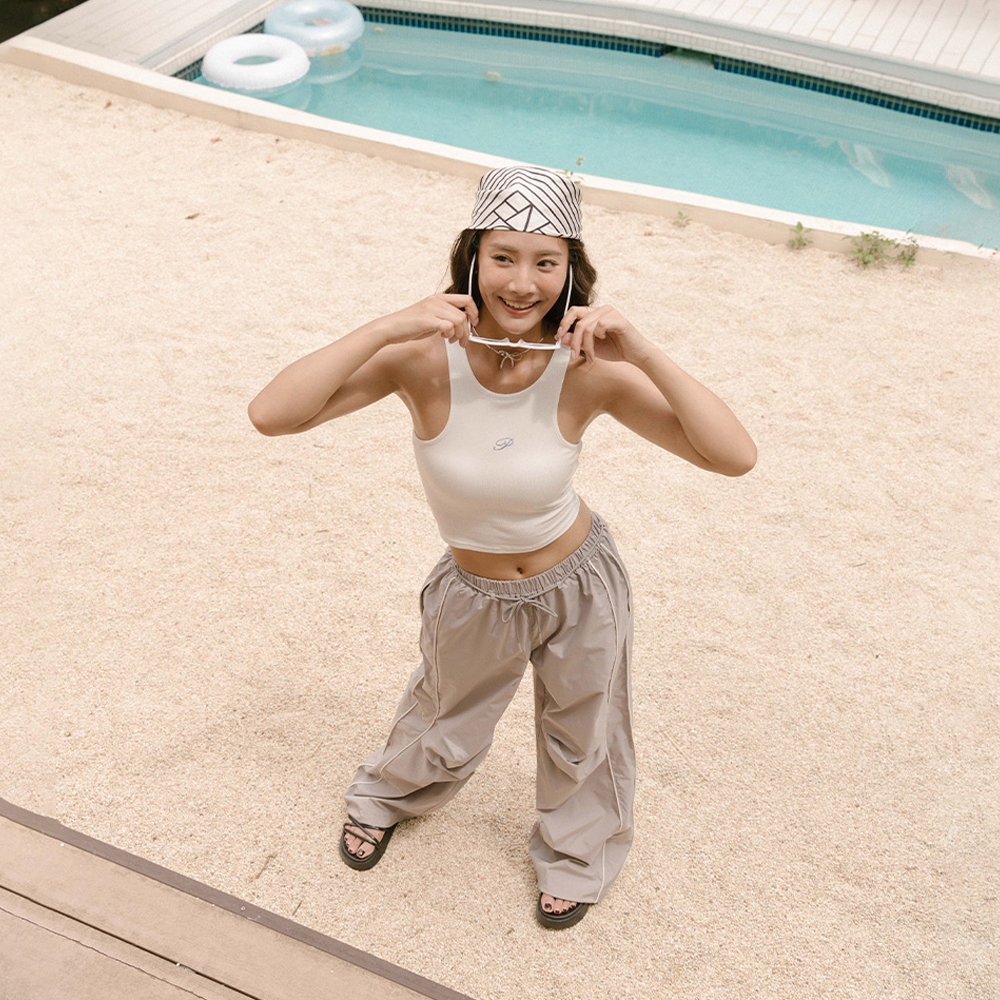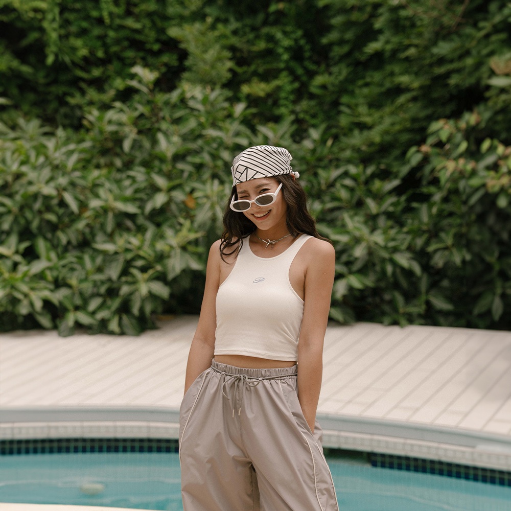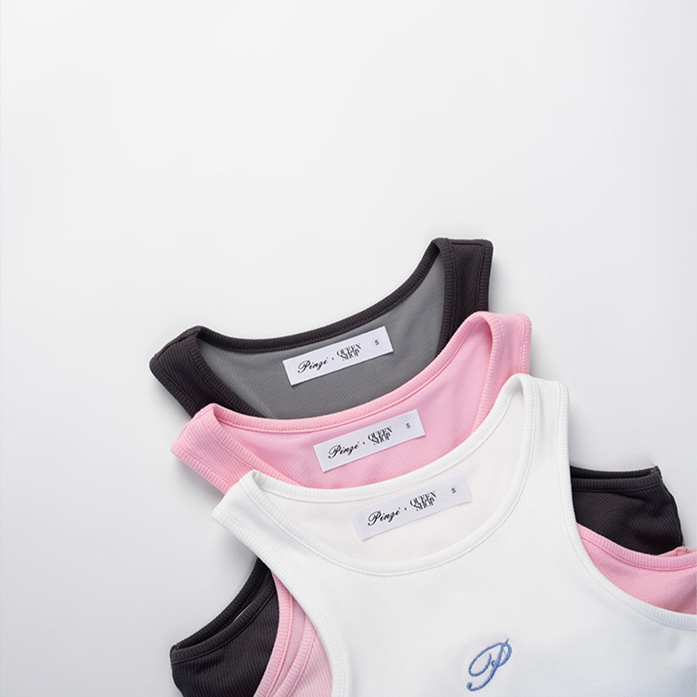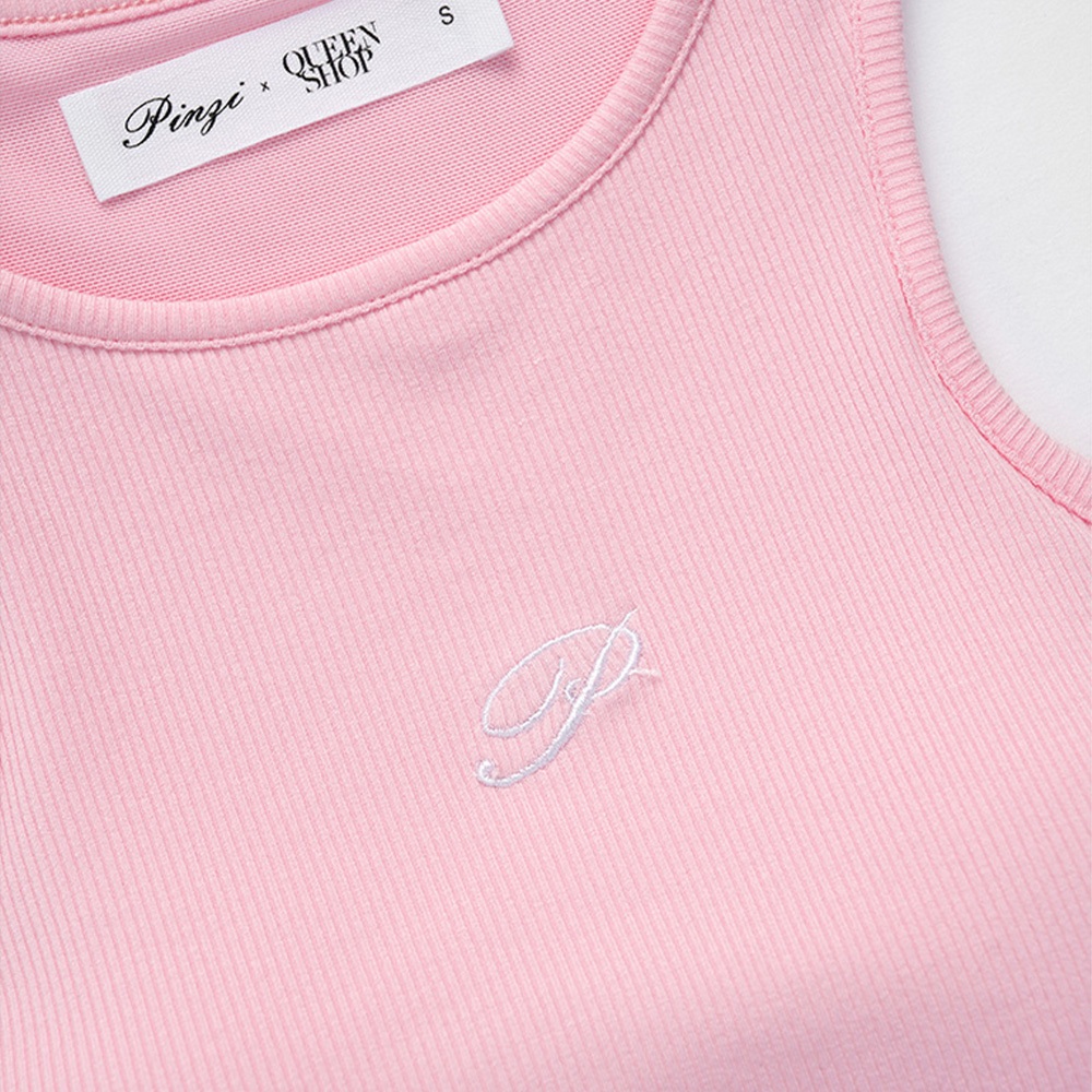 QUEENSHOP_ S 品子聯名 刺繡字附bra坑條削肩背心-白S/M/L 現+預 【01041933】白S|白M|白LTanks & CamisolesQUEENSHOP