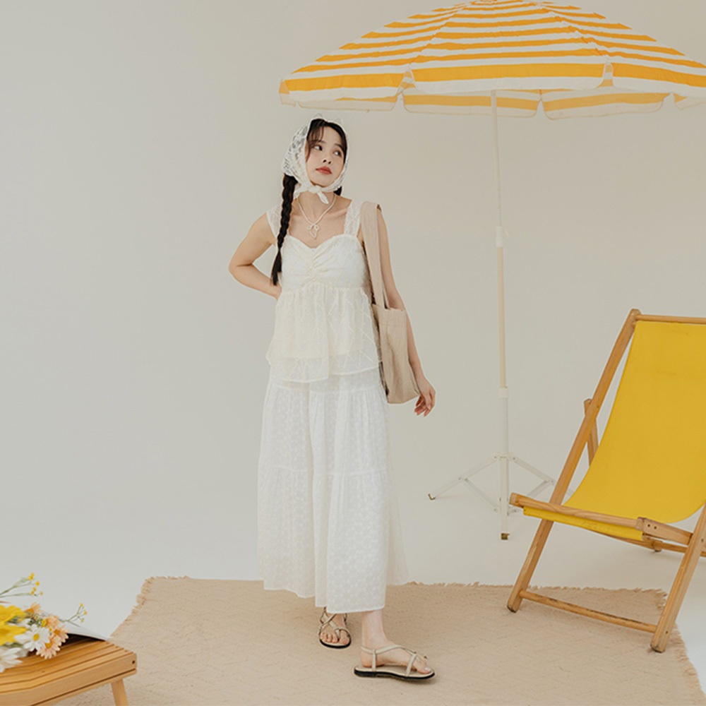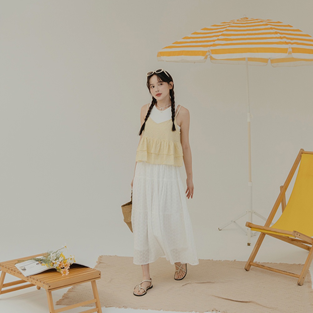QUEENSHOP_ S 女裝 滿版花花刺繡蛋糕長裙 現+預 【03021624】依賣場QUEENSHOP