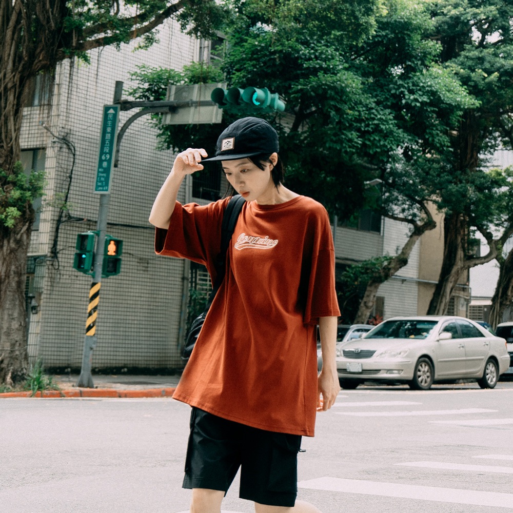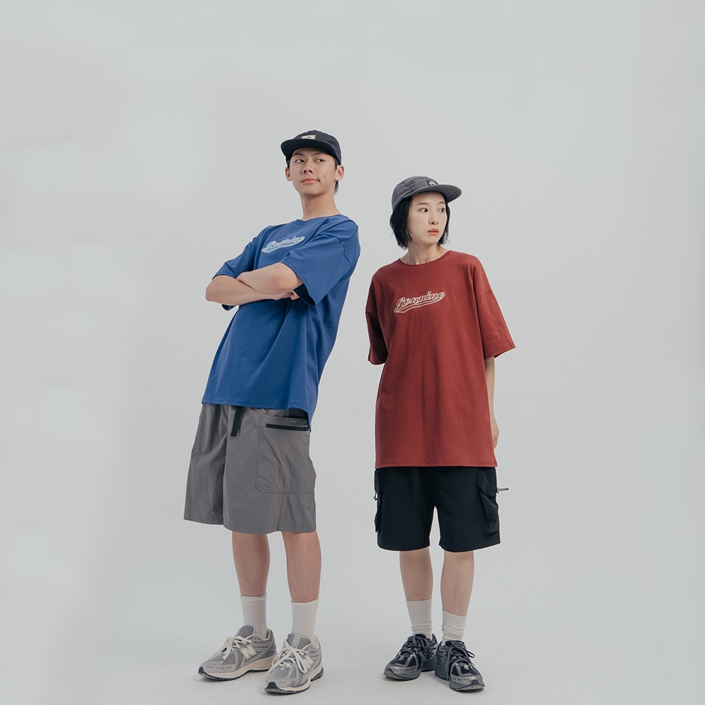 QUEENSHOP_ S 情侶裝 戶外 短袖 撞色英文刺繡貼布寬版上衣 三色售 現+預 【01190209】紅1|紅2|藍1|藍2|深灰1|深灰2T-shirtsQUEENSHOP