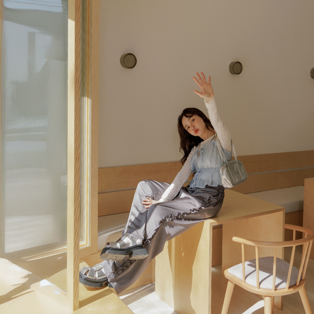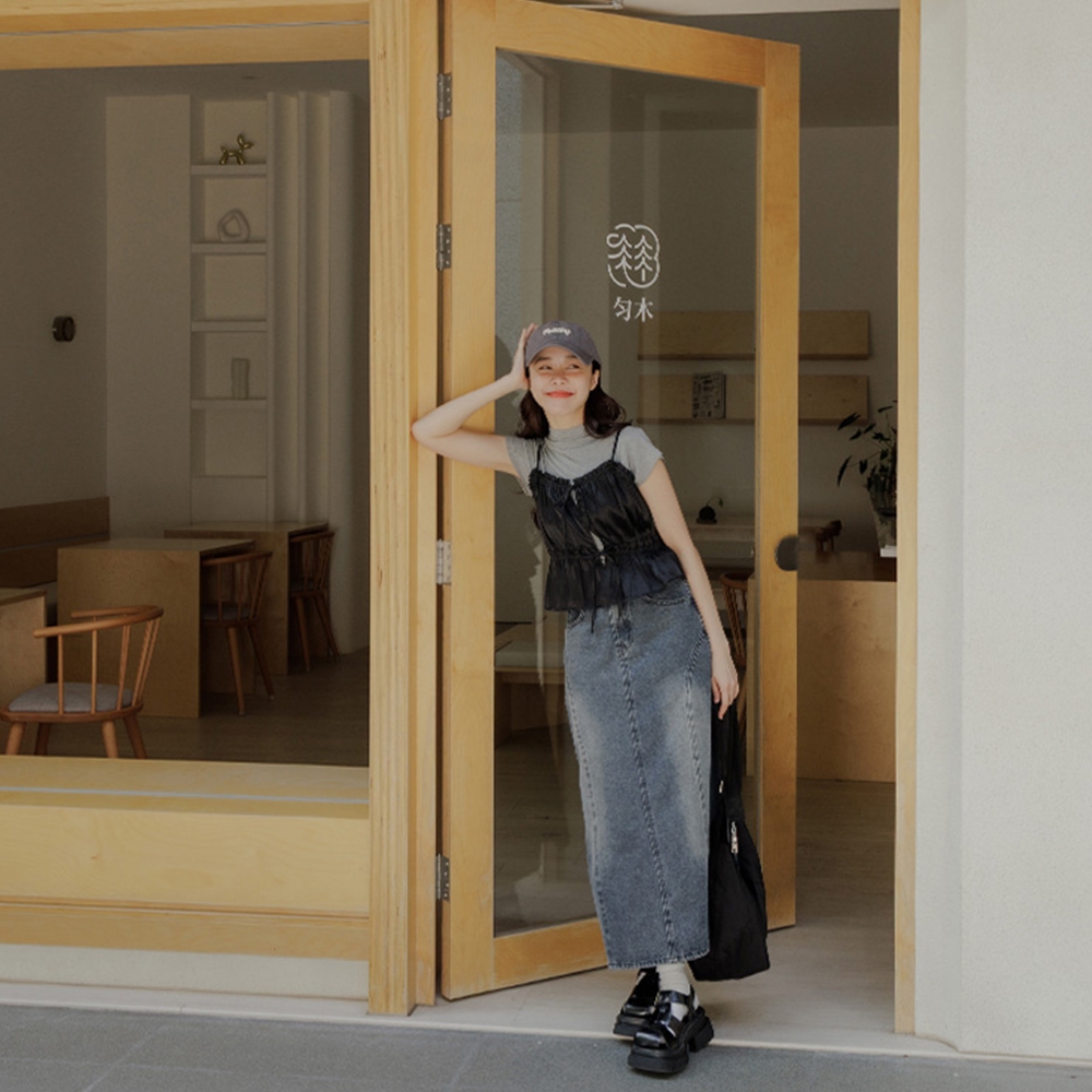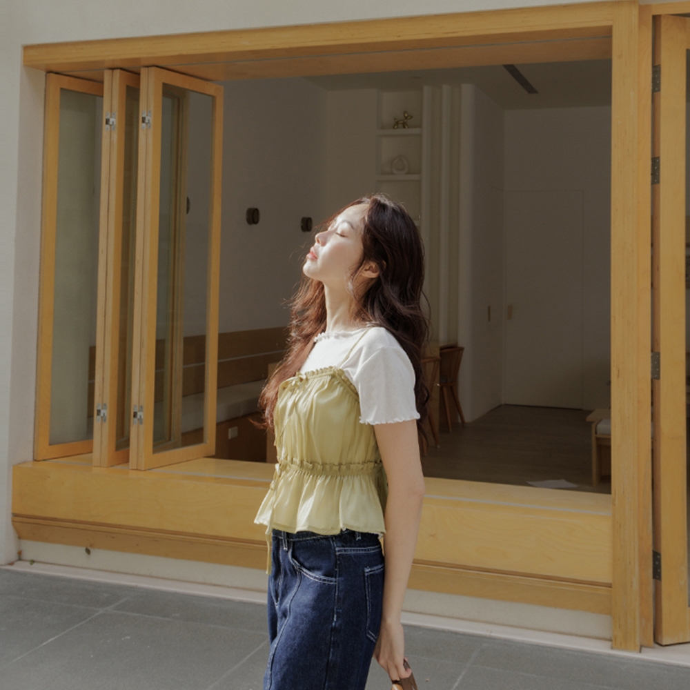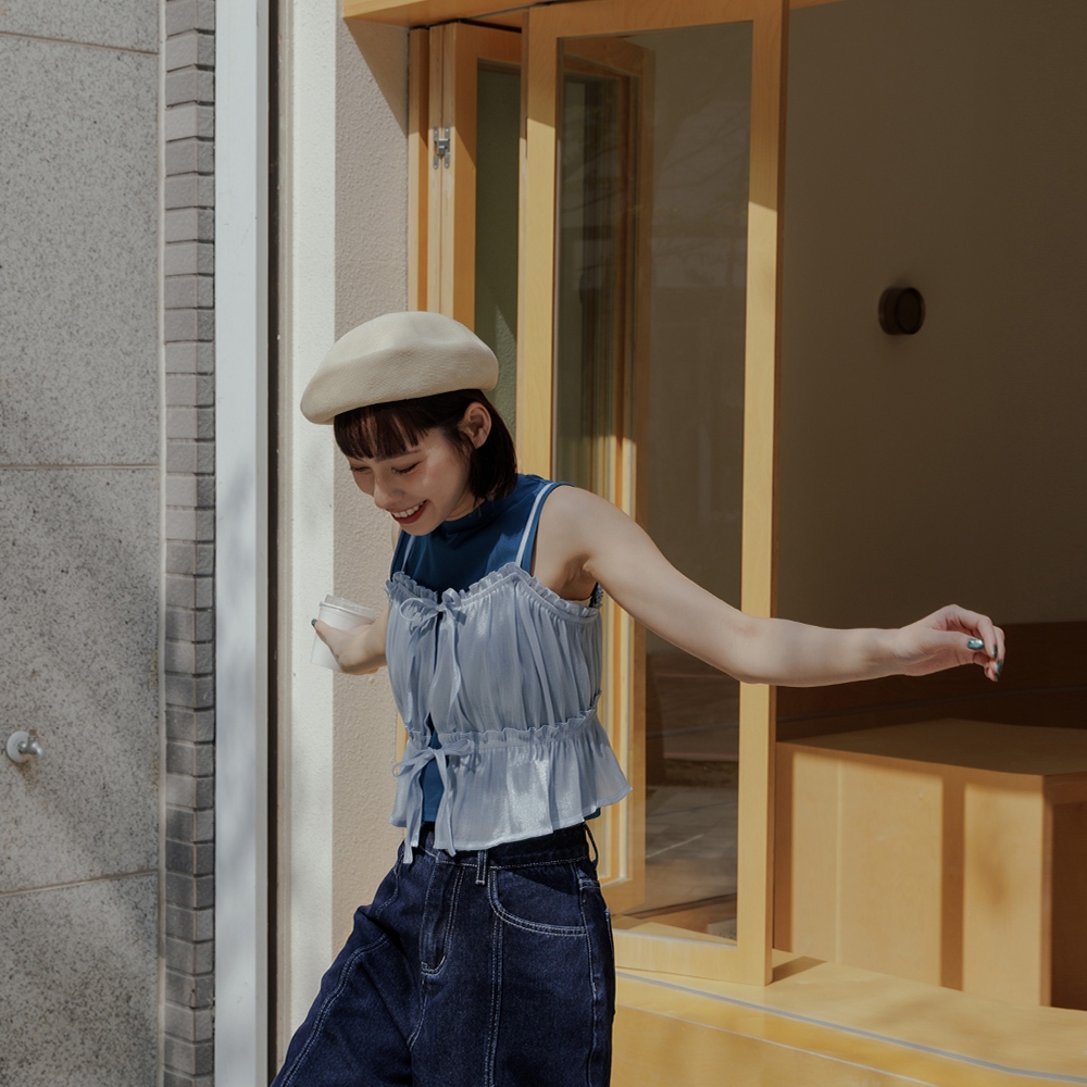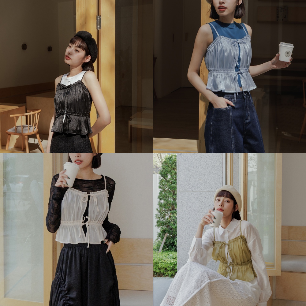 QUEENSHOP_ S 女裝 光澤荷葉邊綁帶細肩罩衫背心 四色售 現+預 【01098869】黑|藍|綠|杏OthersQUEENSHOP