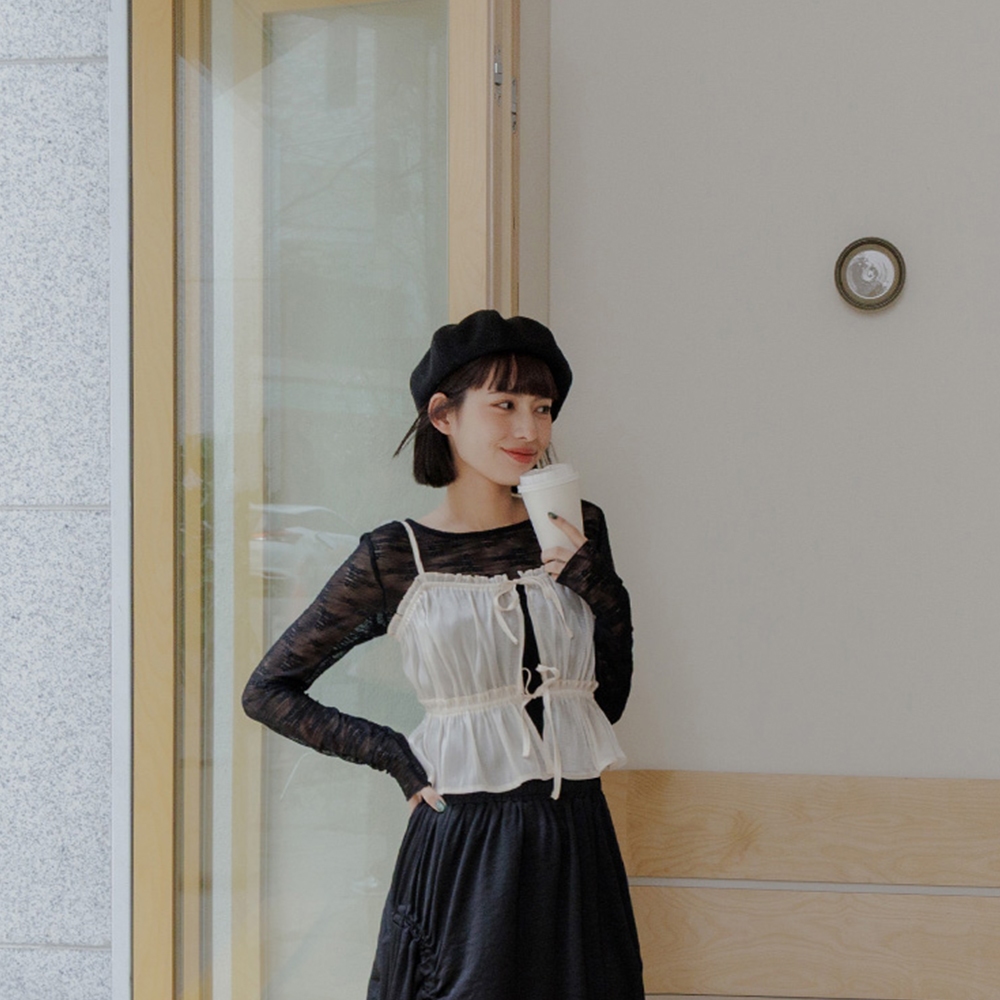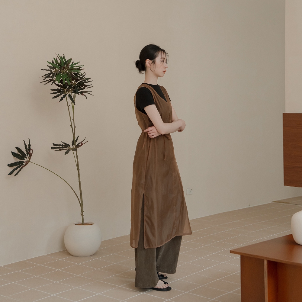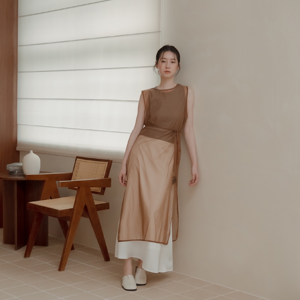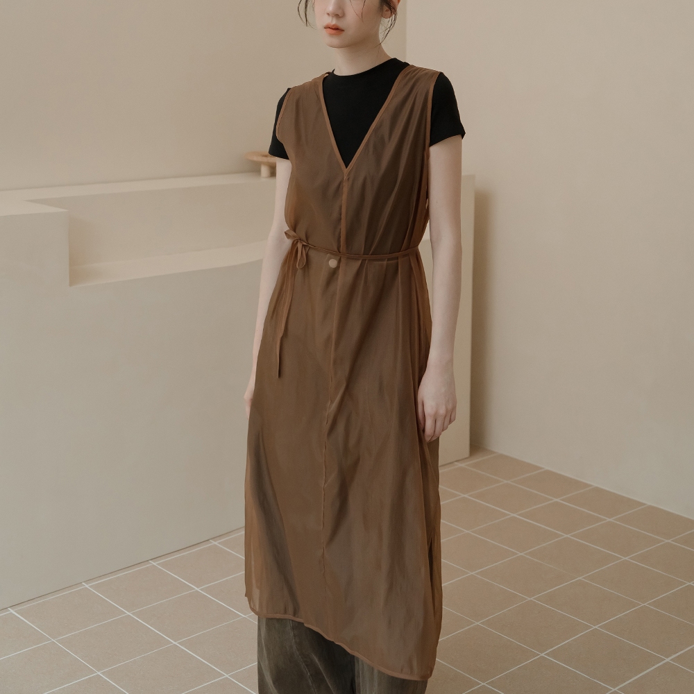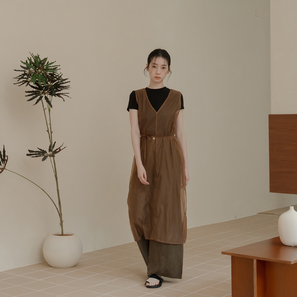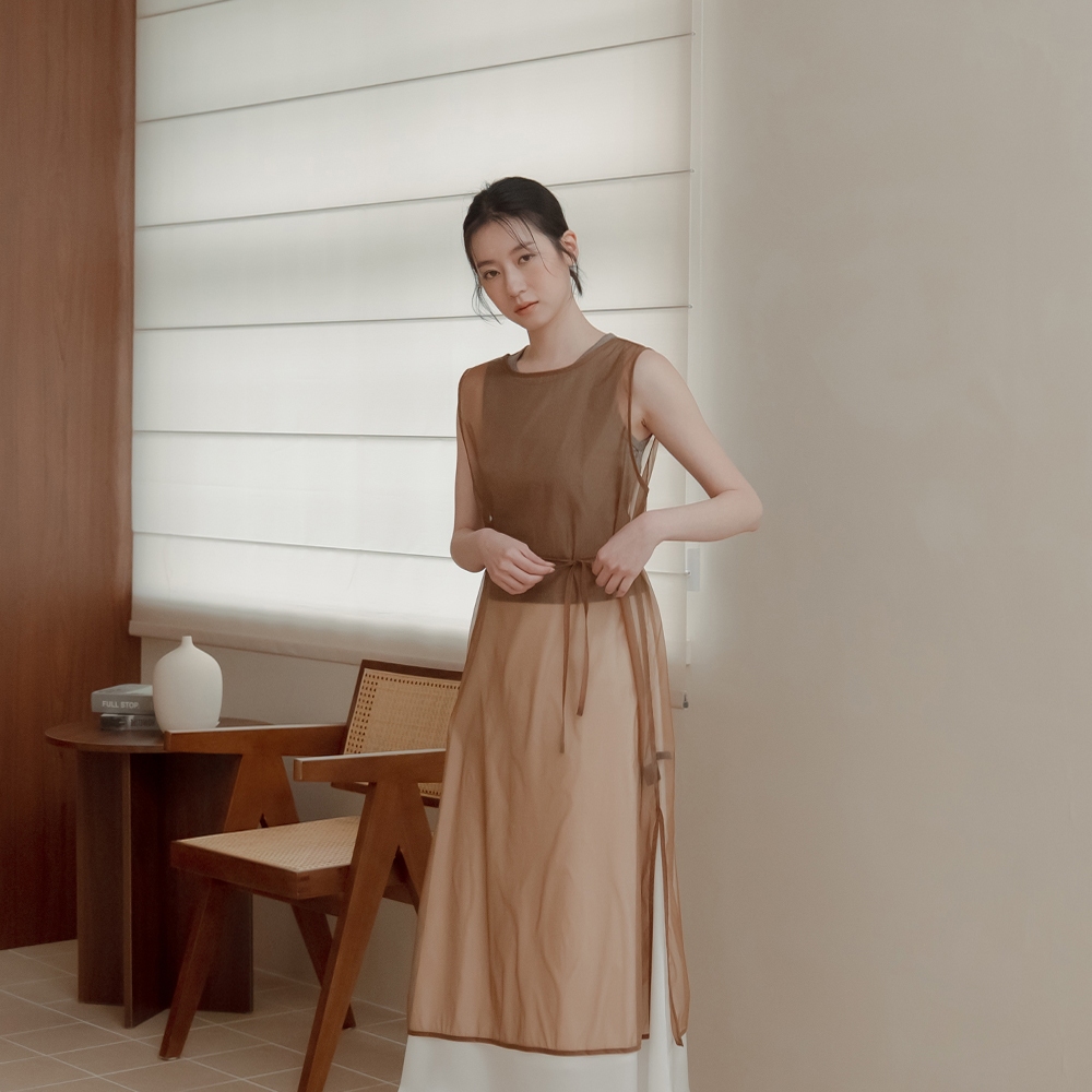 QUEENSHOP_ S 女裝 透膚附綁帶兩穿罩衫背心-咖啡 現+預 【01099000】咖啡OthersQUEENSHOP