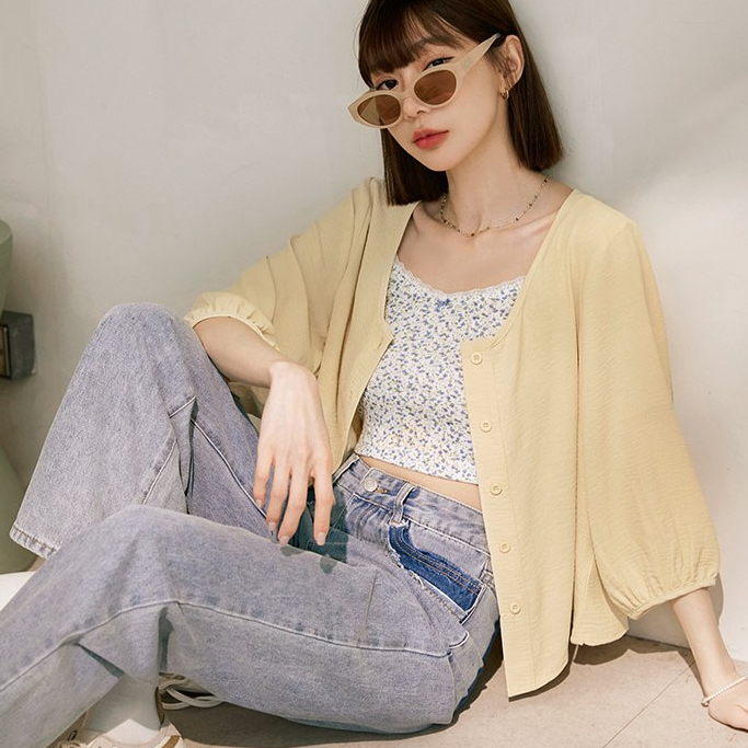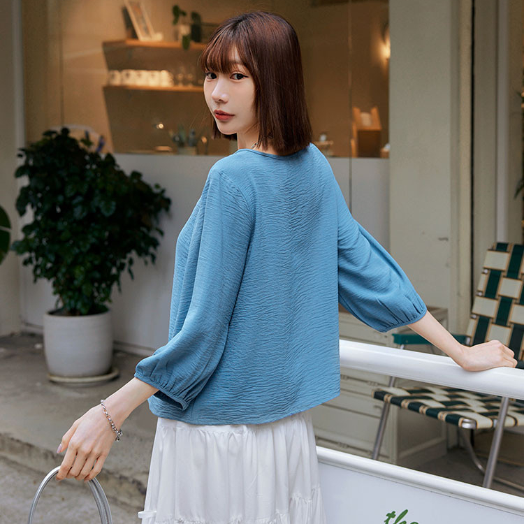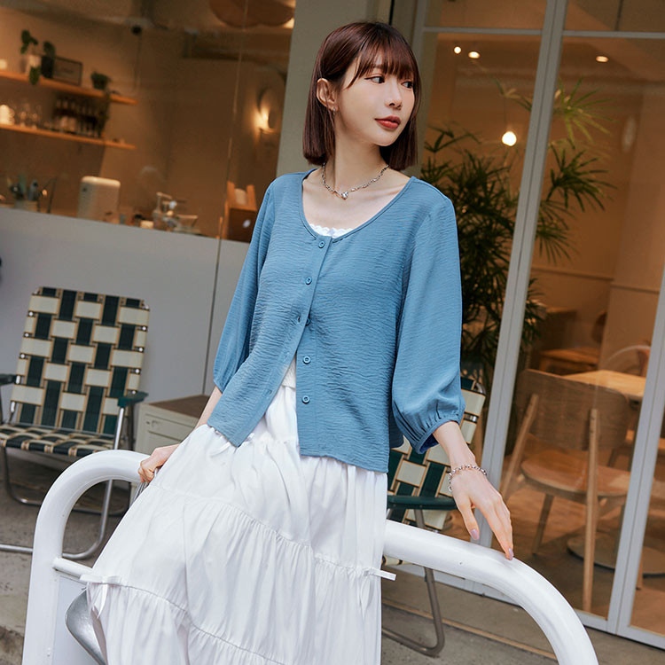 OB嚴選 圓領皺感紋理七分開襟罩衫上衣 《EA3761》大尺碼/女裝/現貨白,M|白,L|白,XL|白,2L|白,3L|深藍,M|深藍,L|深藍,XL|深藍,2L|深藍,3L|黃,M|黃,L|黃,XL|黃,2L|黃,3L|藍,M|藍,L|藍,XL|藍,2L|藍,3LOthersOB嚴選官方旗艦店