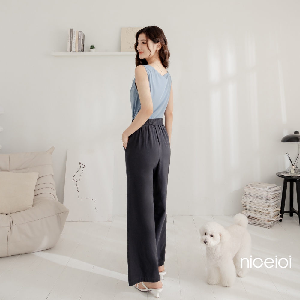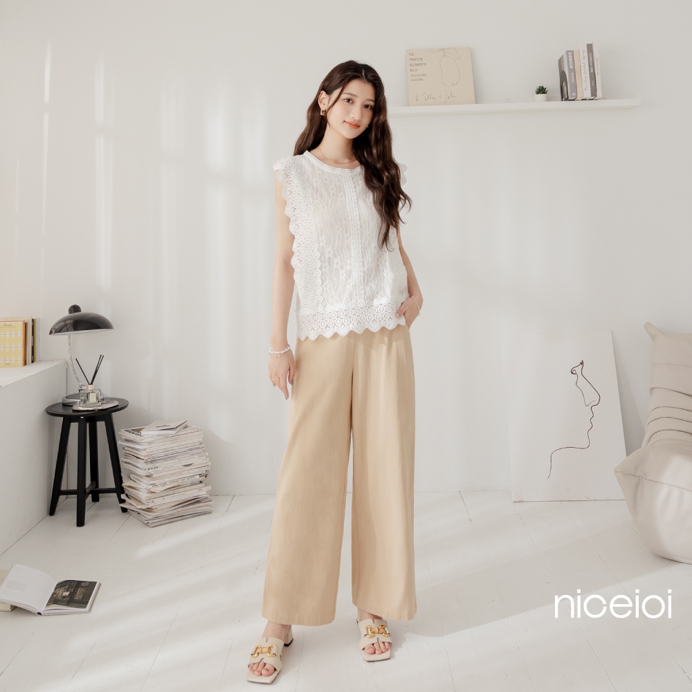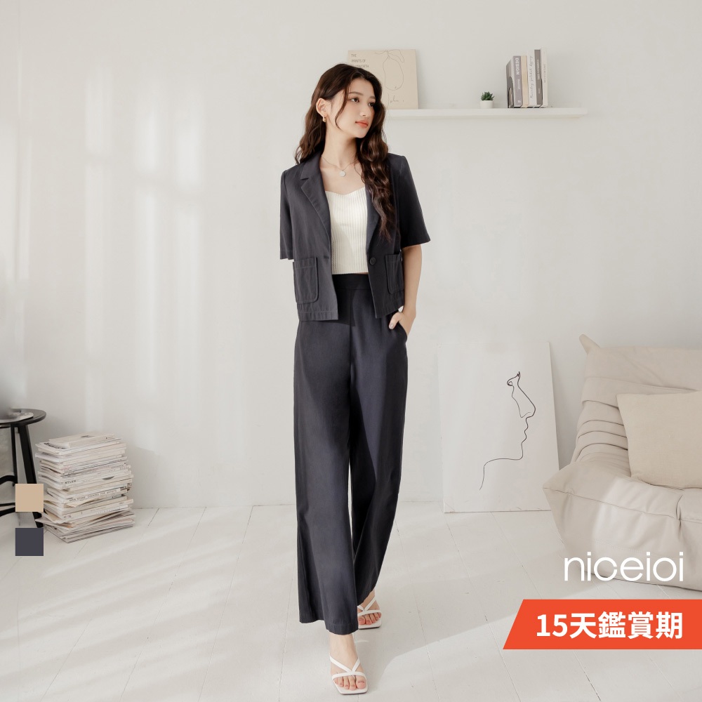 niceioi【特惠】率性後鬆緊斜紋棉西裝寬褲 (共2色) 女裝深藍,XL|卡其,S|卡其,M|卡其,L|卡其,XL|深藍,S|深藍,M|深藍,LPantsniceioi 官方旗艦店