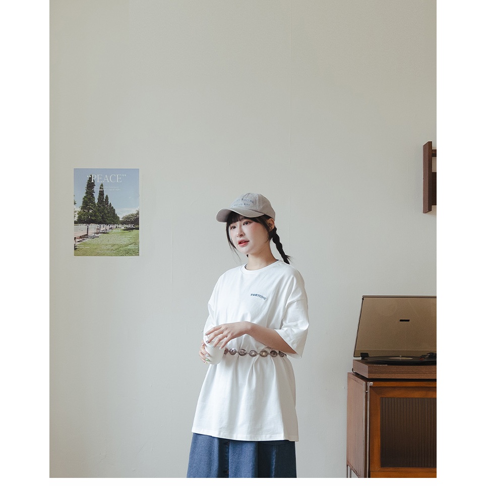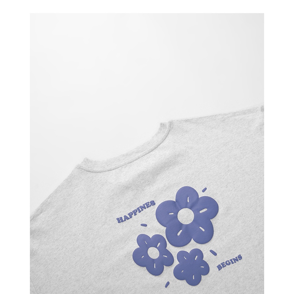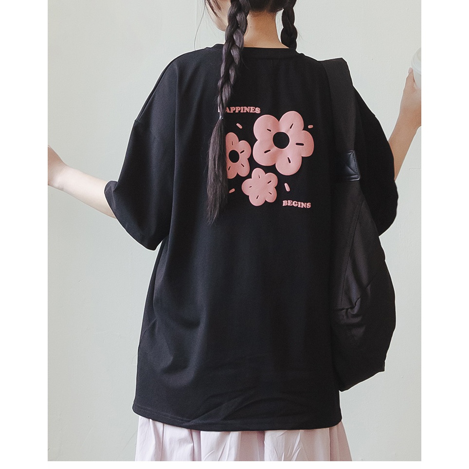 QUEENSHOP_ S 女裝 短袖 花花立體刺繡印圖寬版上衣 三色售 現+預 【01190230】黑|灰|米白T-shirtsQUEENSHOP