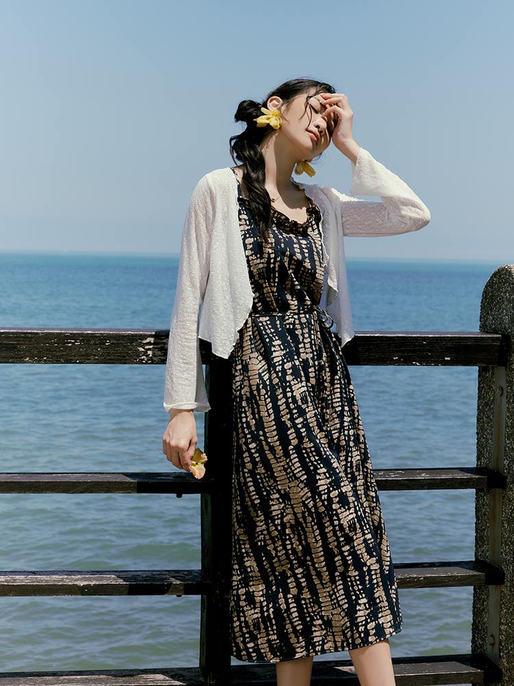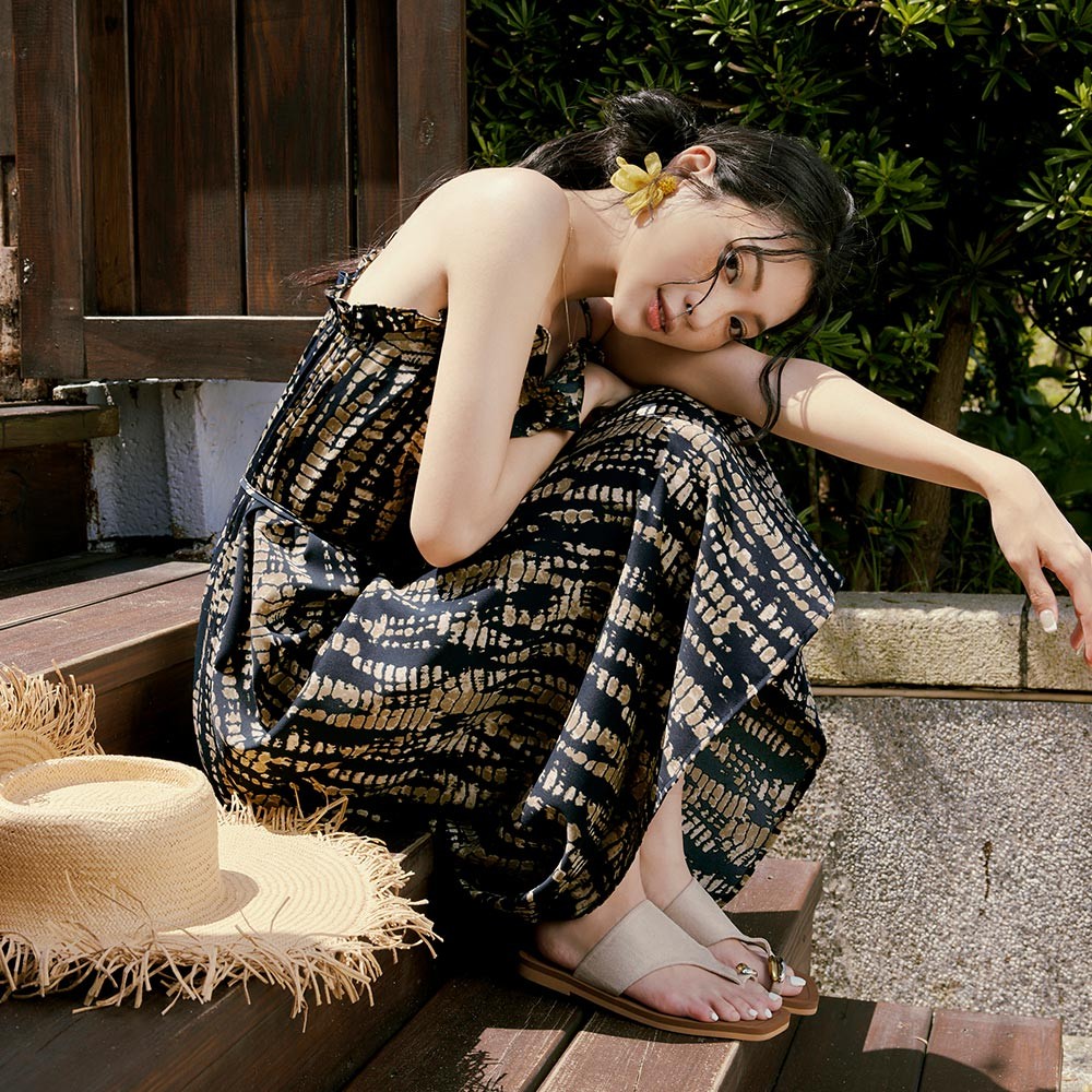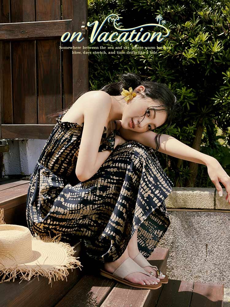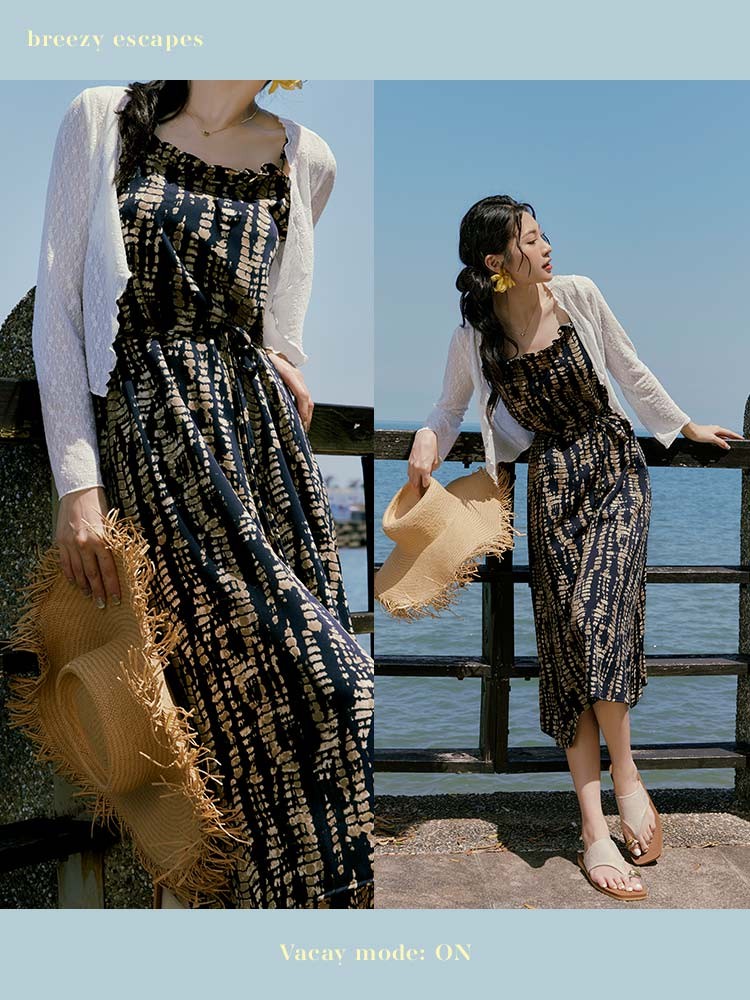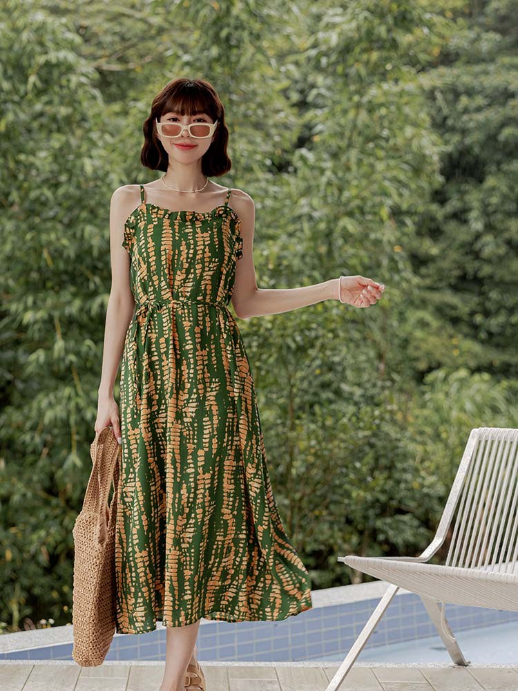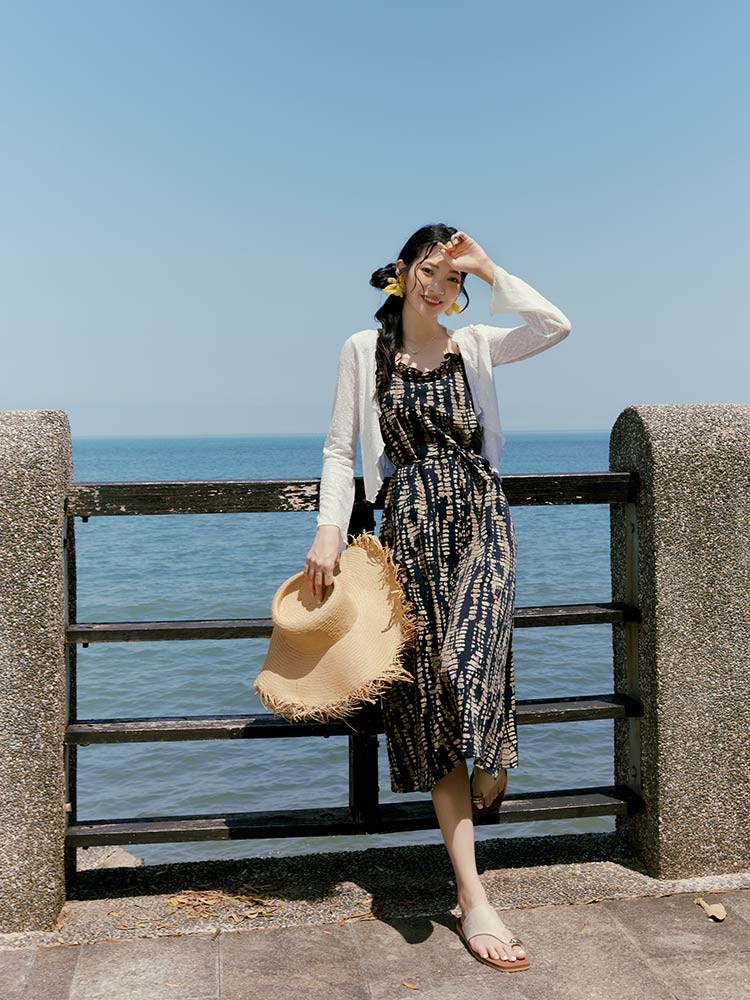 OB嚴選 圖騰暈染滾邊寬鬆細肩洋裝(附綁帶) 《DA10447》深藍,S|深藍,M|深藍,L|深藍,XL|深藍,2L|深藍,3L|深藍,4L|綠,S|綠,M|綠,L|綠,XL|綠,2L|綠,3L|綠,4LOB嚴選官方旗艦店