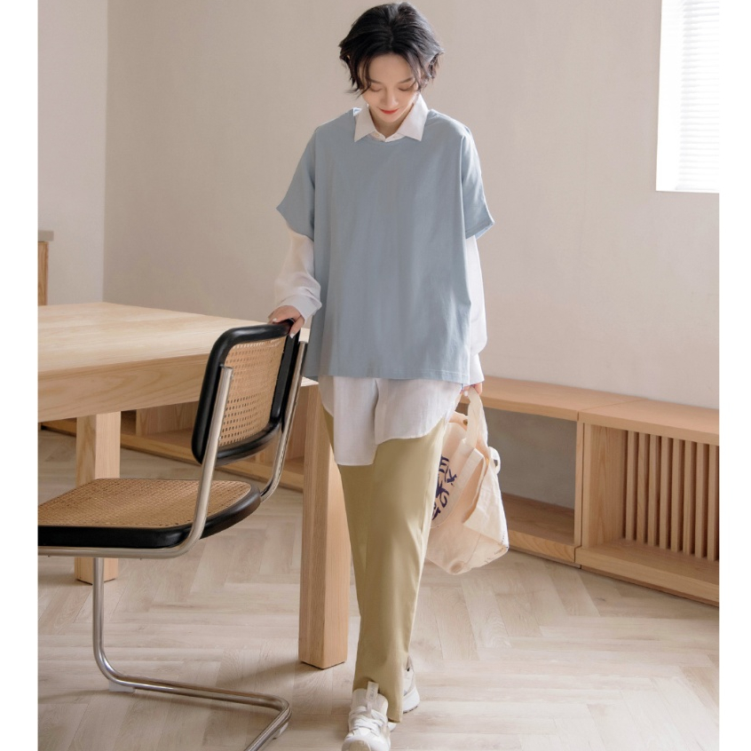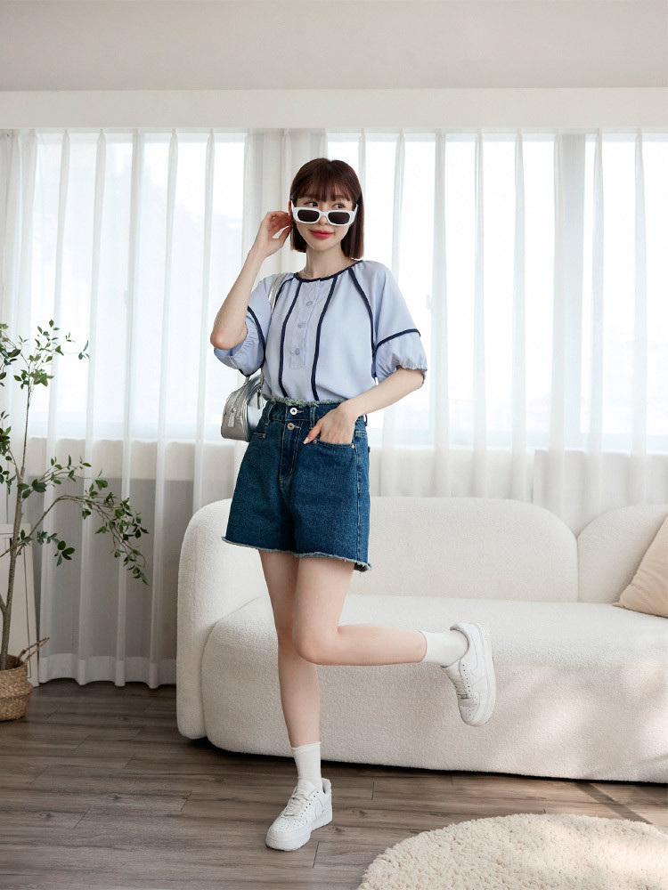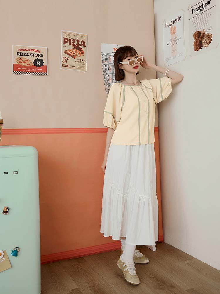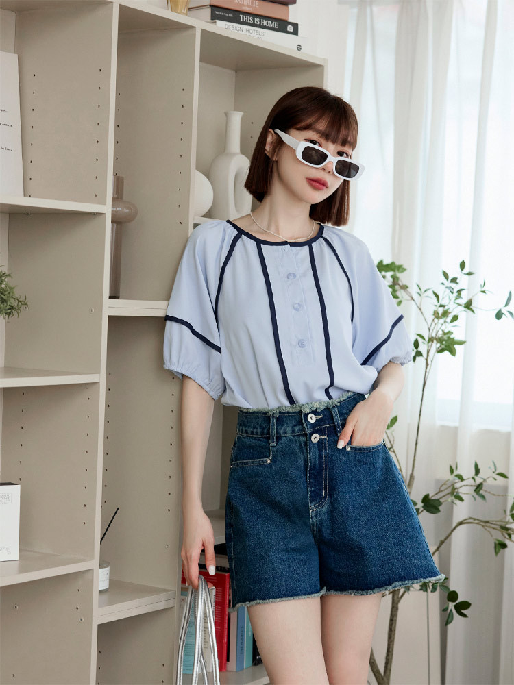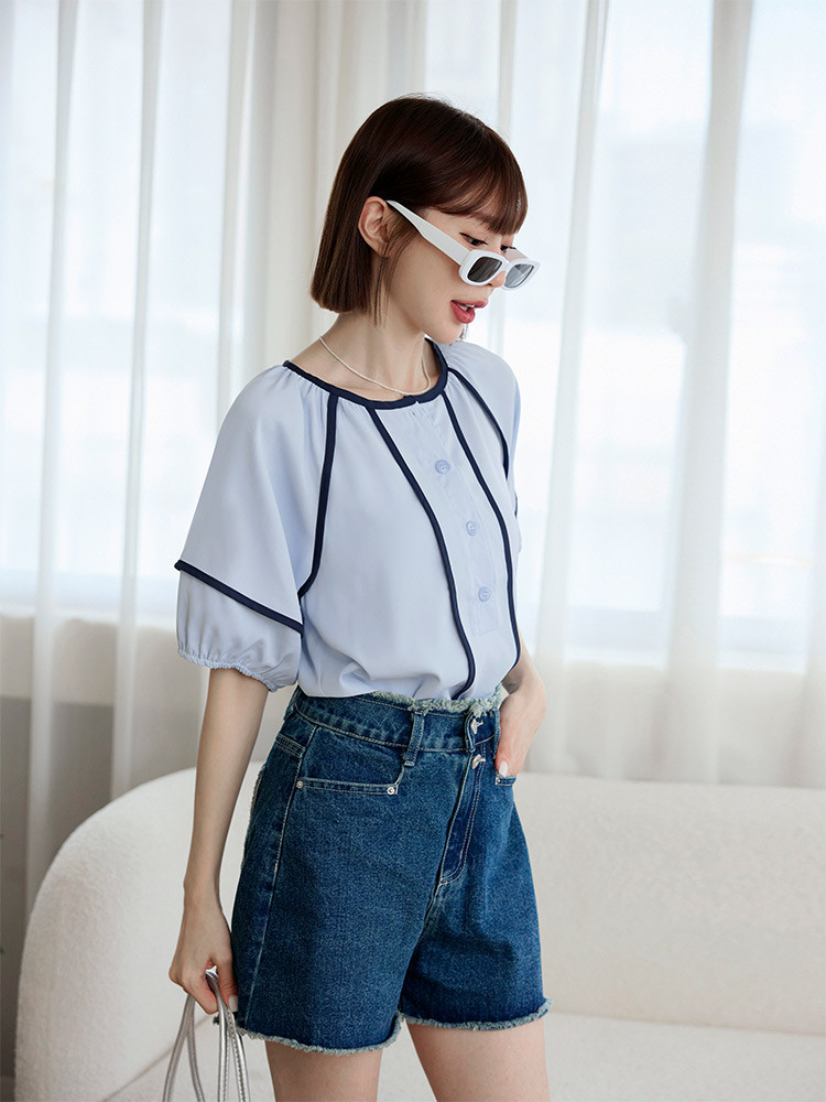 OB嚴選 圓領撞色滾邊半開襟泡泡袖上衣 《AB20353》杏,S|杏,M|杏,L|杏,XL|杏,2L|杏,3L|淺水藍,S|淺水藍,M|淺水藍,L|淺水藍,XL|淺水藍,2L|淺水藍,3LT-shirtsOB嚴選官方旗艦店