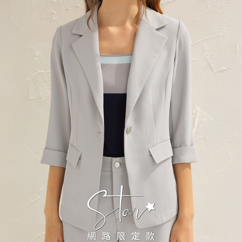 SO NICE 都會反褶袖口不易皺收腰七分袖西裝外套|黑/淺灰藍|STAR|都會時尚女裝【3254F002】淺灰藍,36(S)|淺灰藍,38(M)|淺灰藍,40(L)|黑,34(XS)|黑,38(M)|黑,42(XL)|淺灰藍,42(XL)|黑,36(S)|黑,40(L)|淺灰藍,34(XS)BlazersSO NICE 官方旗艦店