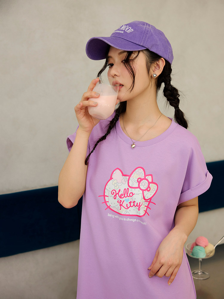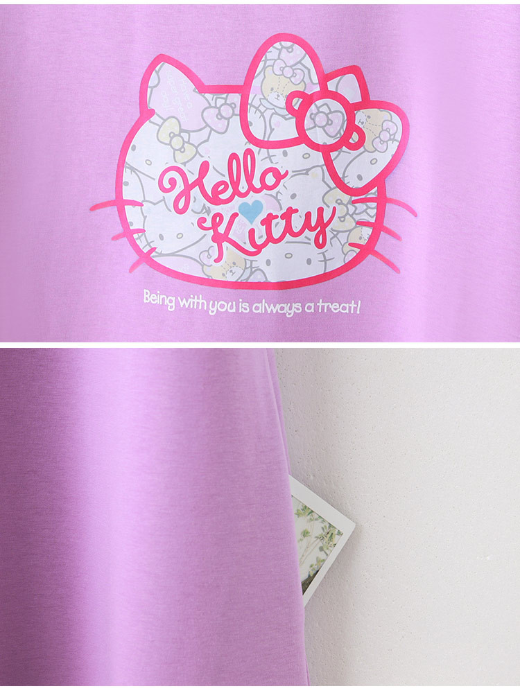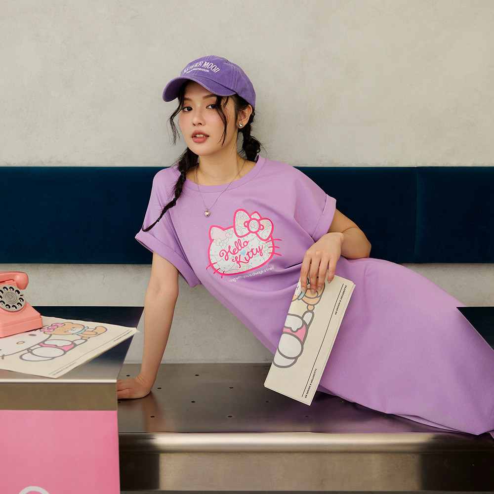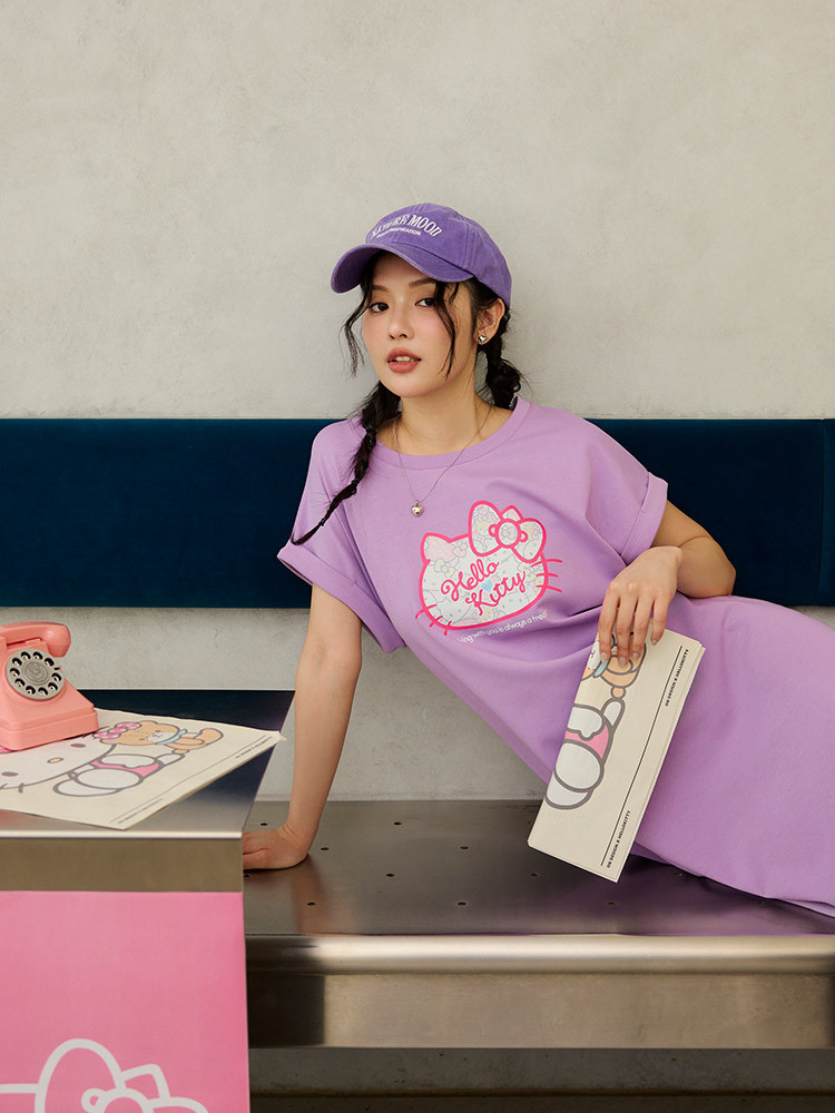 OB嚴選 KITTY 經典再現.造型印花短袖長洋裝 《IK0067》淺紫,F|淺紫,XL|淺紫,2L|淺紫,3LOB嚴選官方旗艦店