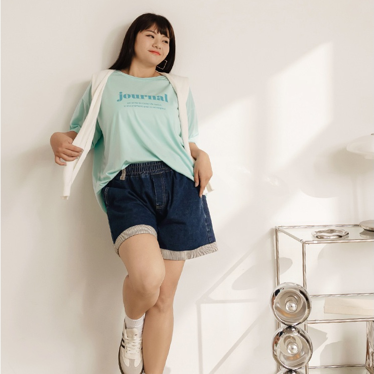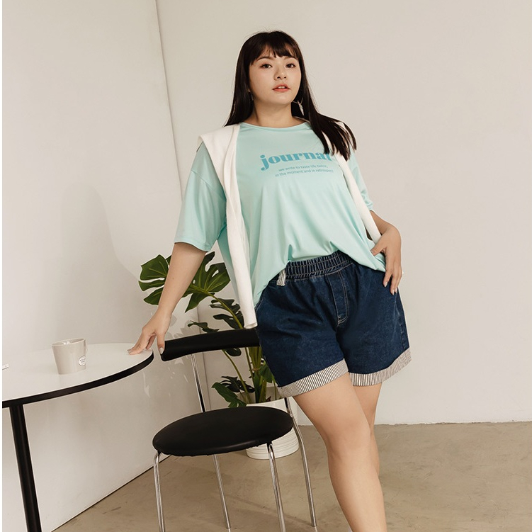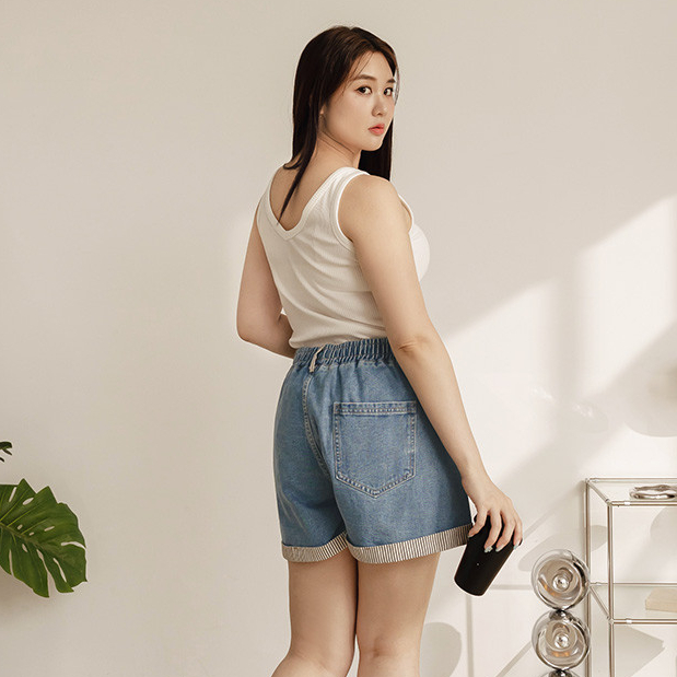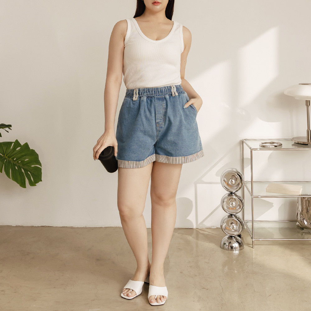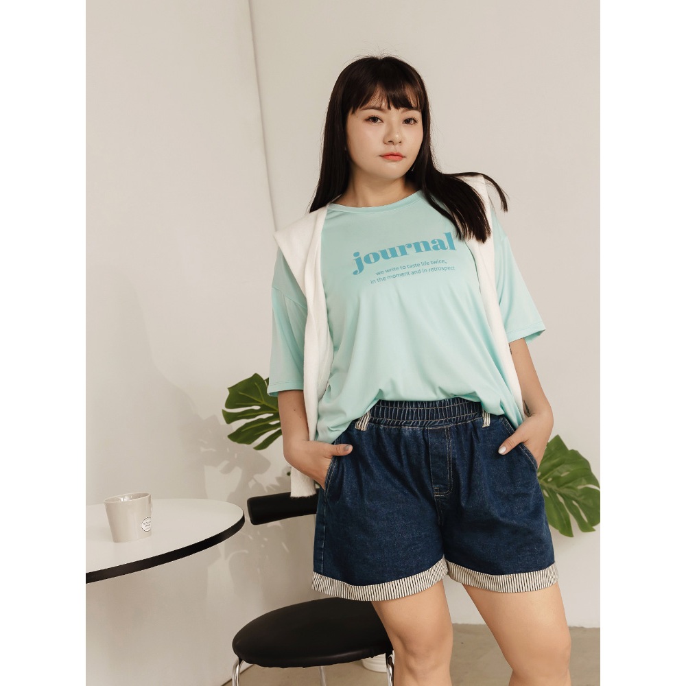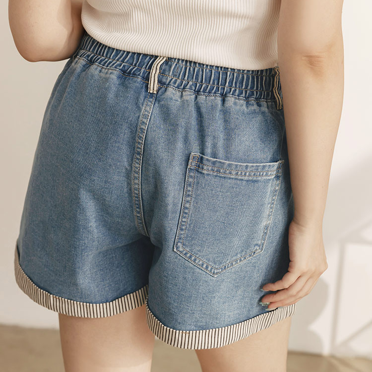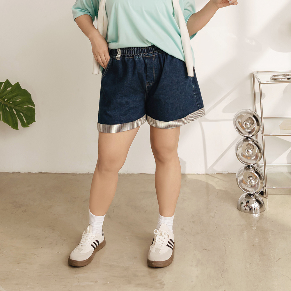 OB嚴選 雲朵自訂款-丹寧直條紋腰鬆緊反折短褲 《BA7464》大尺碼/女裝/現貨深藍,XL|深藍,2L|深藍,3L|丹寧藍,XL|丹寧藍,2L|丹寧藍,3LShortsOB嚴選官方旗艦店