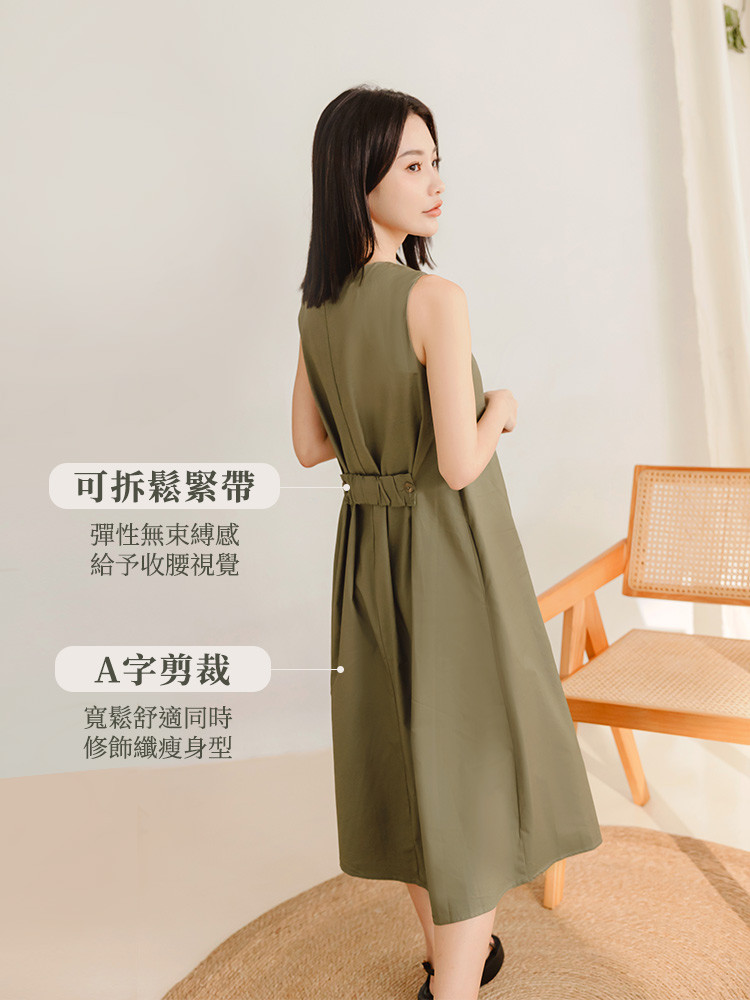 OB嚴選 懶人穿搭.高含棉寬版收腰無袖長洋裝 《DA7543》軍綠,S|軍綠,M|軍綠,L|軍綠,XL|軍綠,2L|軍綠,3L|藍綠,S|藍綠,M|藍綠,L|藍綠,XL|藍綠,2L|藍綠,3LOB嚴選官方旗艦店