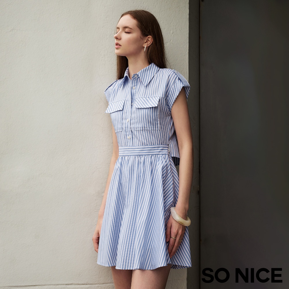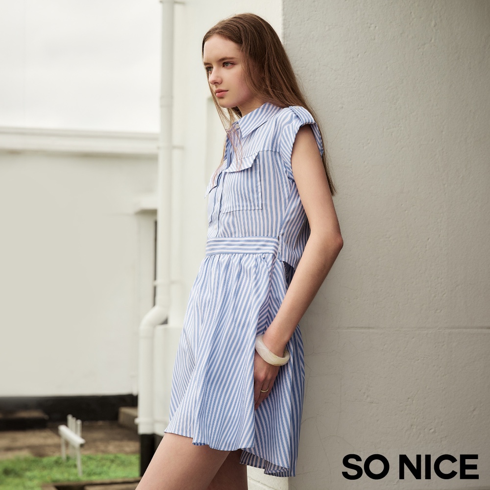 SO NICE【特惠】條紋反折袖收腰鏤空襯衫布洋裝|都會時尚女裝【75444001】藍,42(XL)|藍,34(XS)|藍,36(S)|藍,38(M)|藍,40(L)SO NICE 官方旗艦店