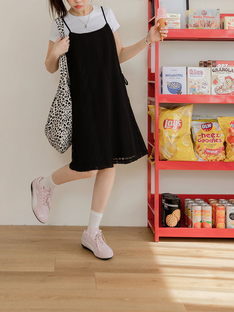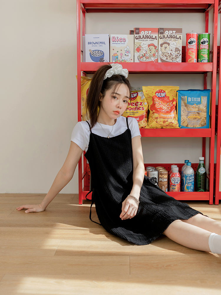 OB嚴選 鏤空編織側綁帶細肩帶短洋裝 《DA10550》杏,M|杏,L|杏,XL|杏,2L|杏,3L|黑,M|黑,L|黑,XL|黑,2L|黑,3LOB嚴選官方旗艦店