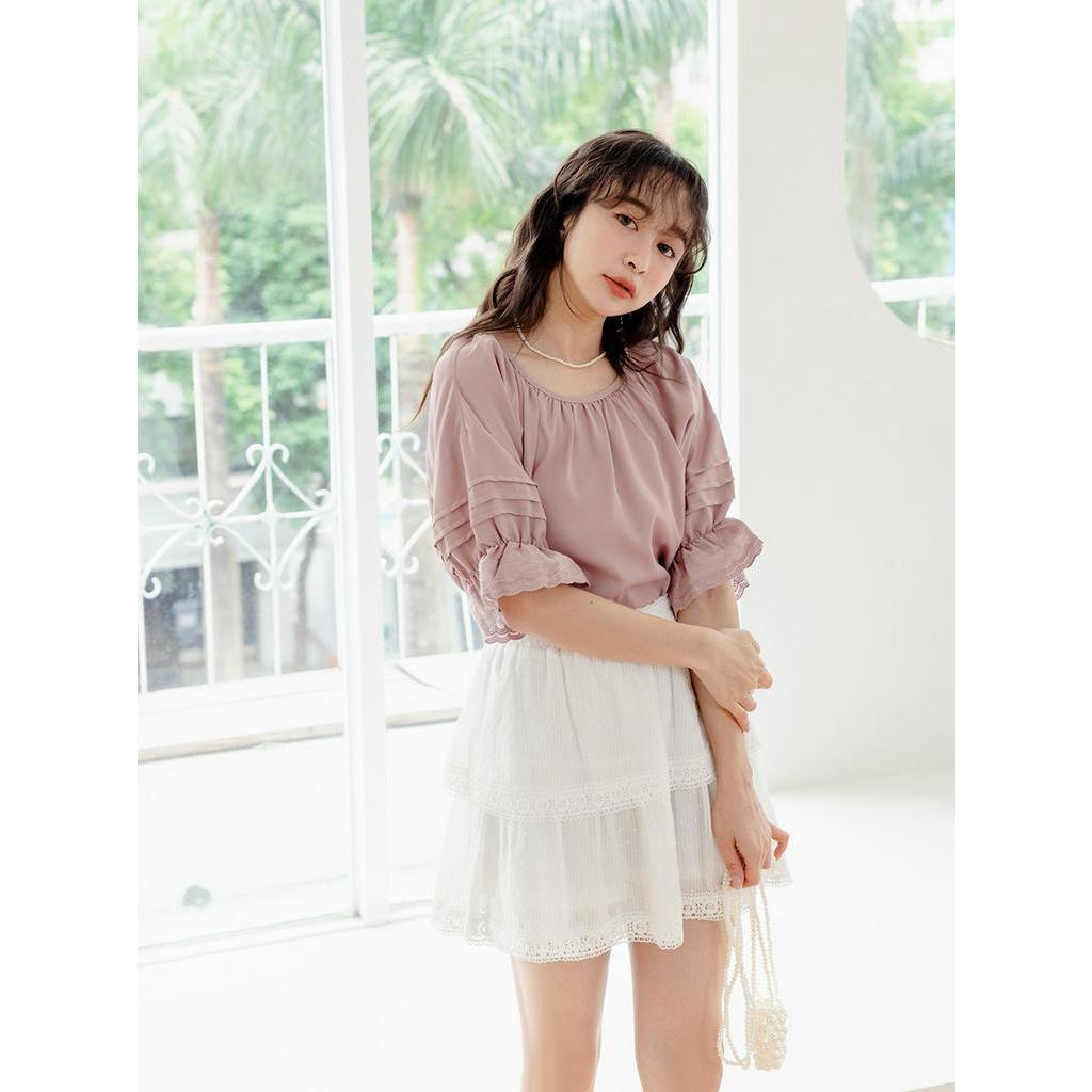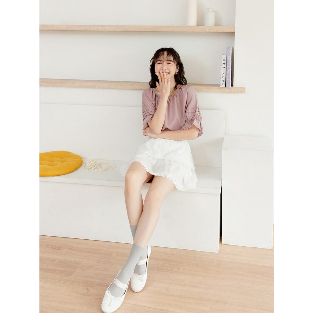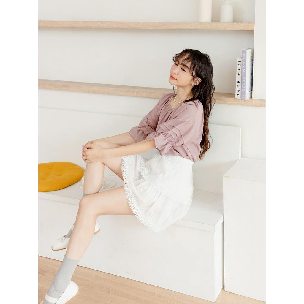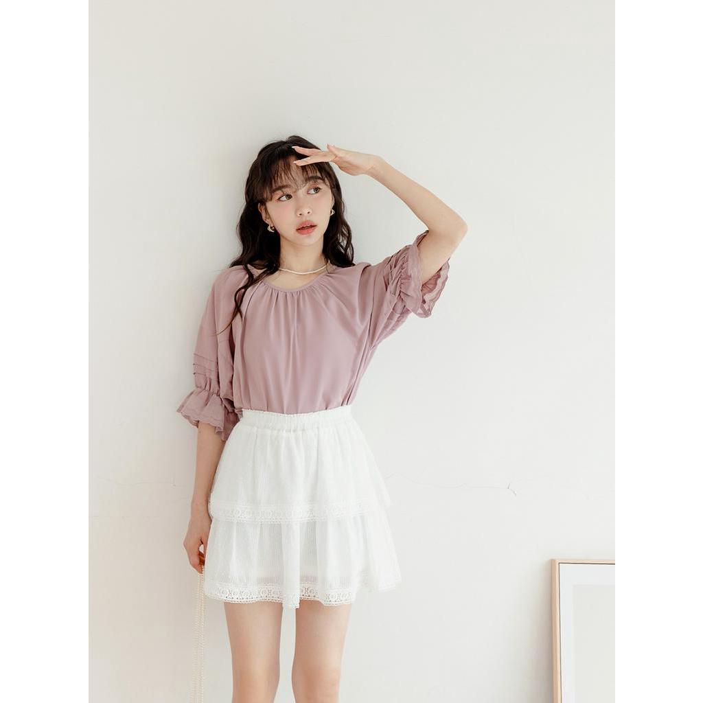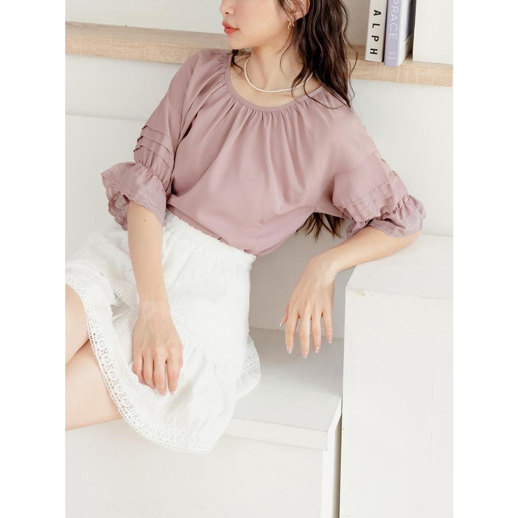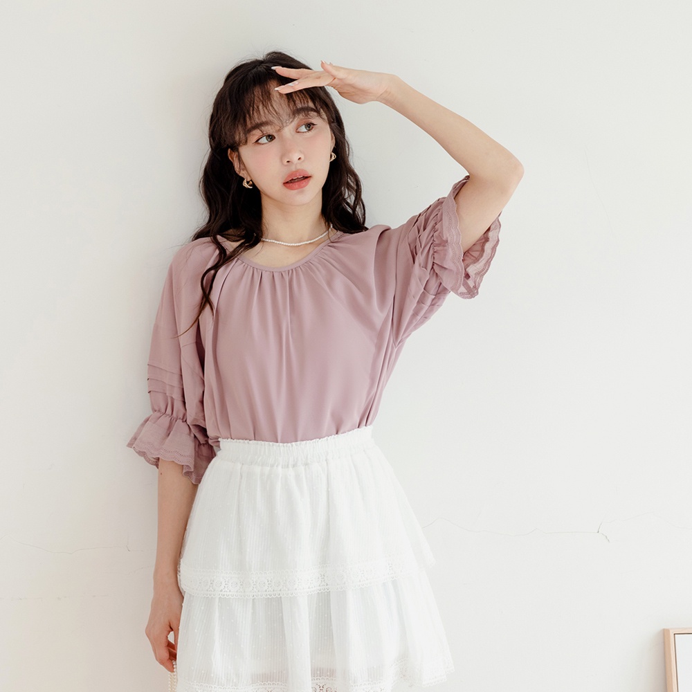 OB嚴選 雪紡車褶蕾絲拋袖上衣 《AB18497》大尺碼/現貨/女裝杏,S|杏,XL|杏,2L|杏,3L|灰粉紫,S|灰粉紫,M|灰粉紫,XL|杏,M|杏,L|灰粉紫,L|灰粉紫,2L|灰粉紫,3LT-shirtsOB嚴選官方旗艦店