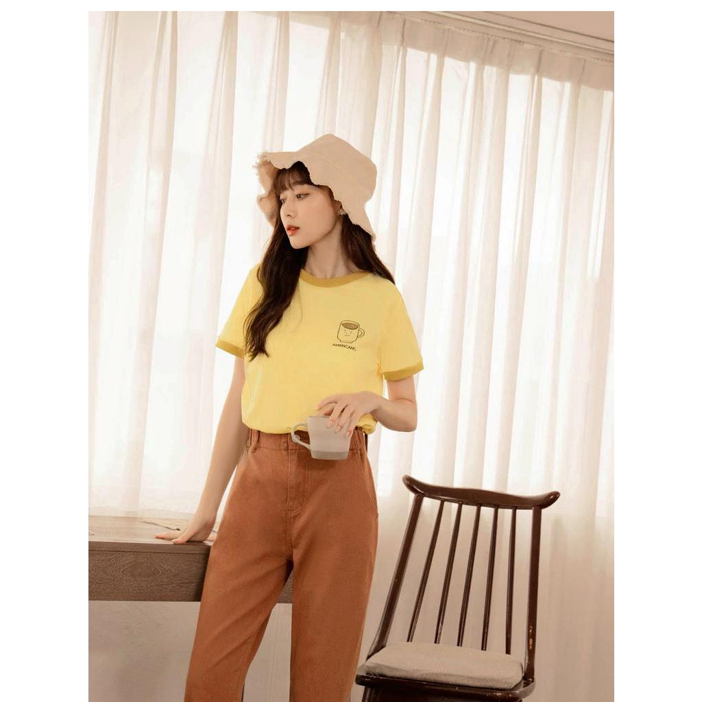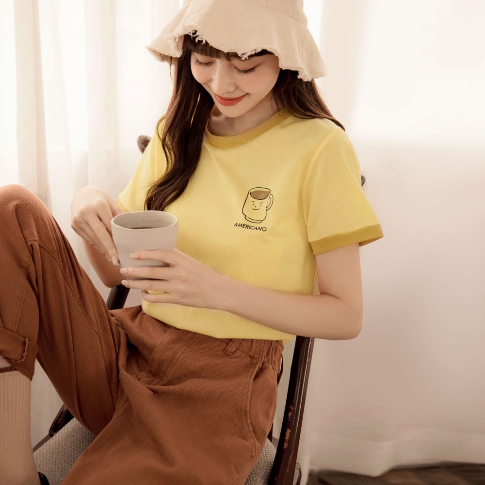 OB嚴選 咖啡廳家族.圓領配色美式先生印花短T 《KG1282》大尺碼/現貨/女裝灰粉,S|灰粉,L|灰粉,2L|橙黃,L|橙黃,3L|灰粉,M|灰粉,XL|灰粉,3L|橙黃,S|橙黃,M|橙黃,XL|橙黃,2LT-shirtsOB嚴選官方旗艦店