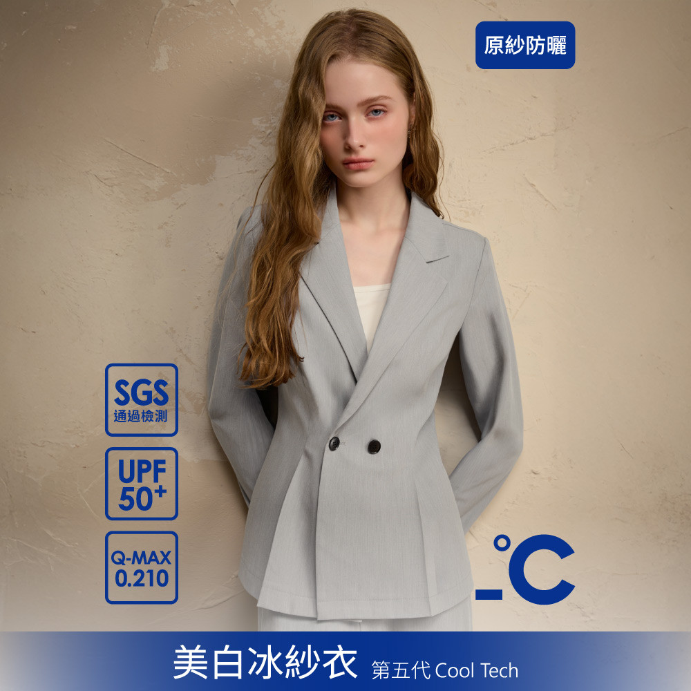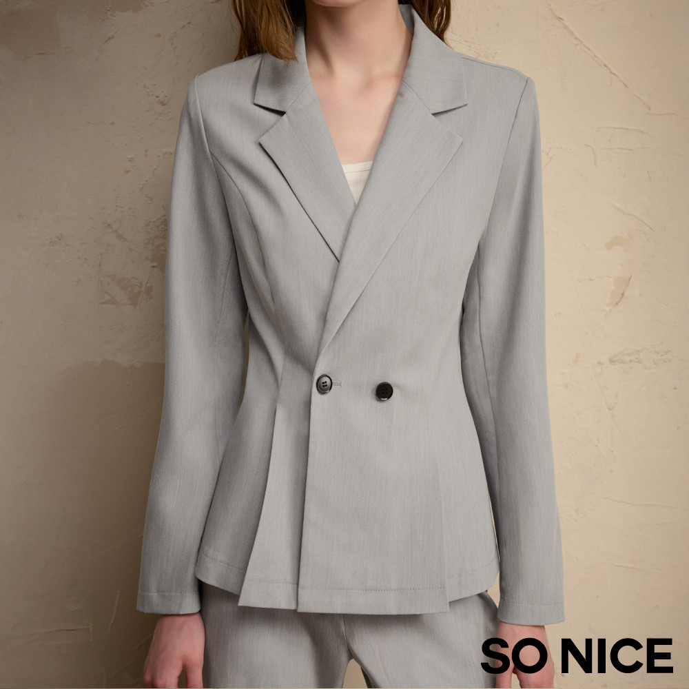 SO NICE【美白冰紗系列】冷靜灰高智感收腰打褶永久防曬涼感不易皺可機洗西裝外套|都會時尚女裝【32545001】淺灰,36(S)|淺灰,38(M)|淺灰,40(L)|淺灰,42(XL)|淺灰,34(XS)BlazersSO NICE 官方旗艦店