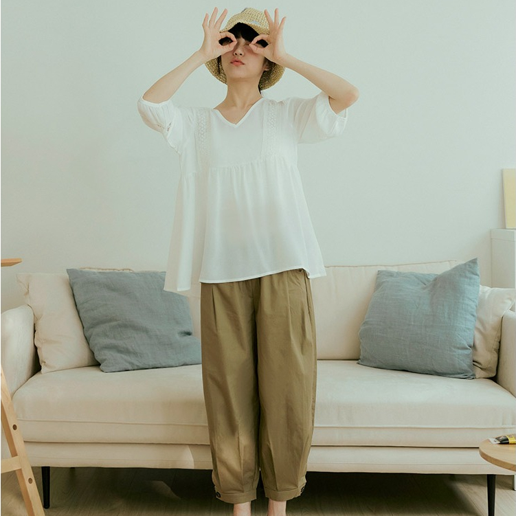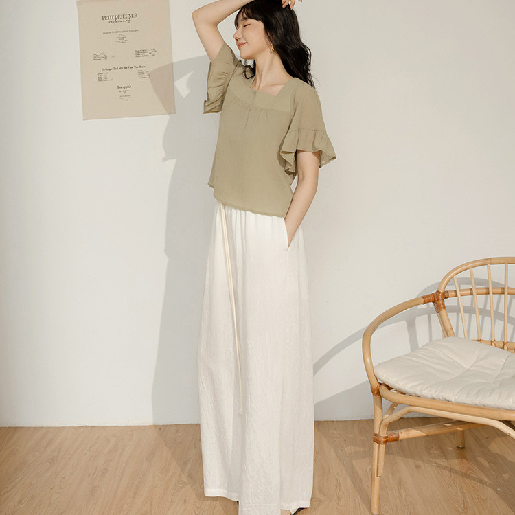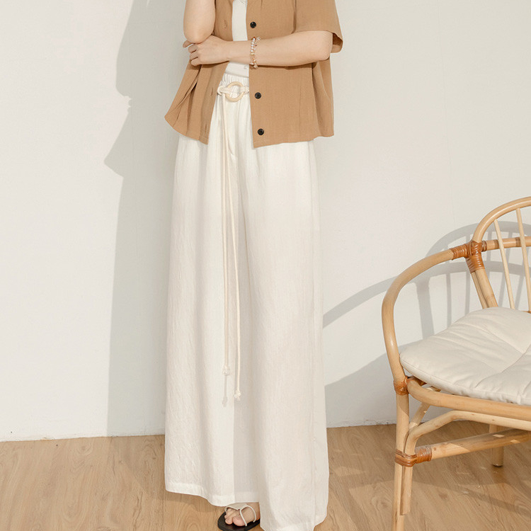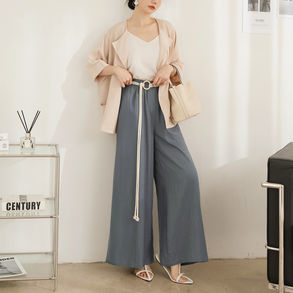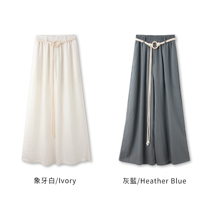 OB嚴選 棉麻感圓環綁帶鬆緊腰寬褲(附綁帶) 《BA7882》灰藍,M|灰藍,L|灰藍,XL|灰藍,2L|灰藍,3L|象牙白,M|象牙白,L|象牙白,XL|象牙白,2L|象牙白,3LPantsOB嚴選官方旗艦店