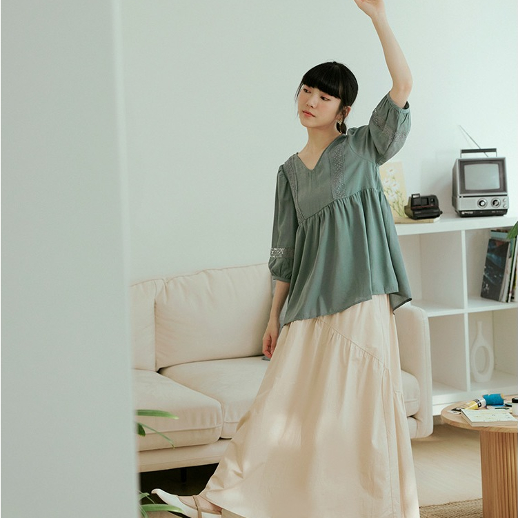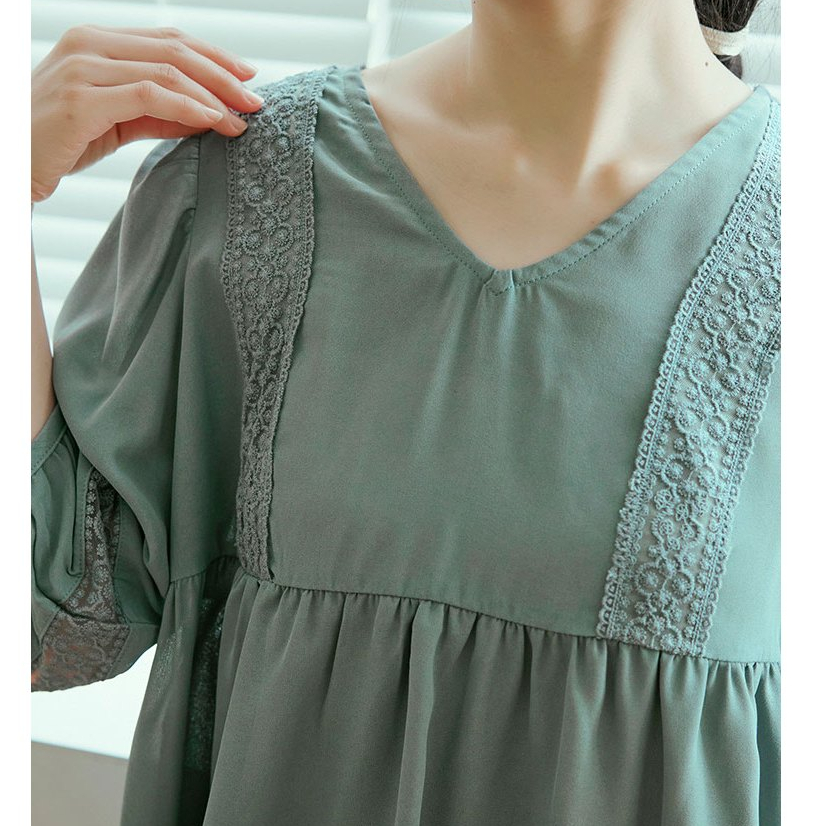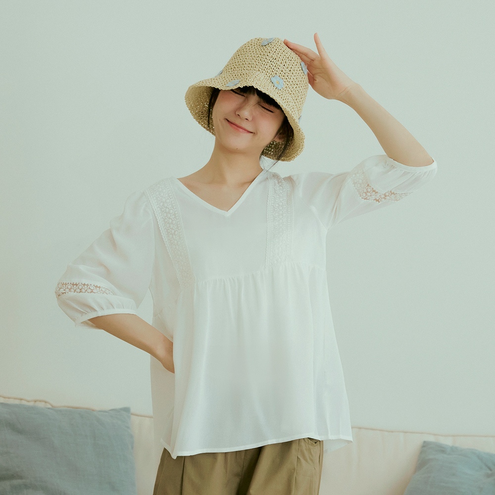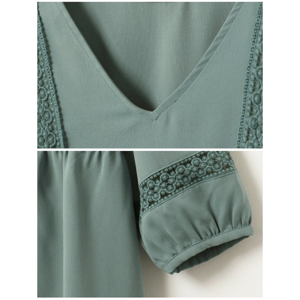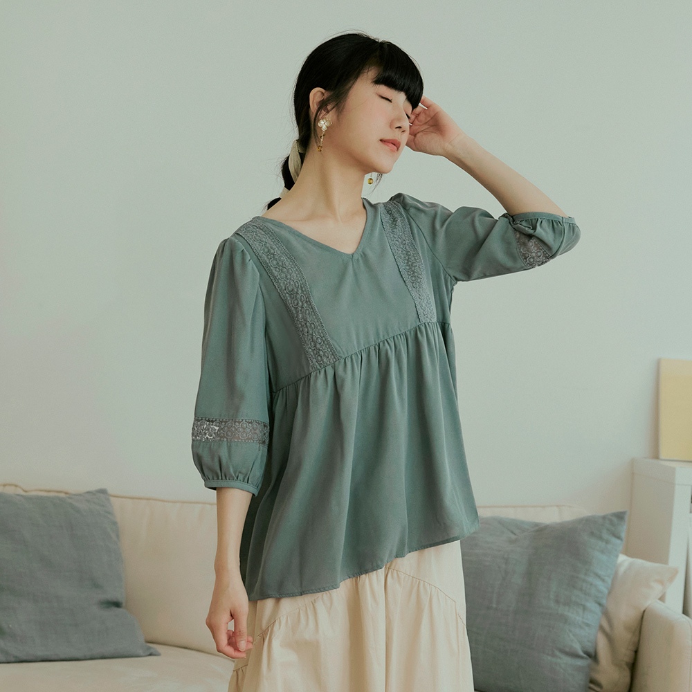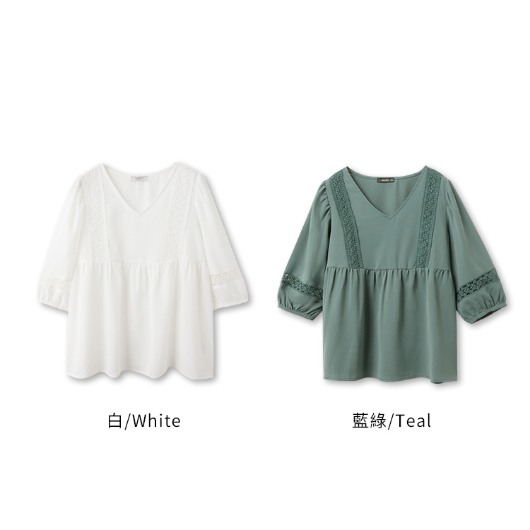 OB嚴選 浪漫質感V領拼接鏤空蕾絲上衣 《AB12015》日系/大尺碼/現貨/女裝藍綠,L|藍綠,XL|藍綠,2L|白,M|白,L|白,3L|藍綠,S|藍綠,M|白,S|白,XL|白,2L|藍綠,3LOthersOB嚴選官方旗艦店